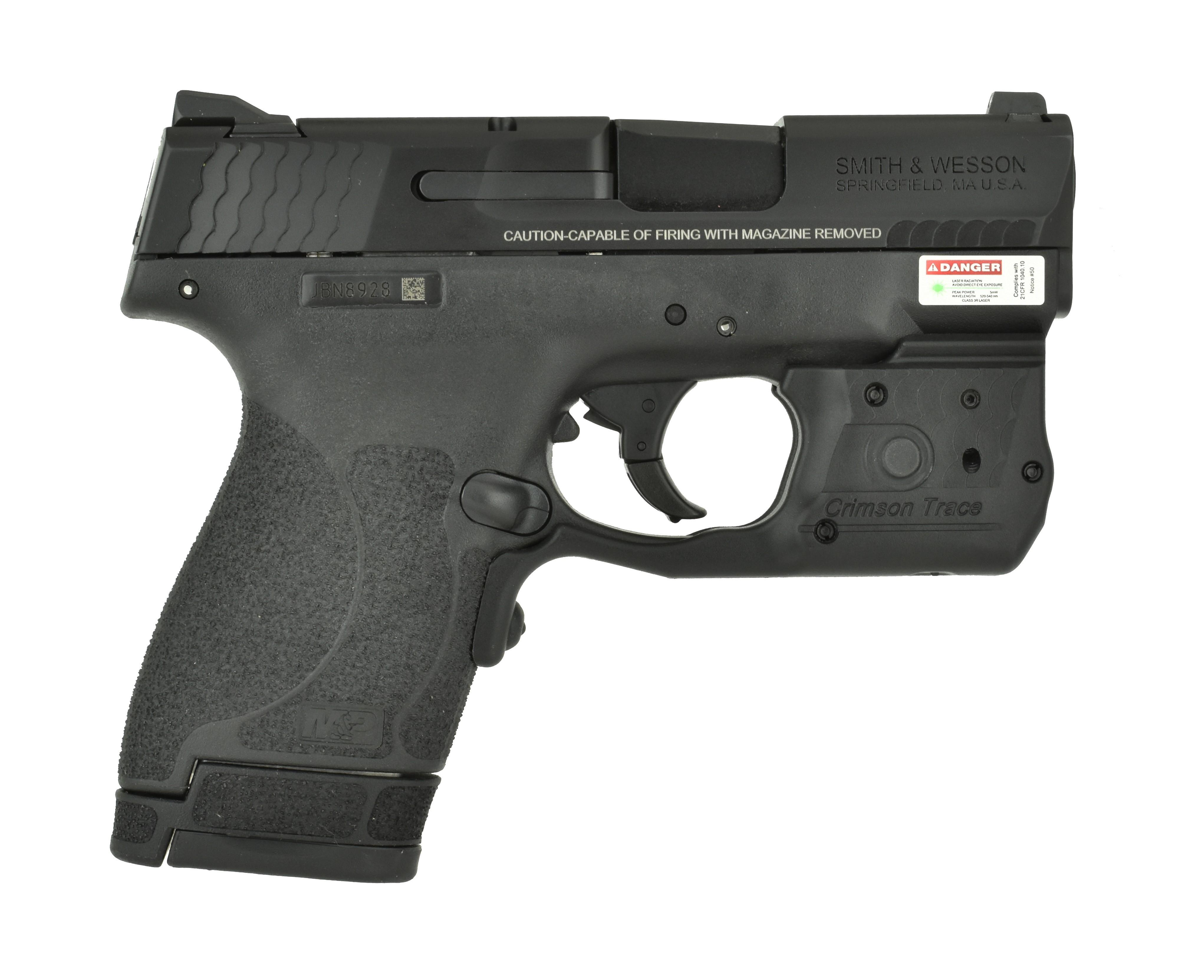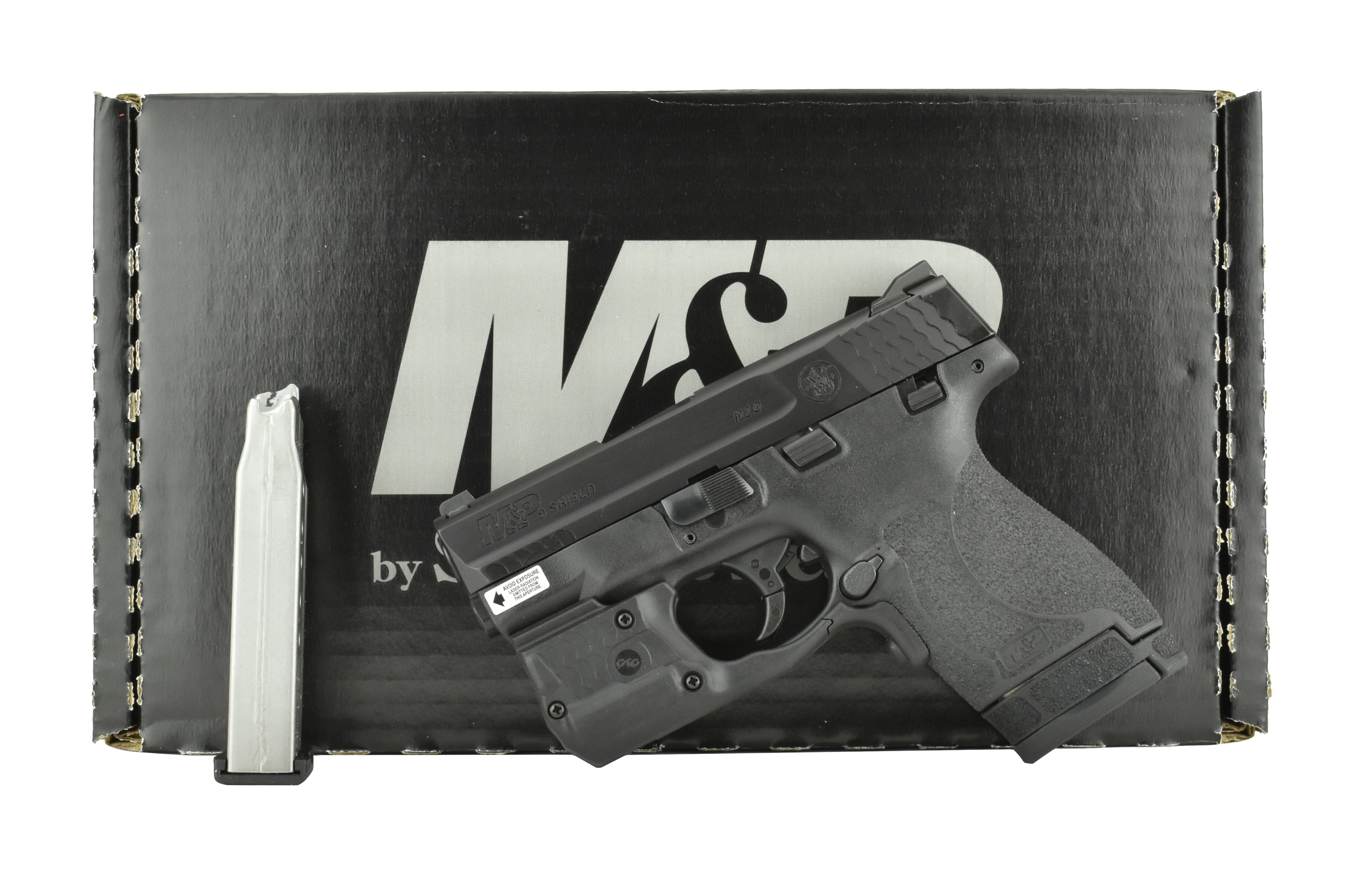 Smith & Wesson M&P9 Shield M2.0 9mm caliber pistol. New Conceal carry model with Crimson Trace green laser and light.