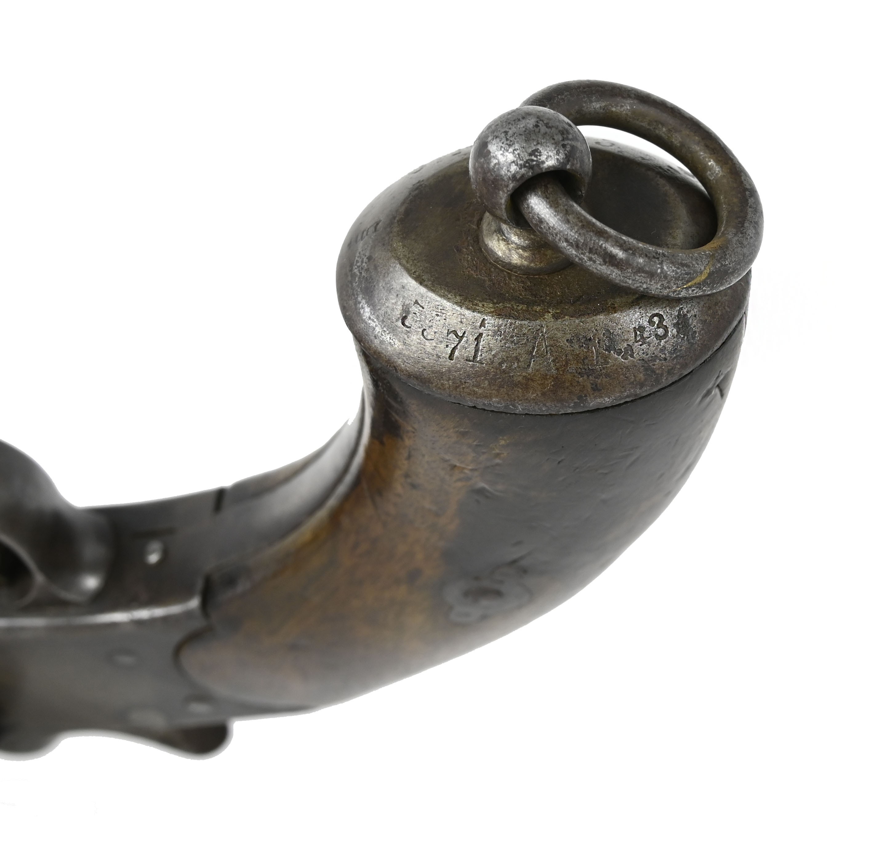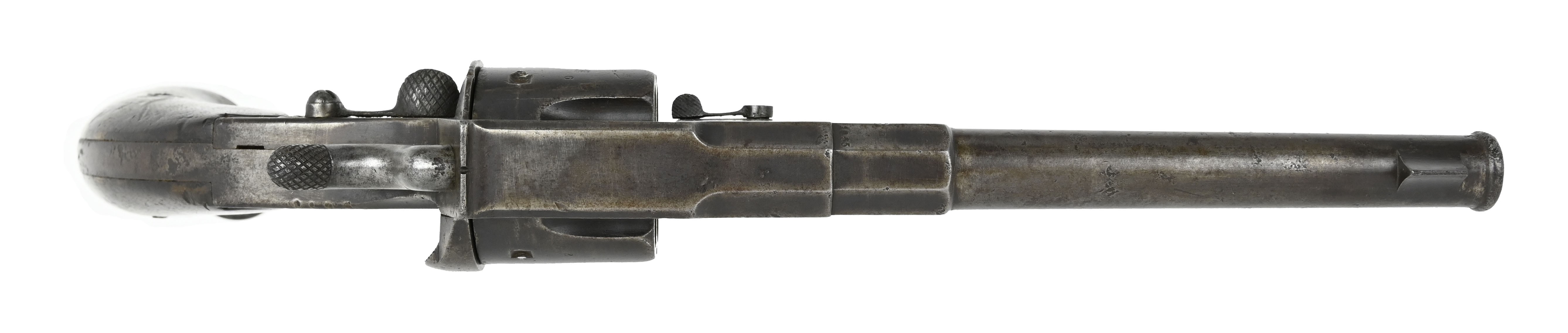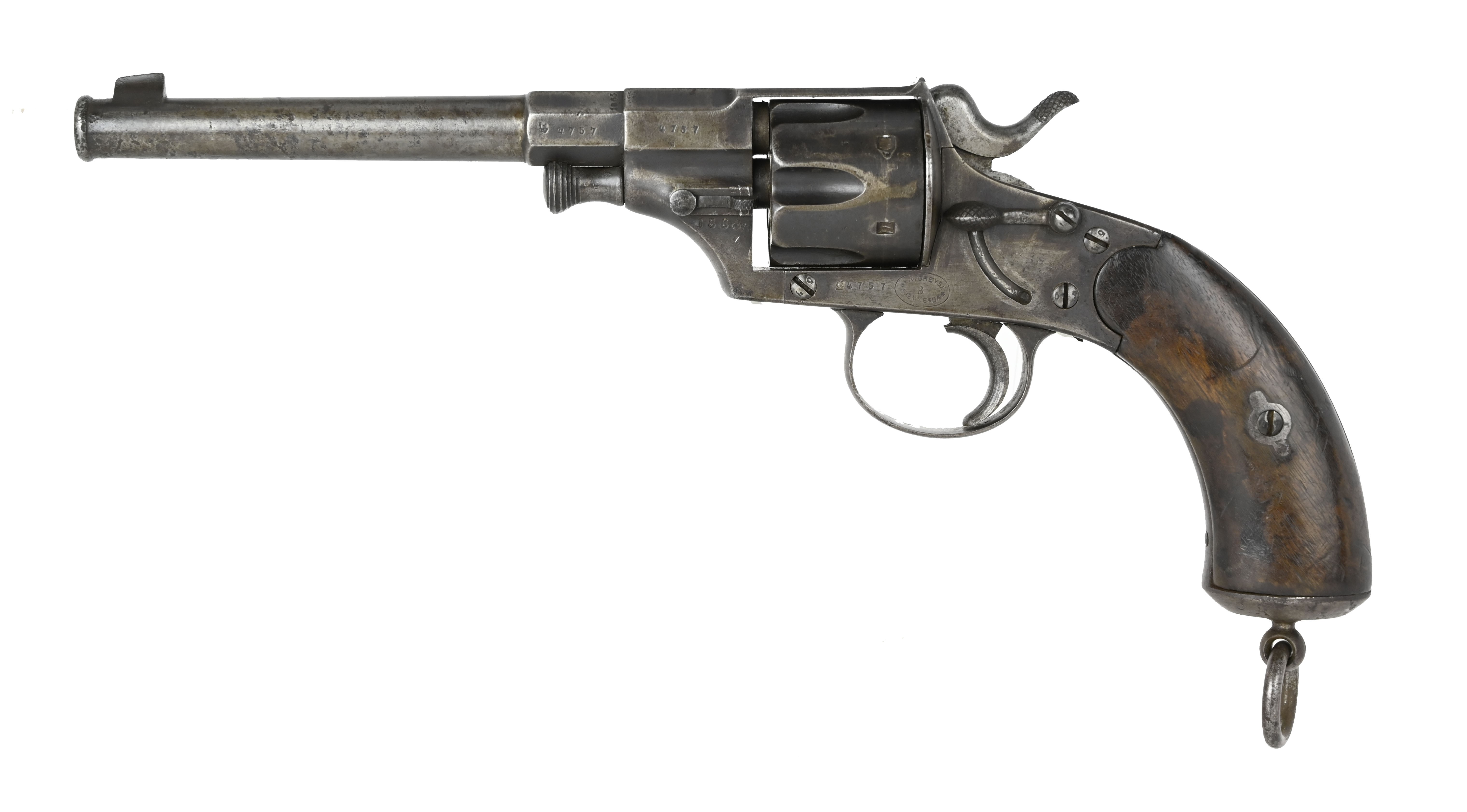 German Model 1879 Reichs Revolver. Made by Dreyse. Butt is unit marked 71.A.1.43. Field artillery regiment 71 Batterie 1. Metal has a gray and brown patina. Bore is very good with strong rifling. Action works perfectly. Very good overall condition.