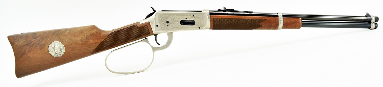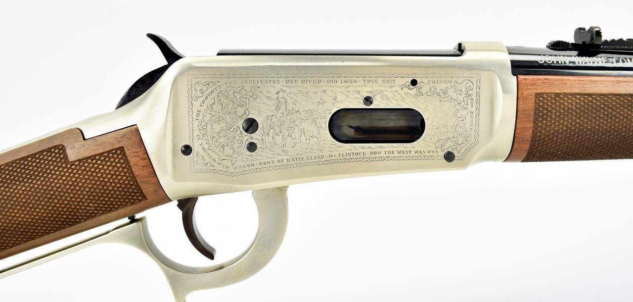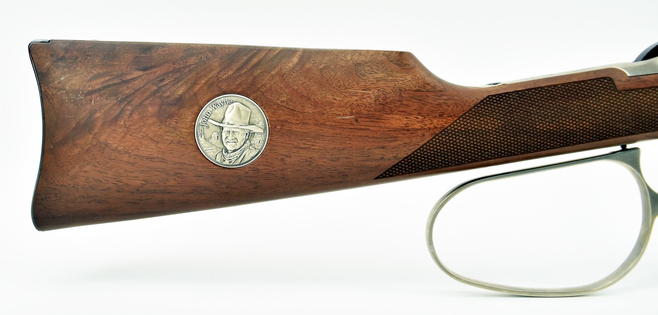 Winchester 94 John Wayne .32-40 caliber rifle. Scarce Canadian issue John Wayne commemorative with “CJW” serial number. Only 1000 of the Canadian editions were made compared to 49,000 of the U.S edition. This is one of the scarcest Winchester Commemoratives. Excellent condition, no box.