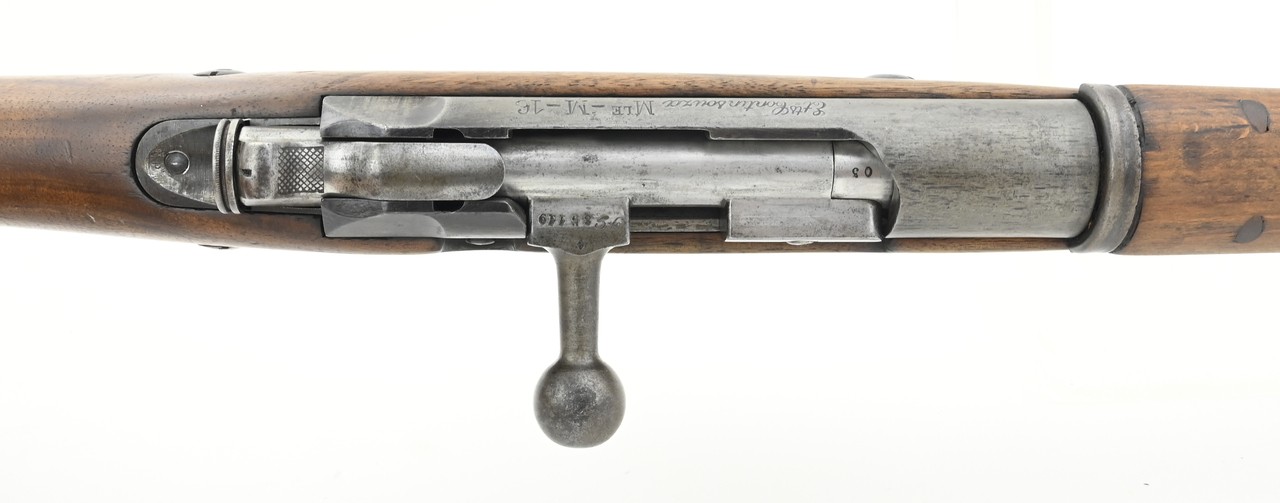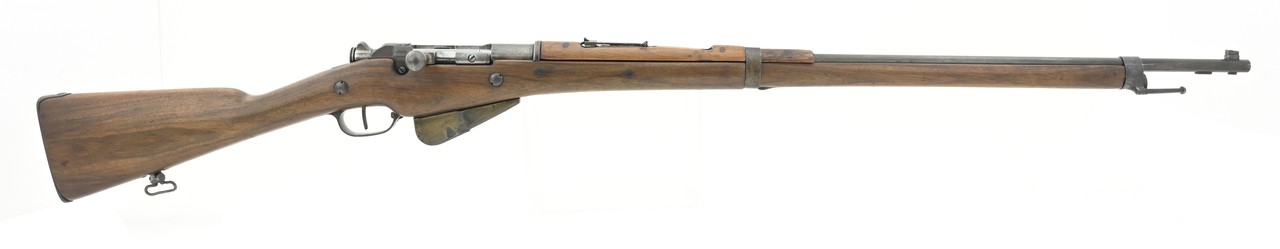 French 1916 8mm Lebel caliber rifle. Berthier rifle made at the Continsouza arsenal. Wood is very good as cleaned. Bore has strong rifling with minor frosting. Metal has turned a gray patina. Good overall condition.