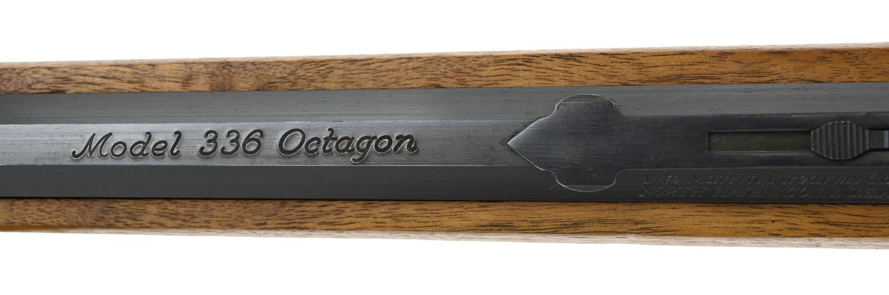 Marlin 336 Octagon .30-30 caliber rifle. Lever action rifle. Rare octagon barrel model made in 1973 only. Does not have safety button. This was the predecessor to the later “cowboy” models. Hard to find. Very good overall condition.