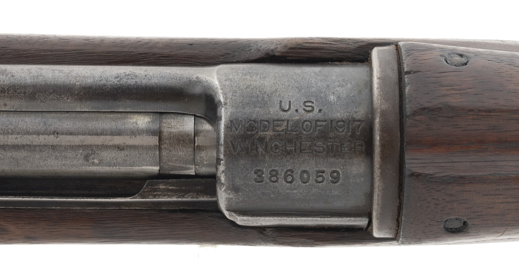 WWI issue US military rifle. Bore is excellent. Barrel is marked "W" and dated 1918. Stock has an "E" marking. Bolt is "W" marked. Good overall condition. A desirable Winchester made 1917 rifle.