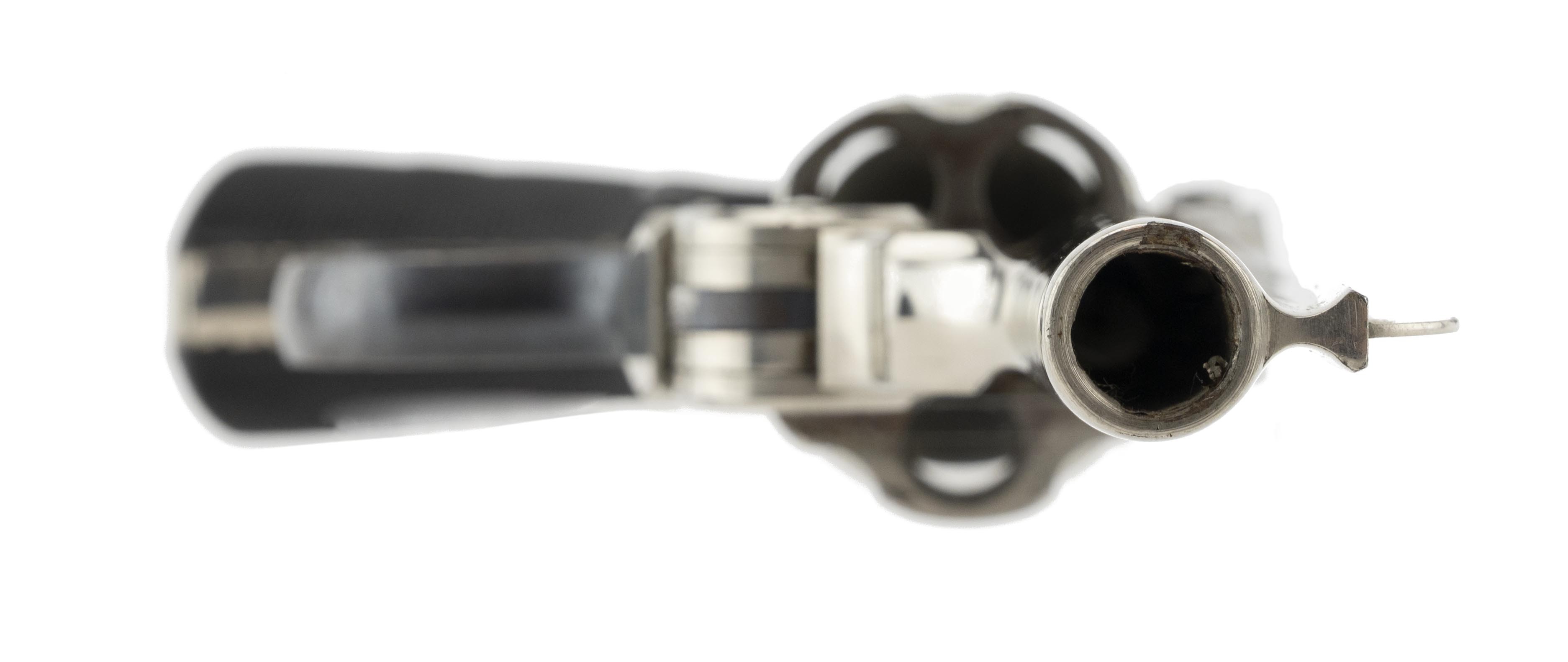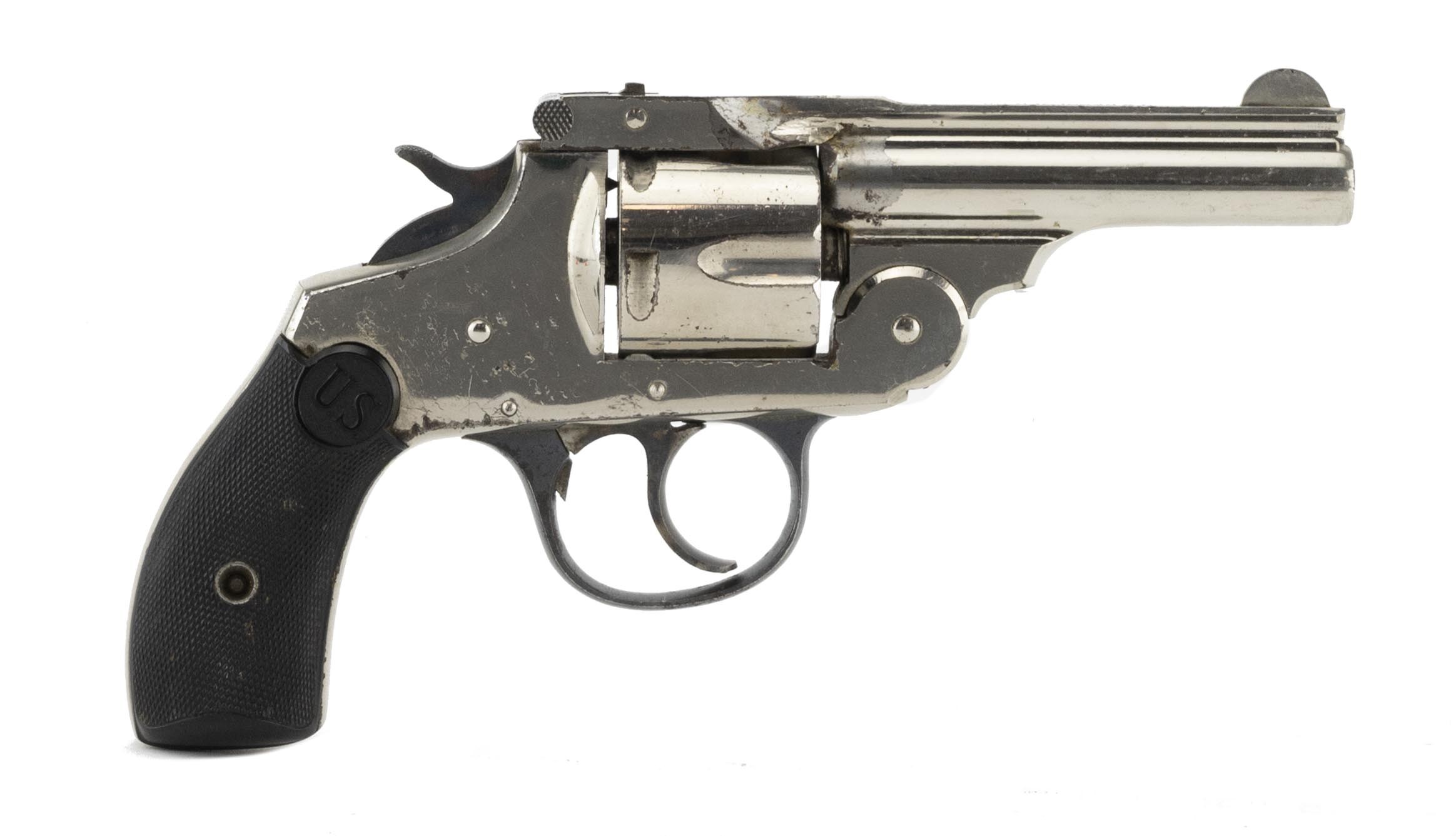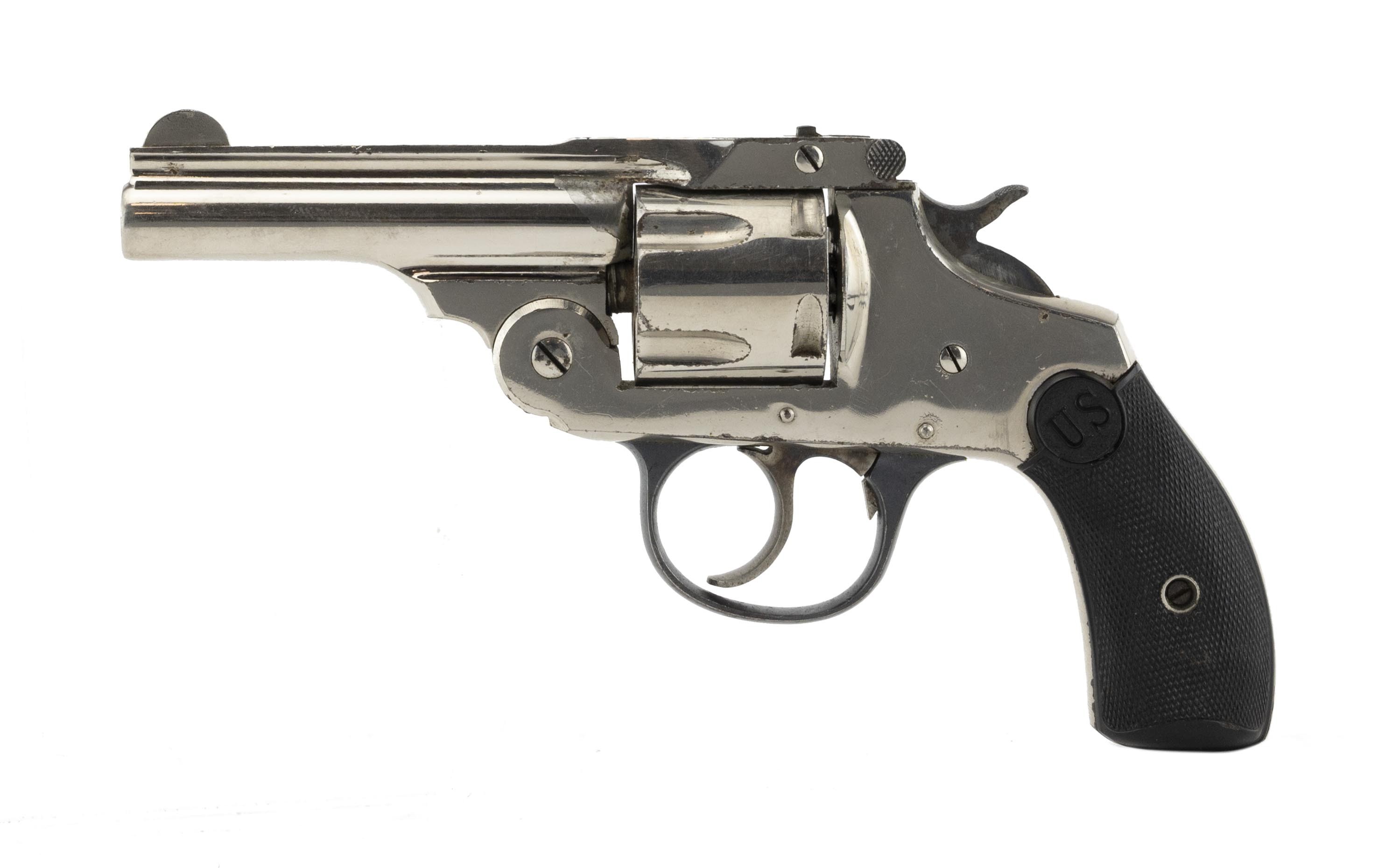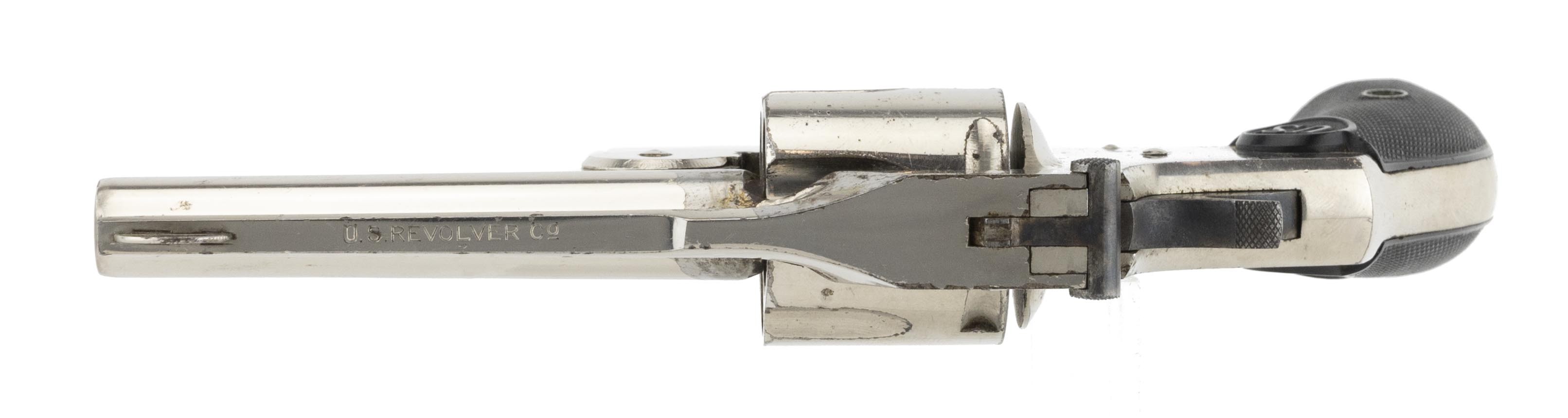 Very nice U.S. Revolver Co. Top Break .38 double action revolver. The top barrel rib is marked "U.S. Revolver Co." The 3 1/4" barrel has a very good bore. Approximately 90% of the nickel finish is remaining. The grips are checkered with "U.S." at the top. They are very fine with no chips or cracks. They cylinder is five shot. The action functions correctly. Case colors are visible on the hammer and trigger. This a nice example.