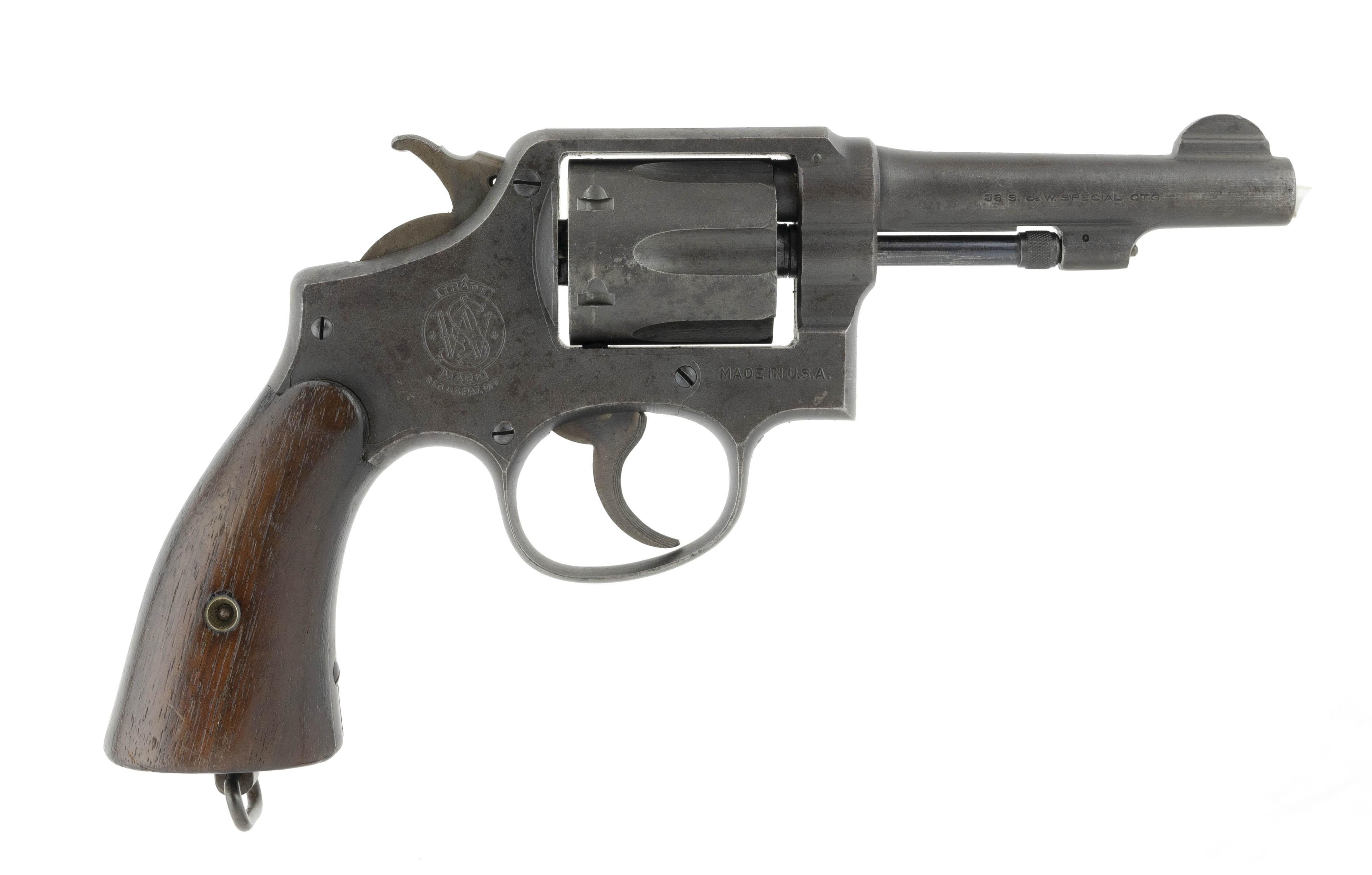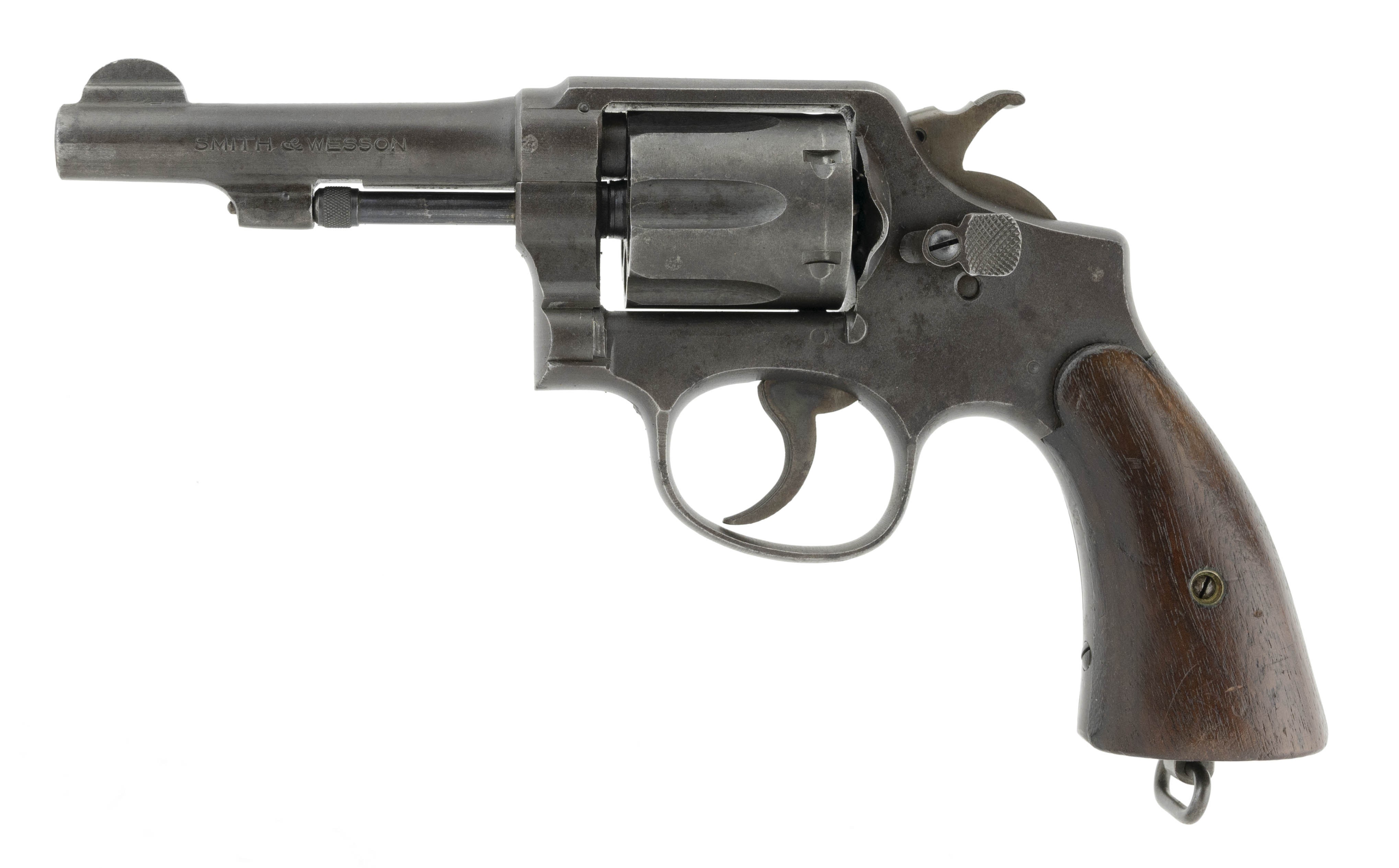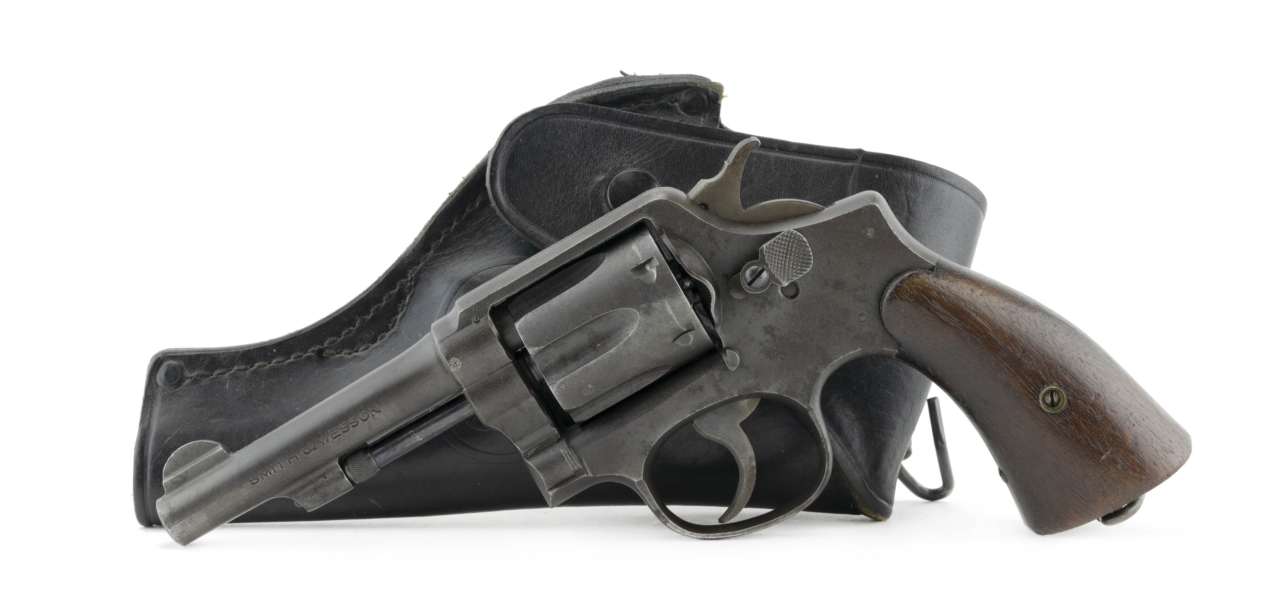 WWII era service revolver. Back strap has had markings removed. Barrel is 4". Bore is excellent. Action indexes properly and locks up tight in battery. Comes with a post war US holster. Good overall condition.