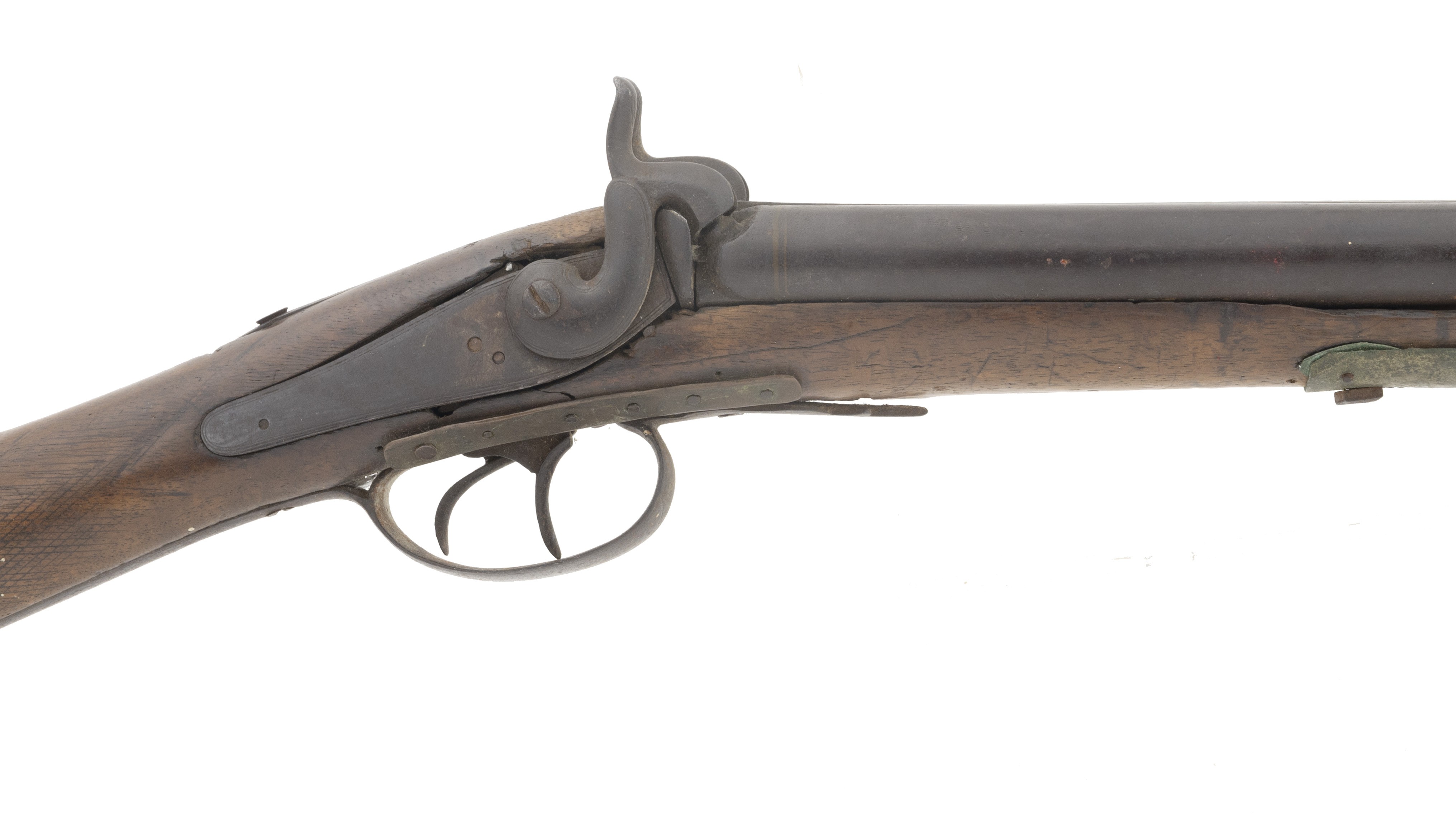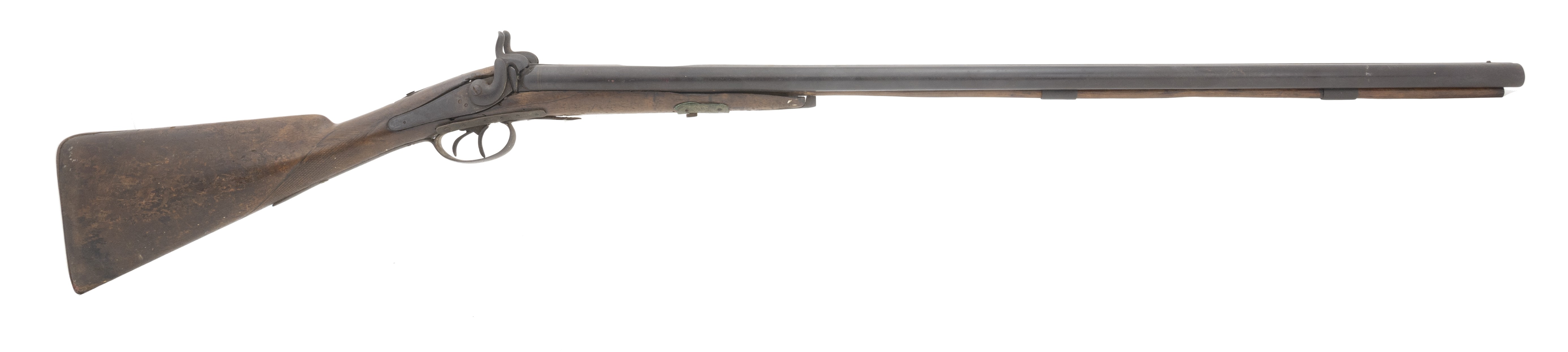 Made in 1850s. Double Barrel 12 Gauge with 32” barrels. This is a hard used civil war era double barrel shotgun. This gun has a very neat repairs. Near the action on both sides. The action functions well. The stock has a weathered appearance. Metal has an even brown patina.
