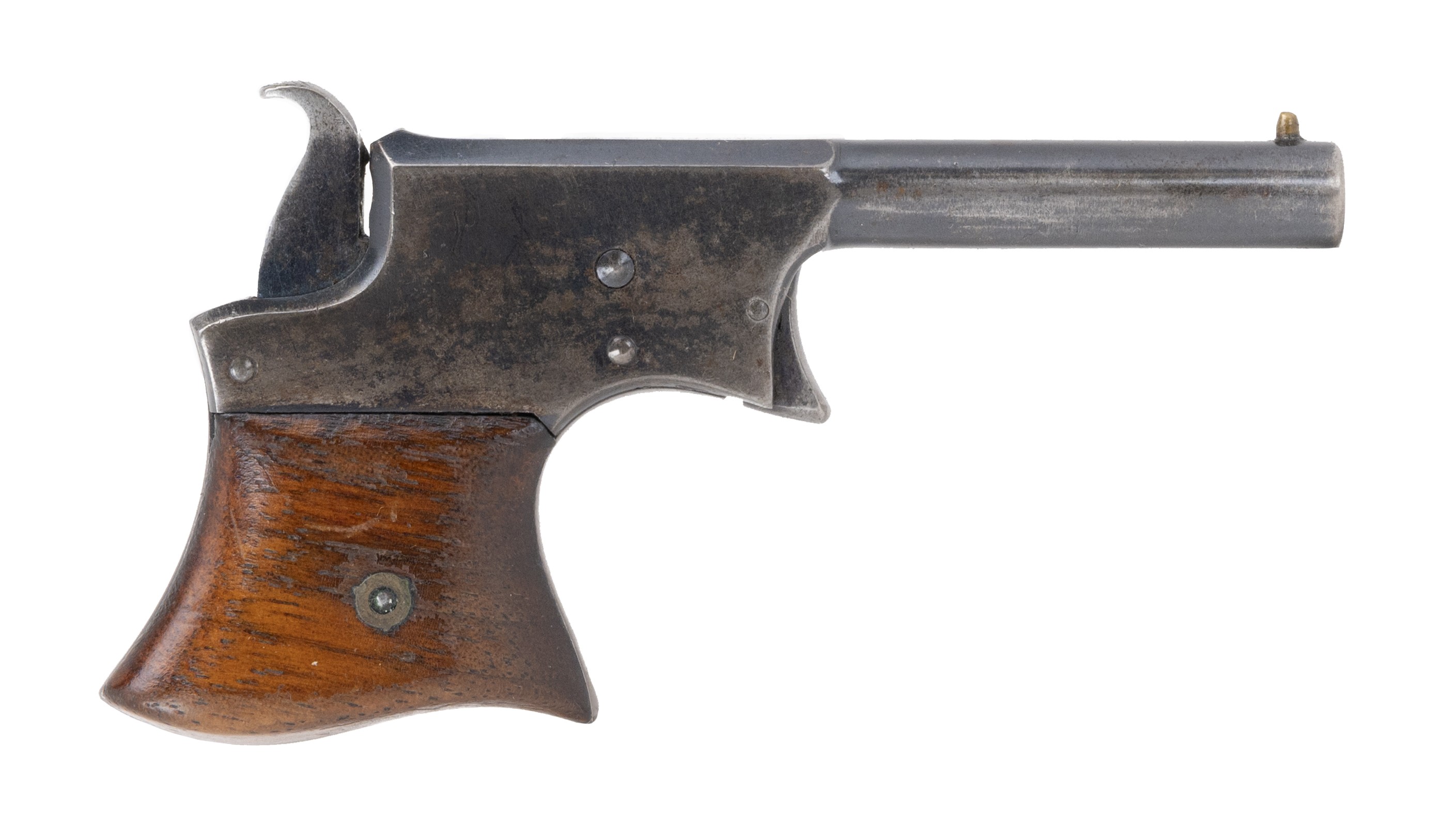 Made in the 1870s. 22 RF with a 3 ¼” barrel. This gun is in Very fine condition with 70% of the original blue finish. Grips are very good. Action works well and bore has good visible rifling.
