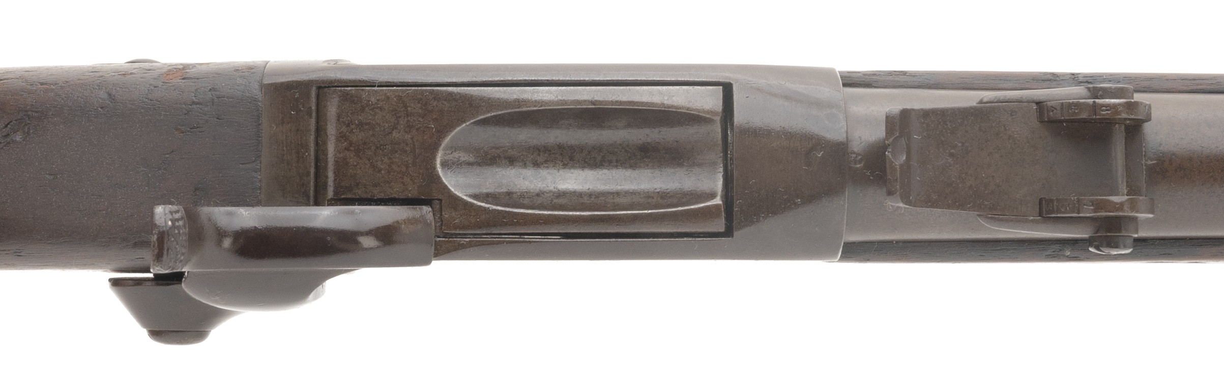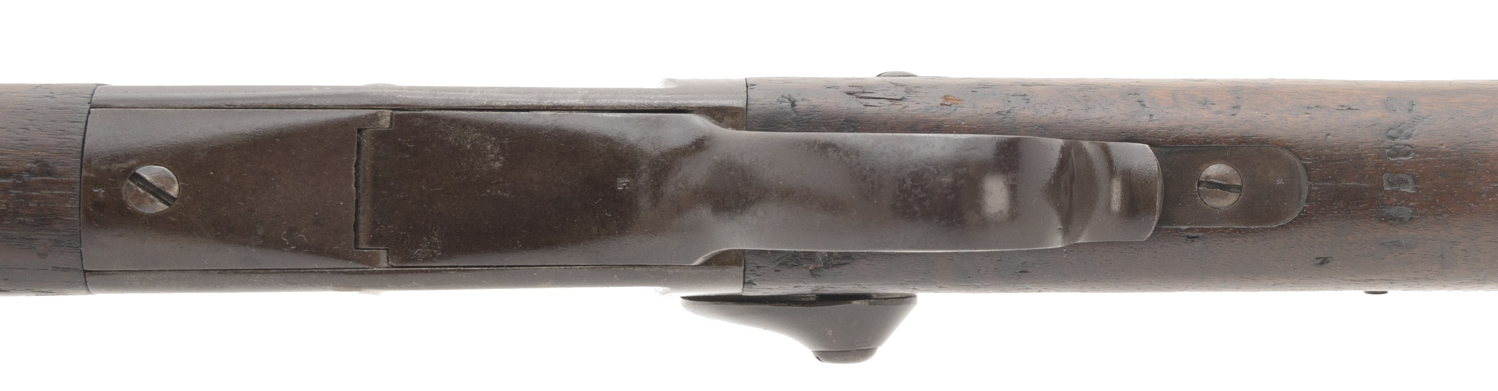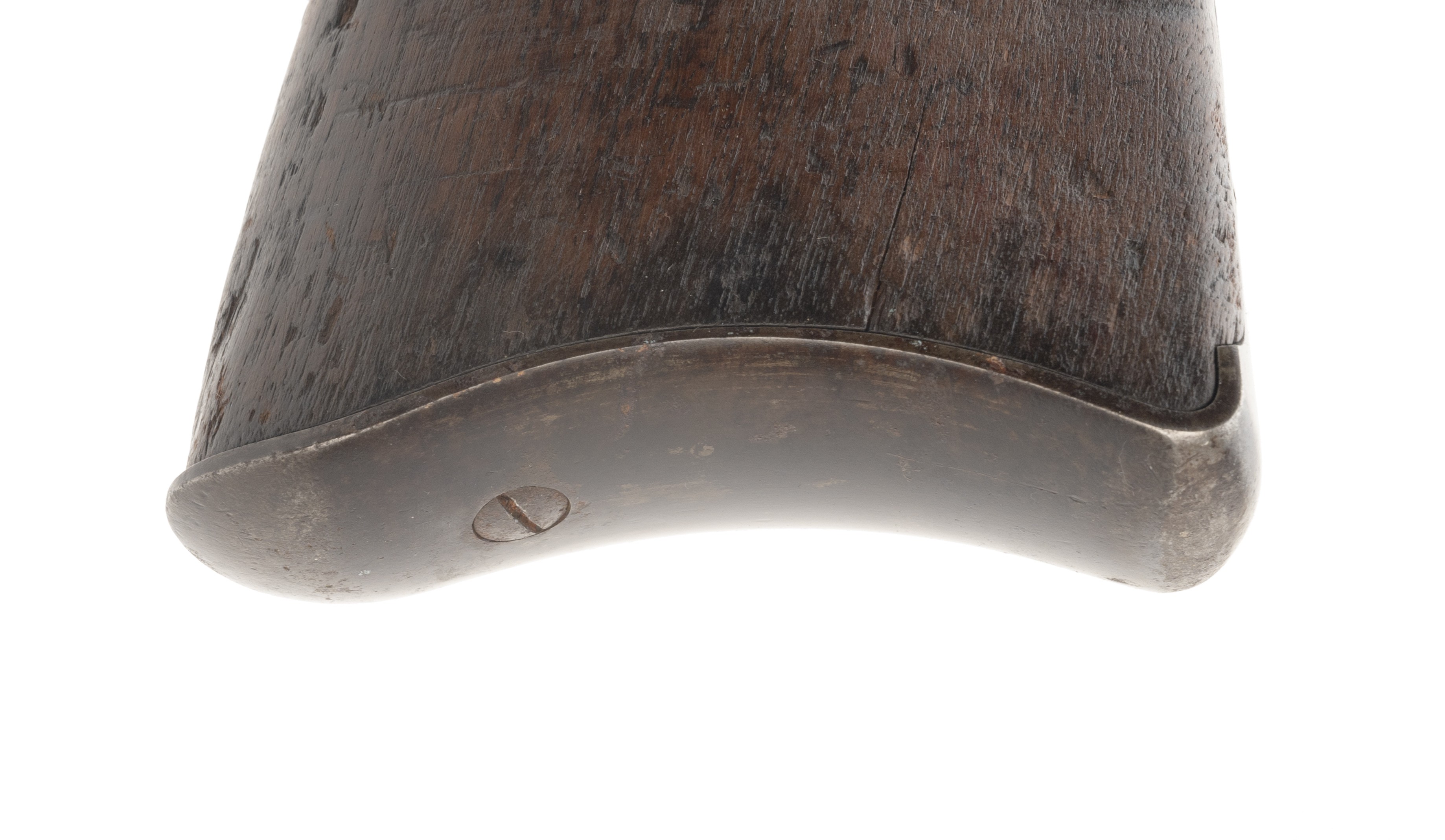 This Swiss 1867 military Peabody rifle was made by the Providence Tool Company, Providence, RI. The round approx. 32.75" round 41 Swiss rimfire caliber barrel has a fine bore with bright, strong rifling with just al little frosting in the grooves near the muzzle. The gun has an overall smooth brown patina. The barrel, forearm, and buttstock are numbered 13882. The action has the standard Peabody markings. The stocks are good with multiple issue dents and dings and some wood loss along the ramrod channel. The front swivel and the rear swivel fitting without the swivel are present. The correct cleaning rod is present. The action functions correctly. The Providence Tool Company sold about 15,000 to the Swiss in serial number range 5500 to 21000. The majority have remained in Europe. If you collect Swiss or European military rifles, this would be a good addition to your collection.