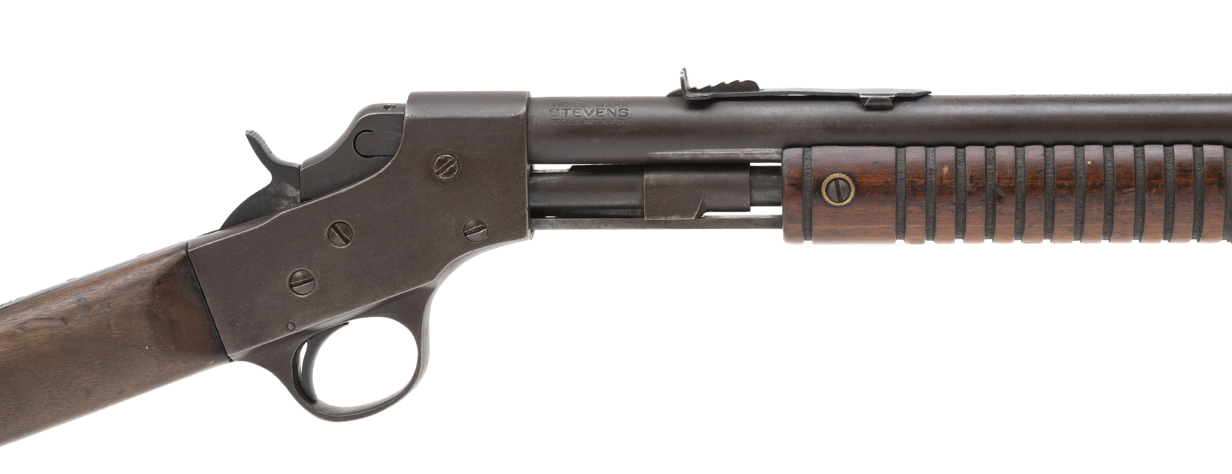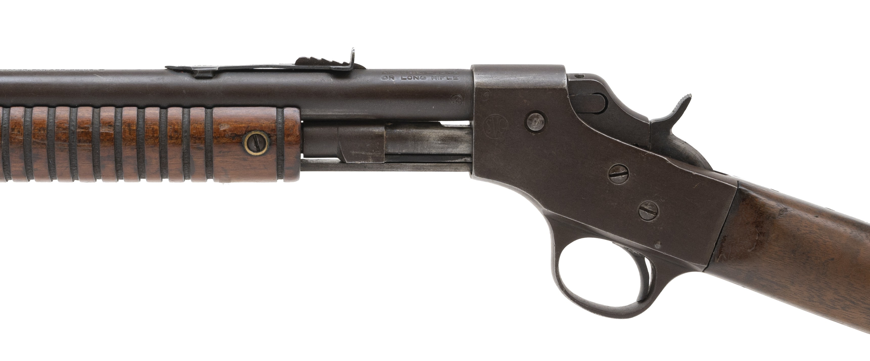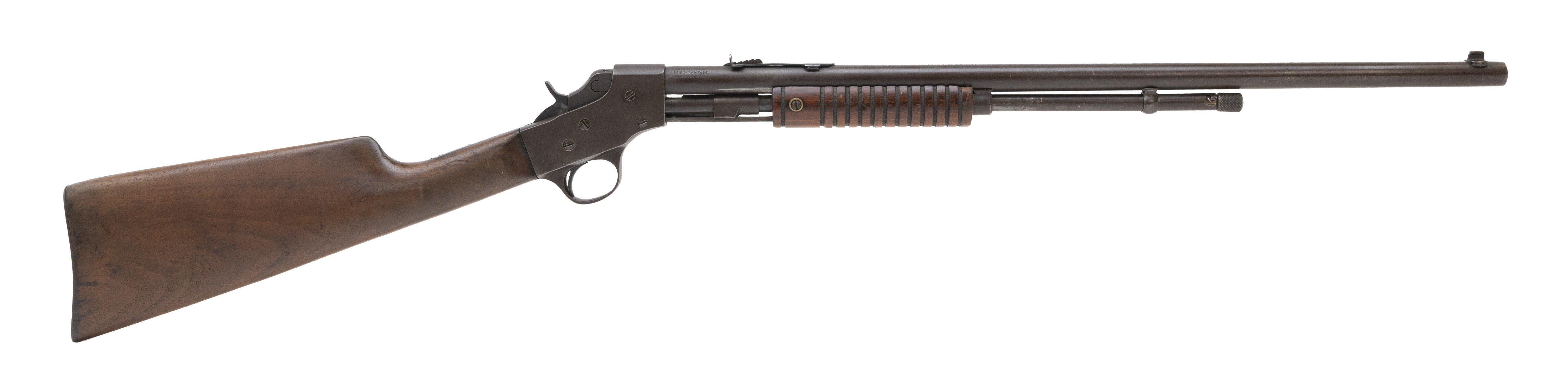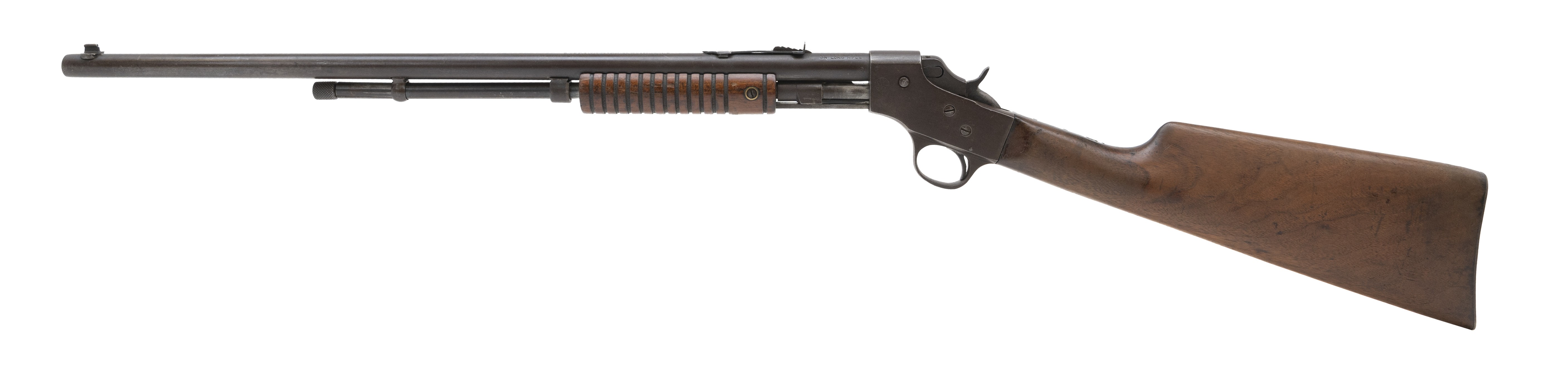 Pre-war pump action youth rifle. Bore is excellent. Metal has turned a brown patina. Good overall condition.