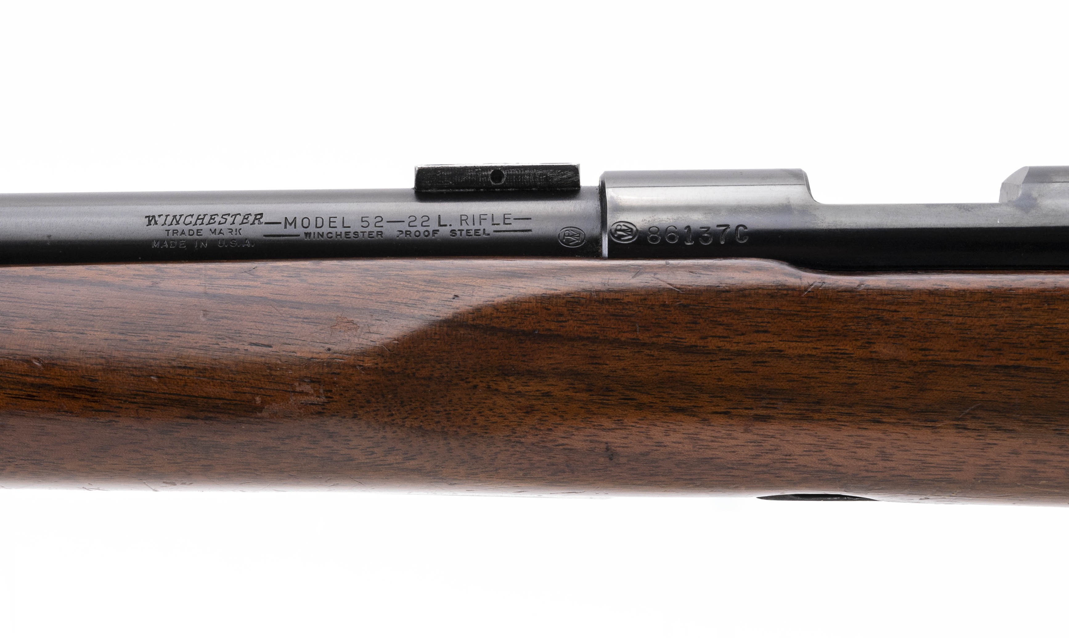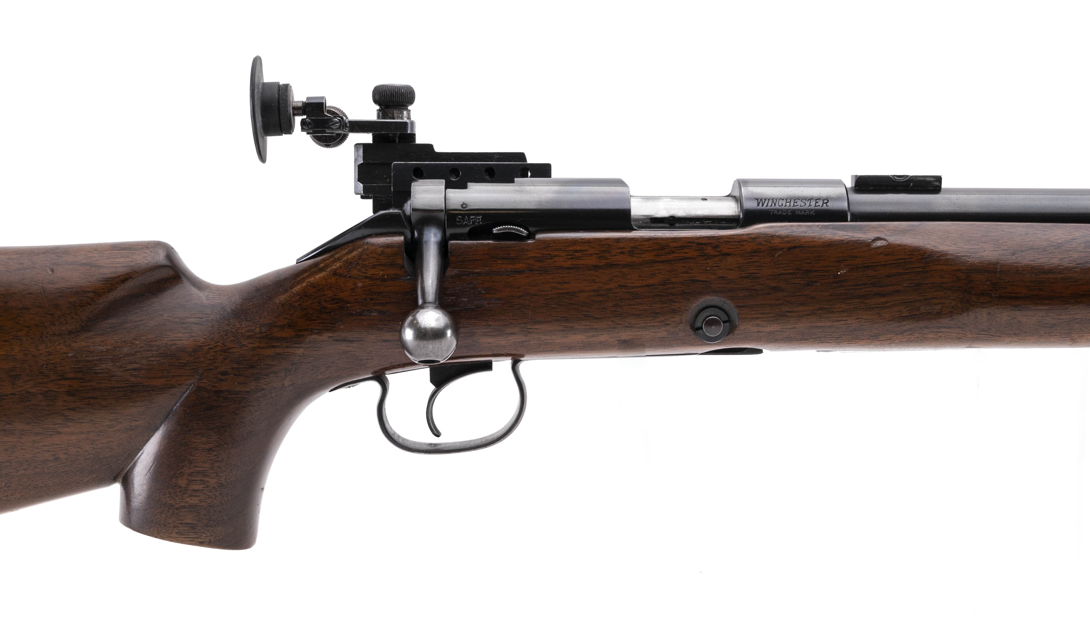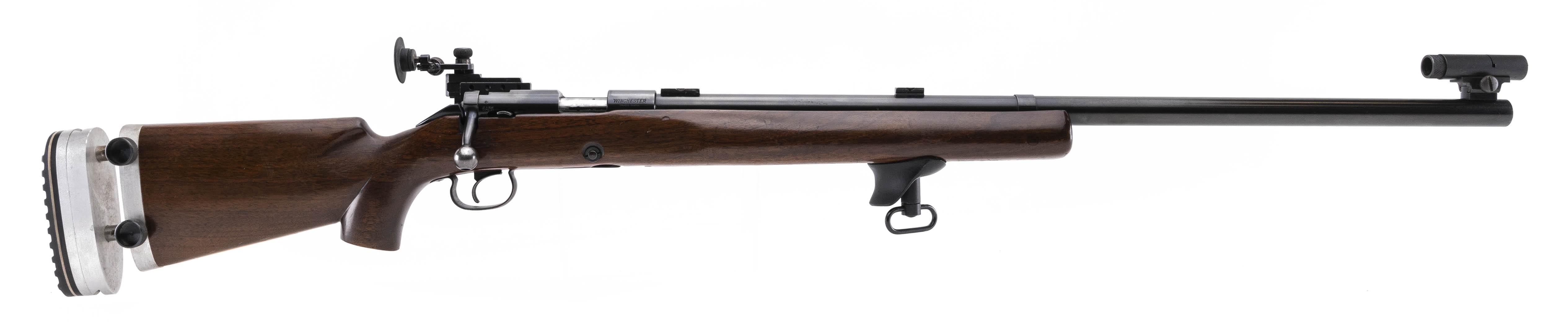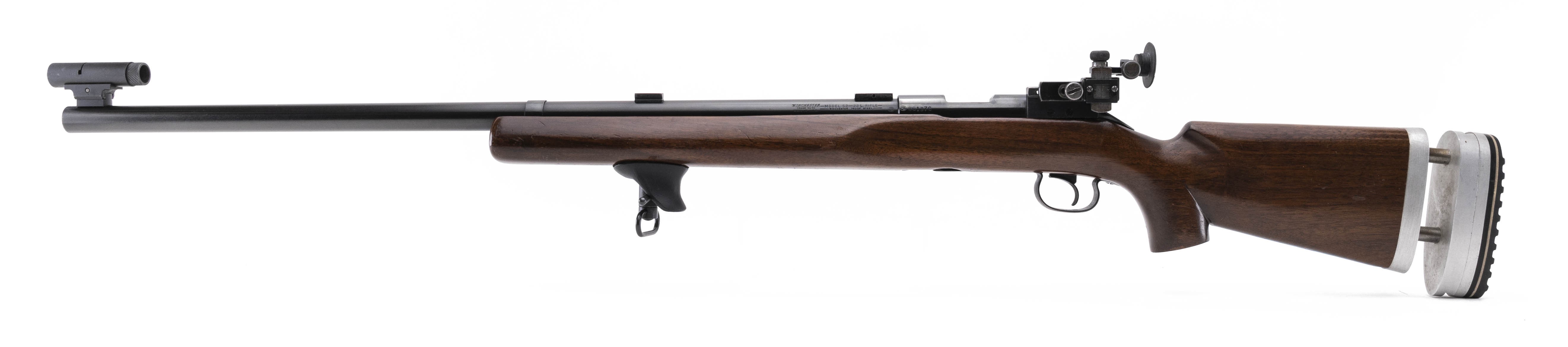 Manufactured in 1955. Barrel is 28" and has scope mount blocks. Fine tune rear sight is made by Redfield. Stock has adjustable butt plate. Bore is excellent. Magazine is single shot. Very good overall condition.