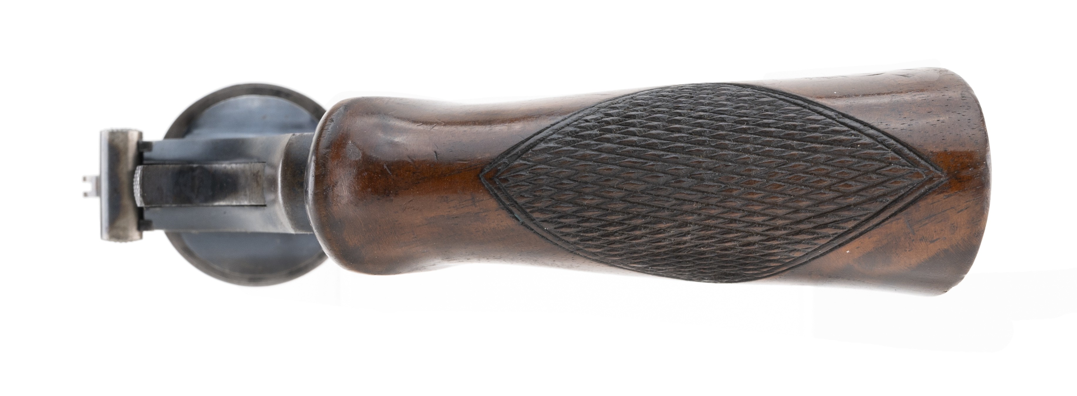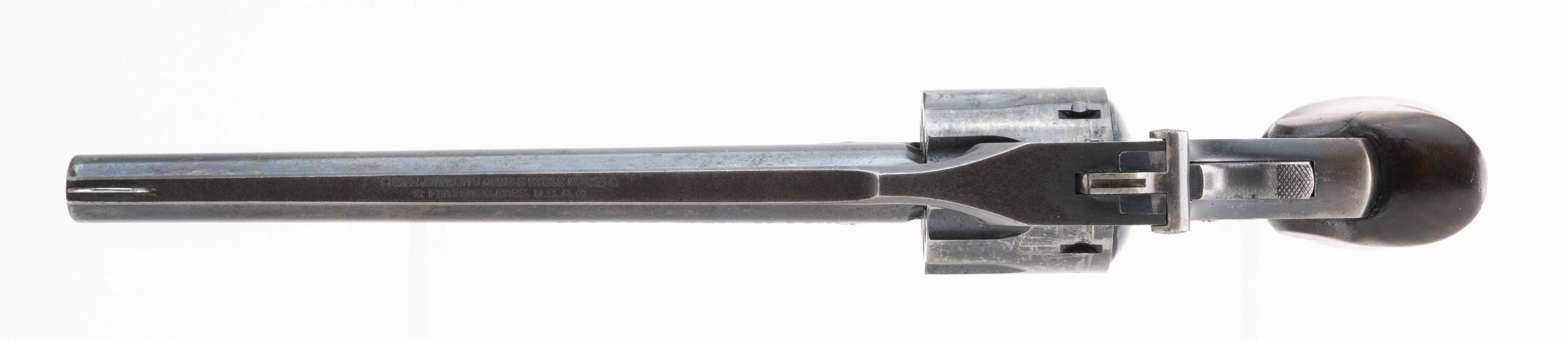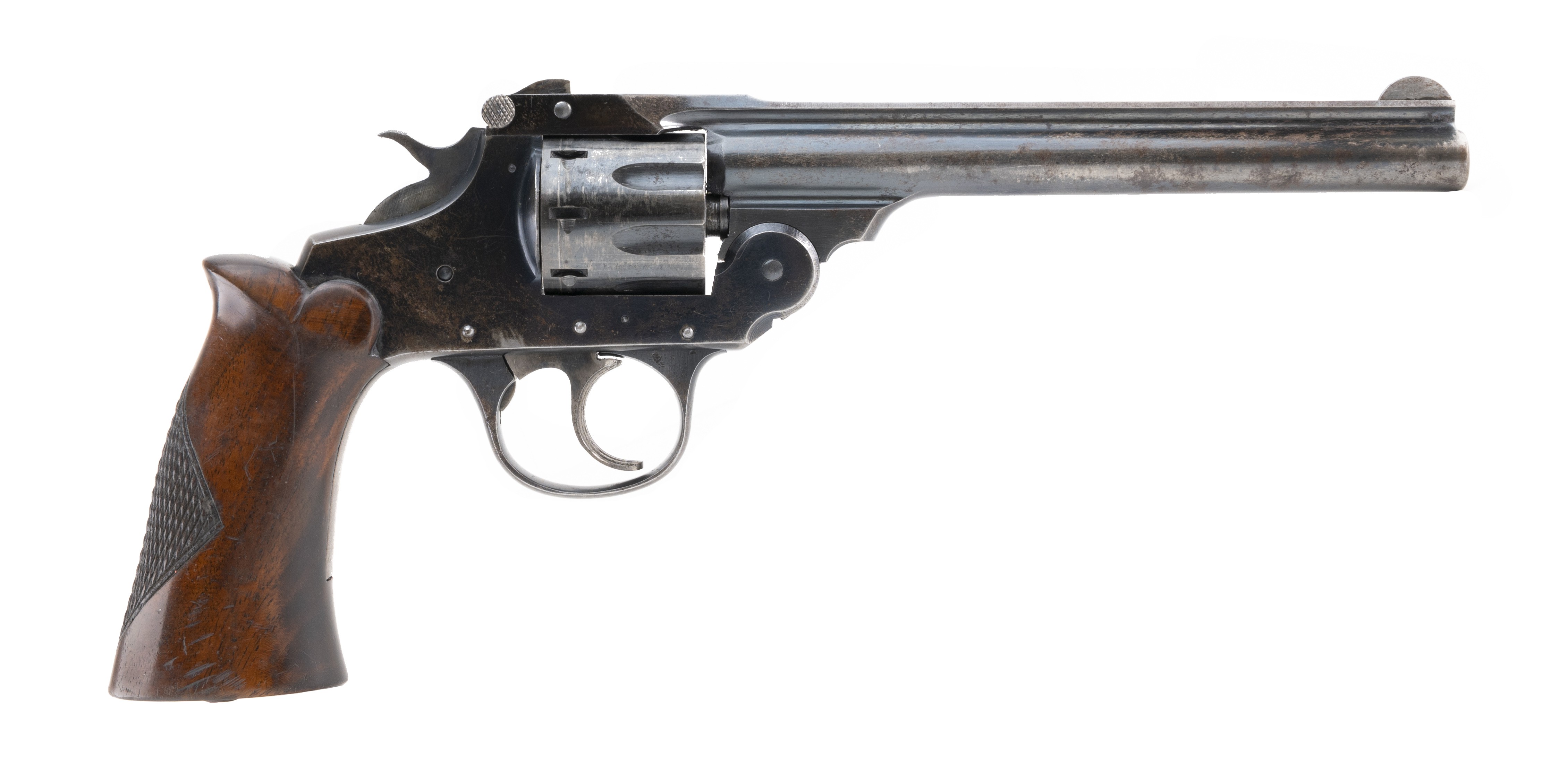 Eight shot revolver with 6" barrel. Metal has holster wear. Bore is excellent. Grips are very good; checkering on rear is still sharp. Good to very good overall condition.