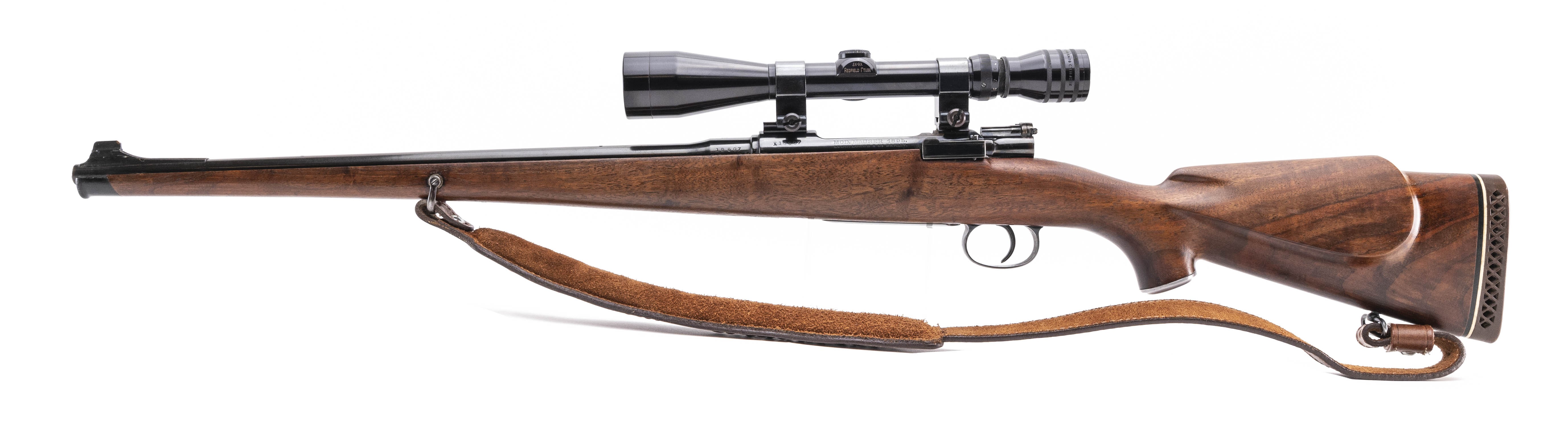 Custom sporting rifle made on a Argentine Mauser action. Rifle has been test fired and head spaced. Stock has a full length Mannlicher style stock with ebony nose cap. The bore is excellent. Barrel is 19 1/2" and overall length is 39 1/2". Comes with a 3X9 Redfield scope. Optics are clear and sharp. A well done conversion.