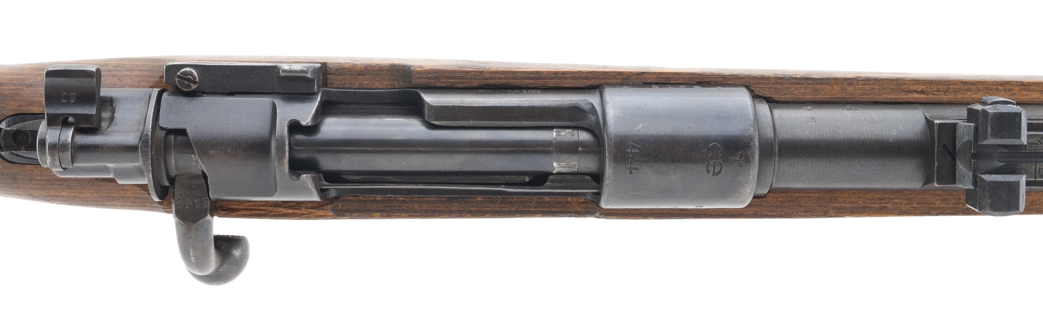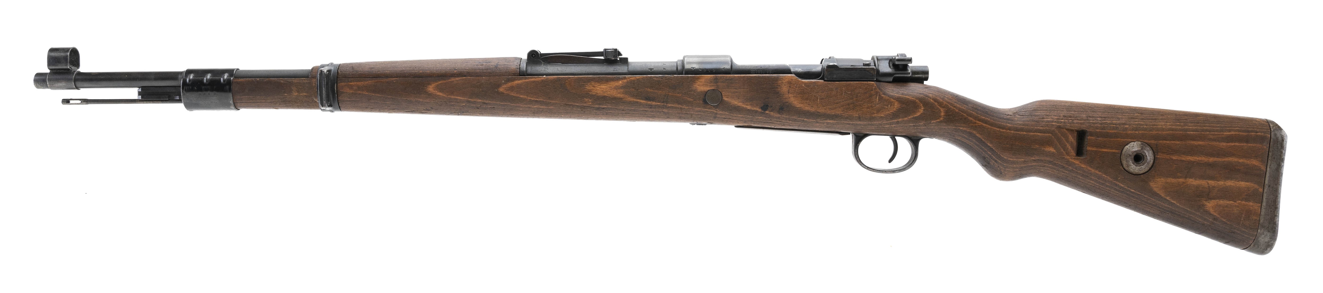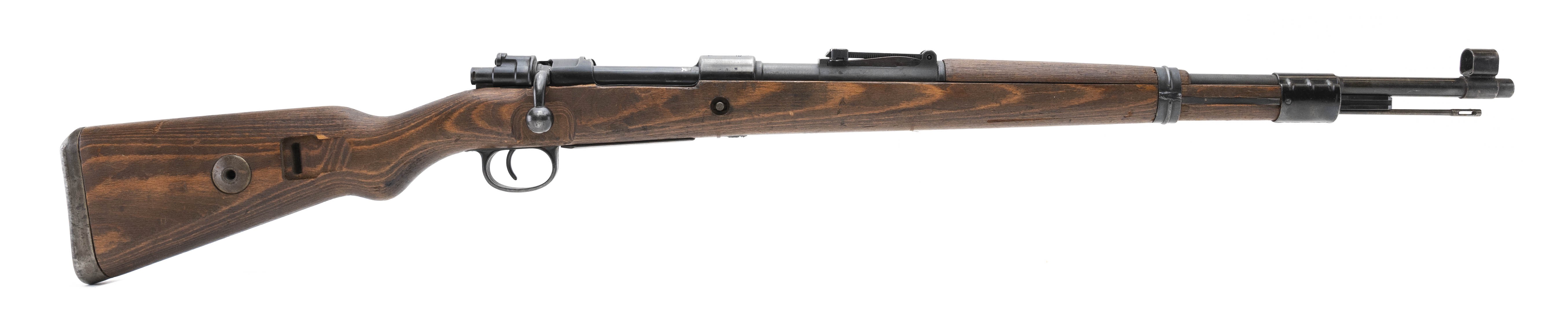 German WWII military rifle manufactured by J.P. Sauer. Receiver is marked CE and dated 1944. Bolt is non-matching. Bore is excellent. Stock has a visible eagle over H cartouche. Very good overall condition.
