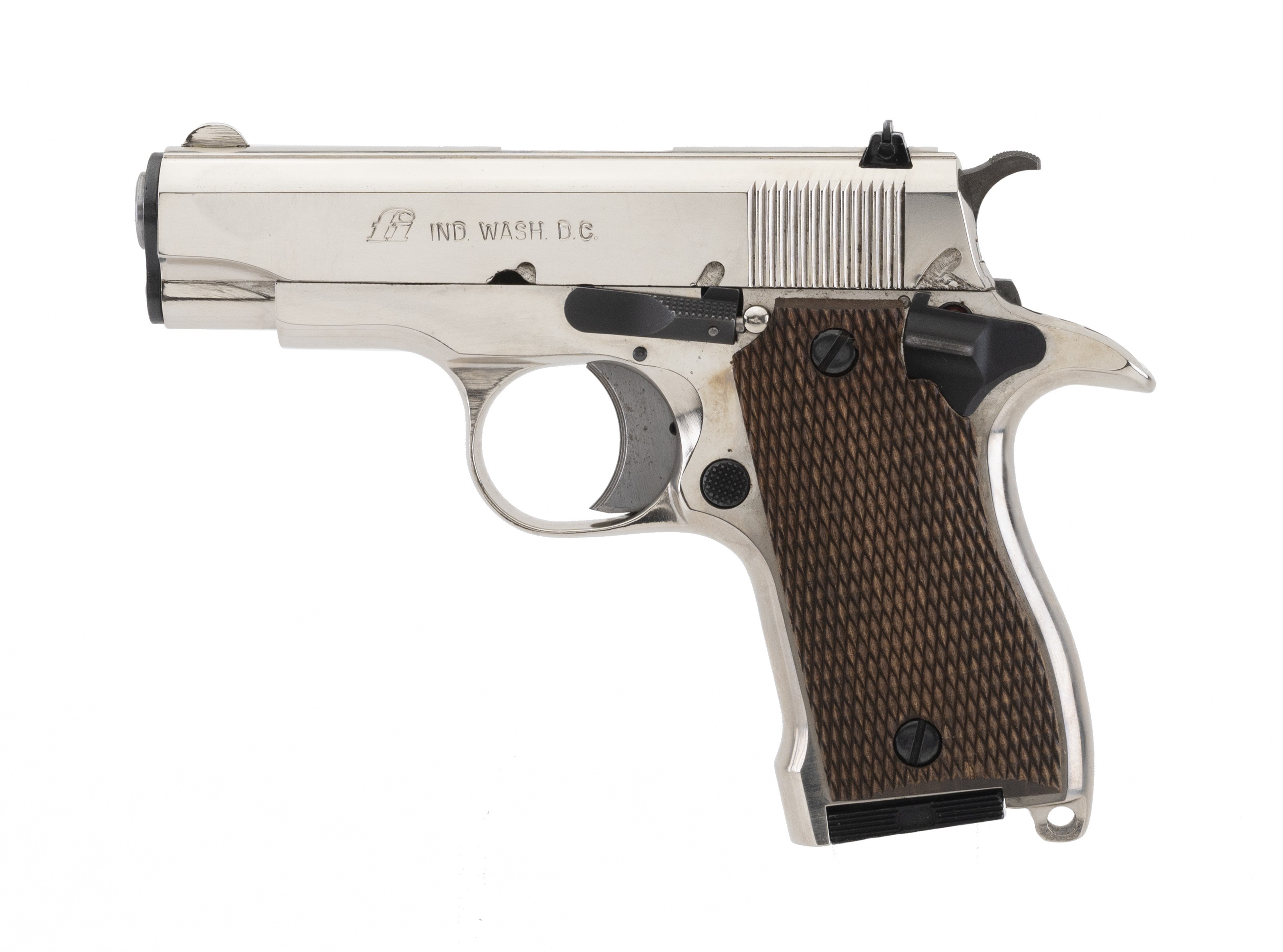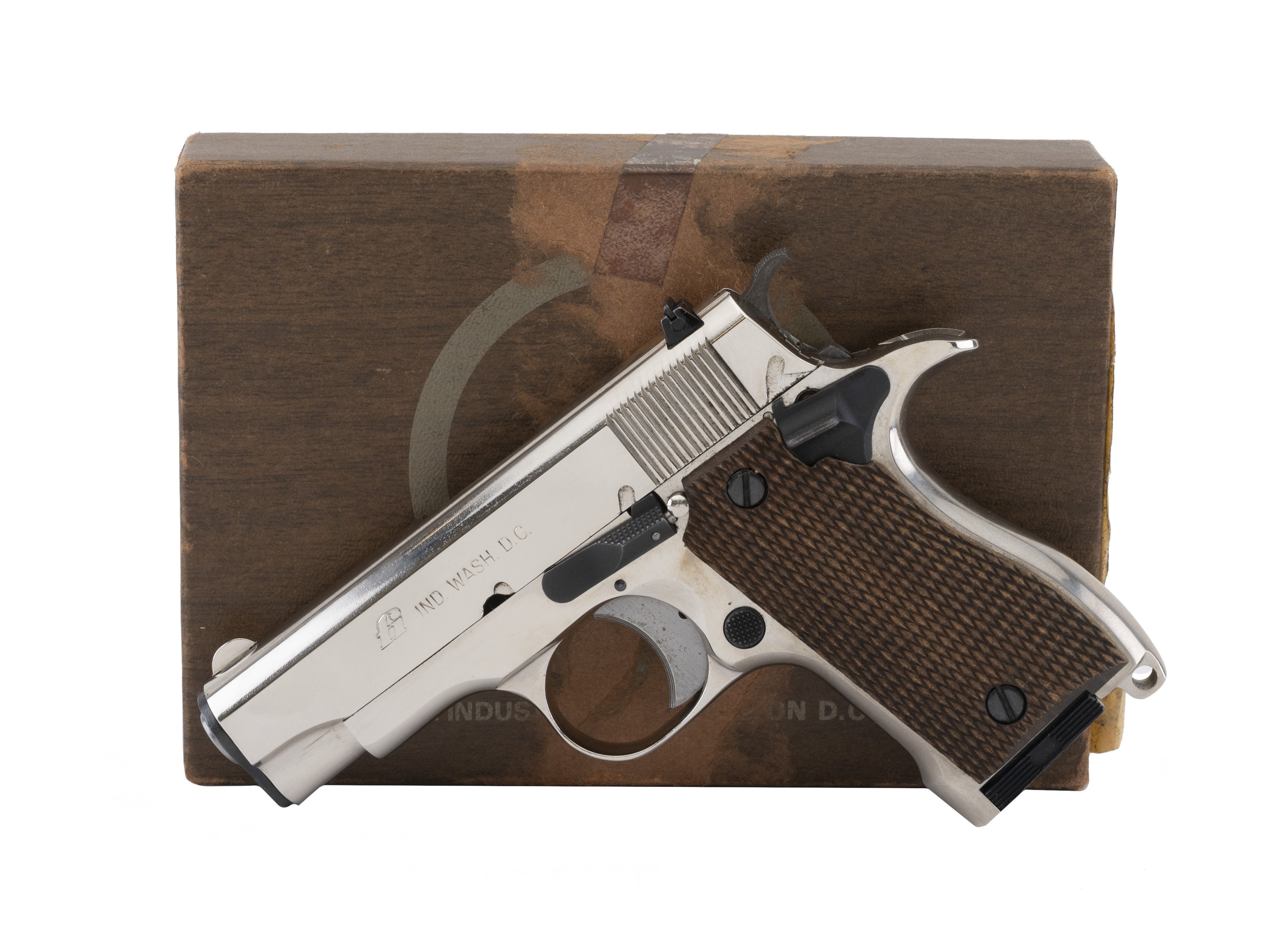 Compact auto pistol with nickel finish. 1960's vintage in excellent condition with box and manual.