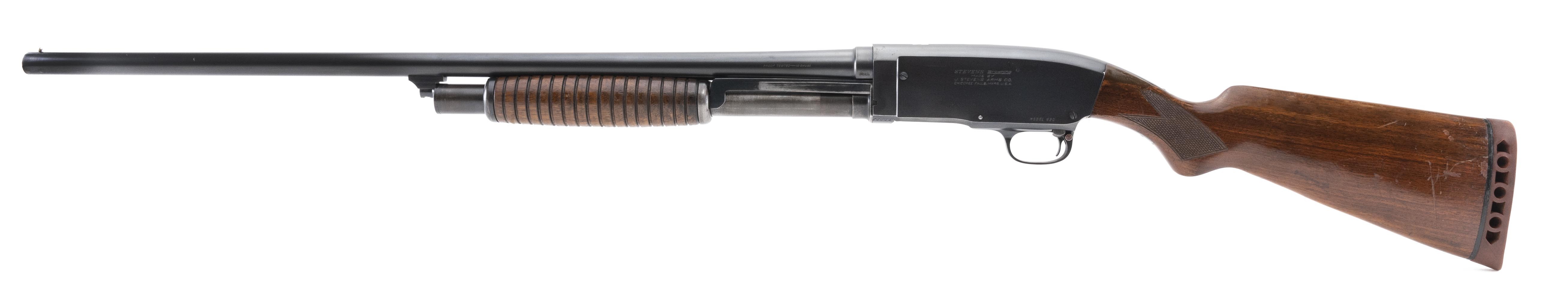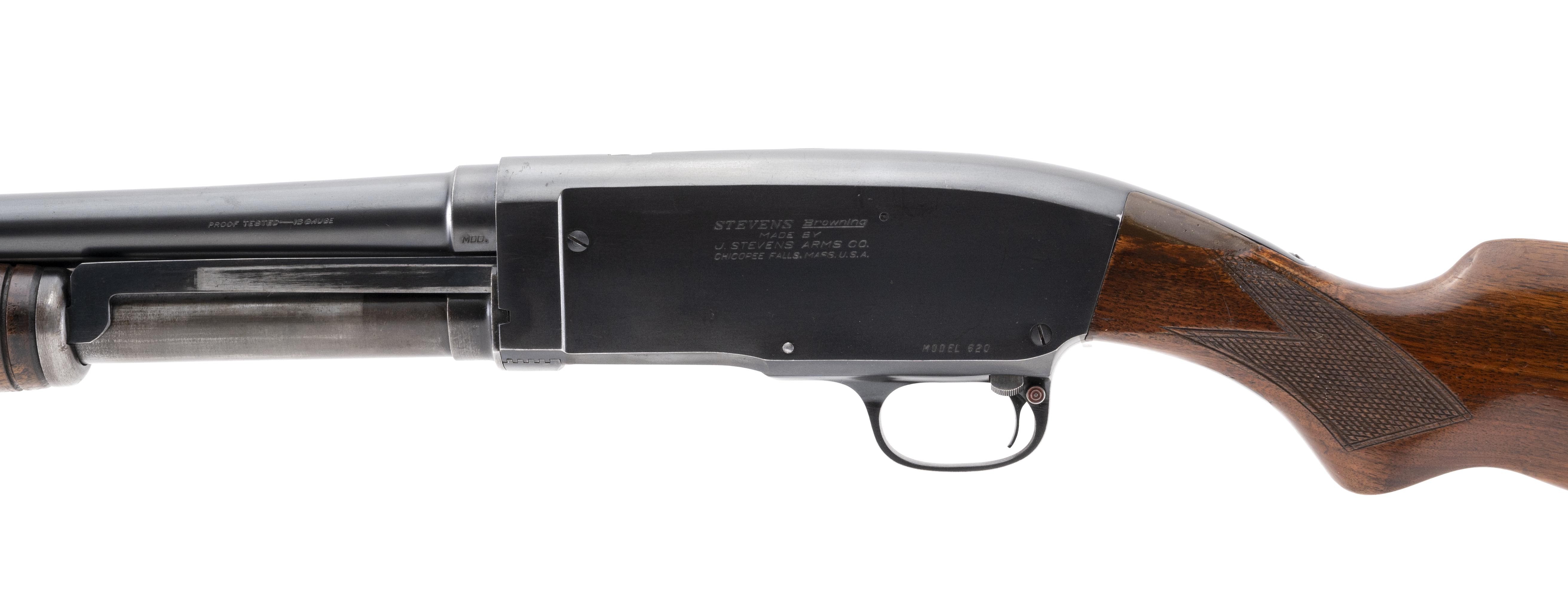 Very early Stevens pump shotgun, marked "Stevens Browning / Made By / J. Stevens Arms Co." Has a 28" Mod choke barrel and all steel receiver. The metal is about excellent, the stock shows light wear. An interesting old pump gun.