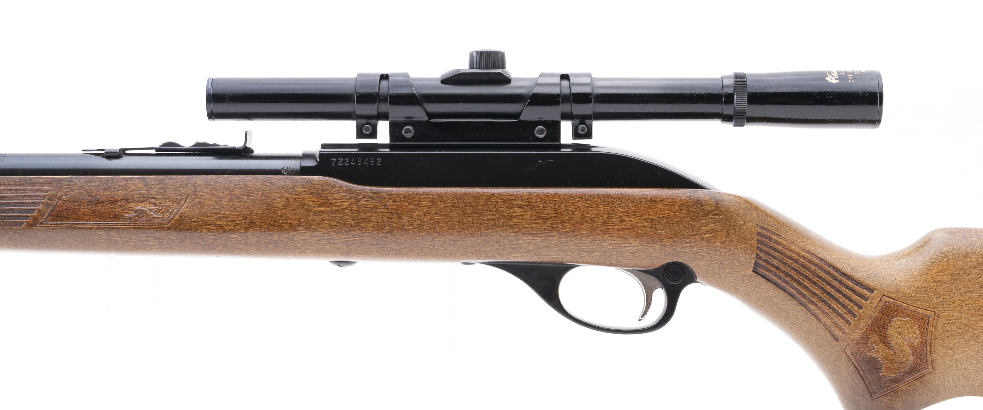 Tube fed semi-auto rifle with Glenfield 4X scope. Bore is excellent. Very good overall condition.
