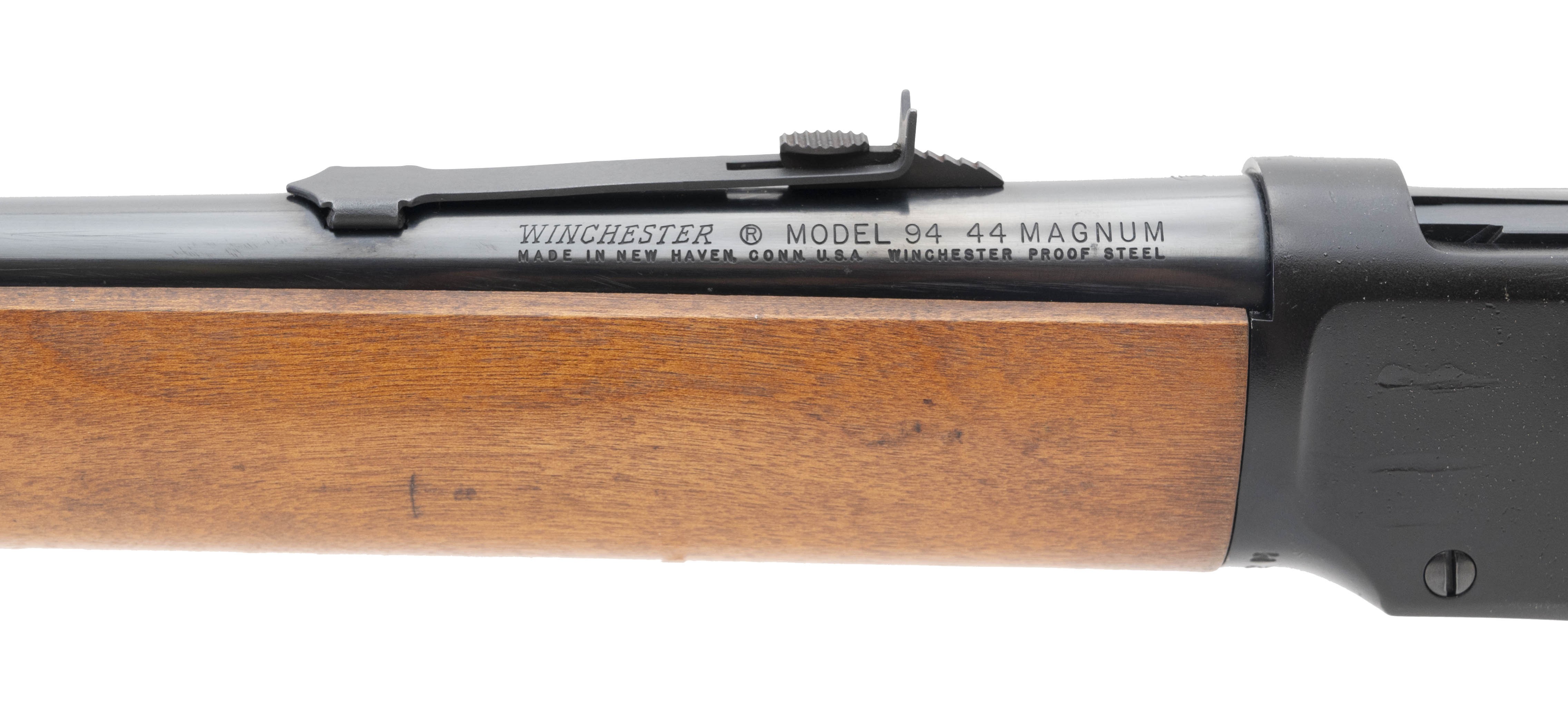 Saddling ring carbine in popular 44 Magnum. Receiver has been refinished and has some light surface etching/pitting. Bore is excellent. Very good overall condition. A reasonably priced 44 Magnum.