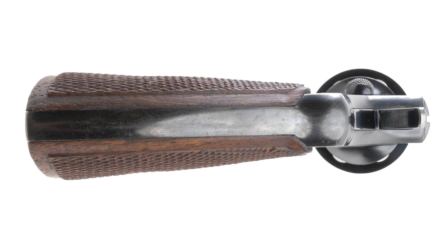 4" blue revolver made in 1923, in neat .32-20 caliber. Has about 96% blue with light wear on the grip frame and the cylinder. The bore and action are excellent. A good looking example, hard to find in this condition.