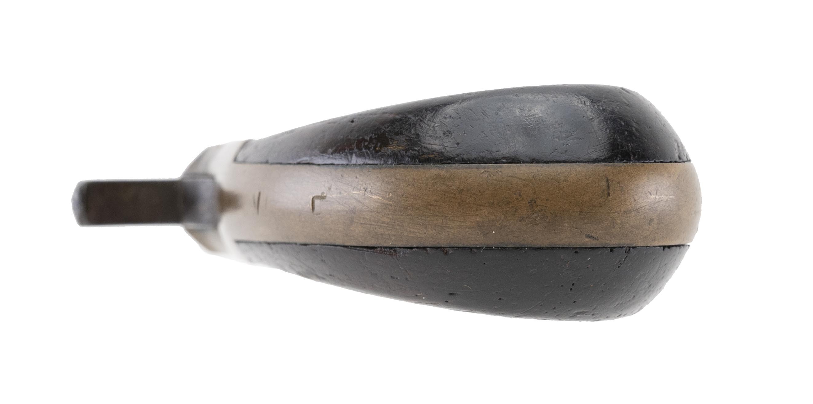 Approx. 6,000 Marlin O.K. model deringers were made in 22, 30, and 32 rimfire calibers from 1863 to 1870. The 2.75" octagon to round 22 caliber rimfire barrel has a good bore with rifling wear. The top of the chamber is marked O.K. The right side of the breech has the standard Marlin markings which are barely visible. The barrel has a gray/brown patina. The brass frame is very good with staining on the right side and with the remainder having an even aged patina. The rosewood grips are good with a small chip on each at the lower frame junction. The action functions correctly. Don't miss this scarce O.K. deringer!