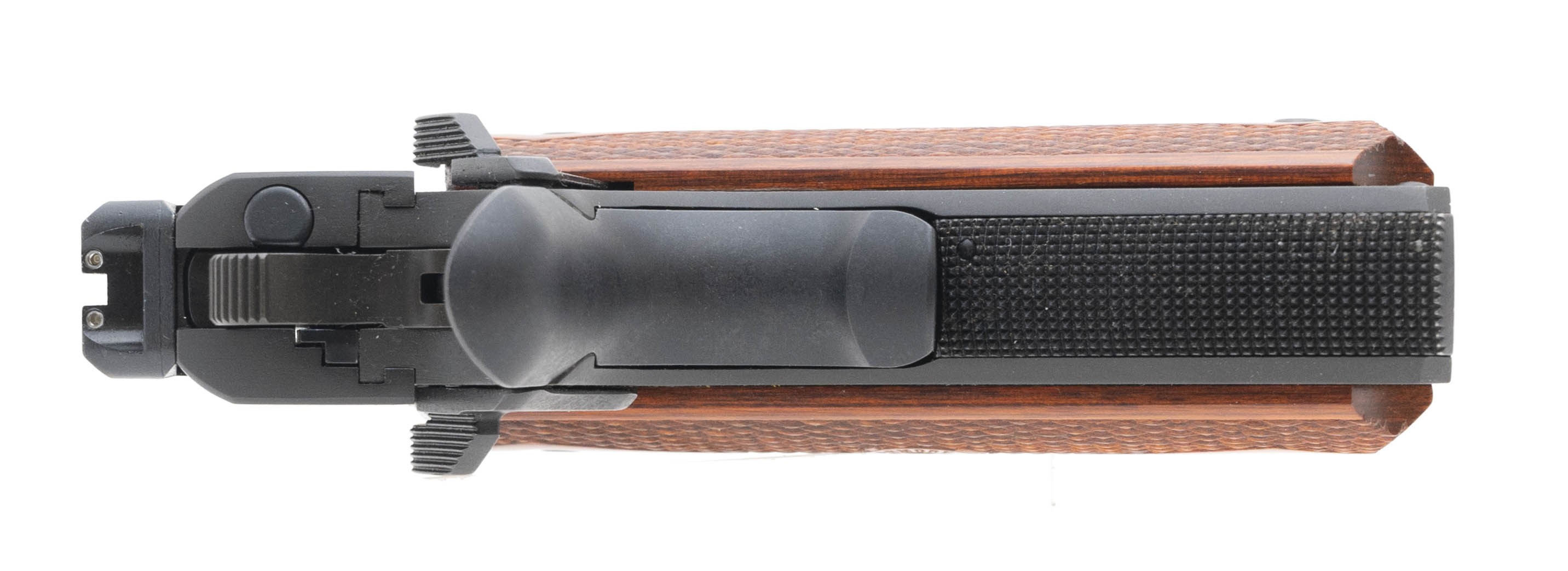 Full size model with Parkerized finish. Comes with ambi safety and tritium night sights and Cocobolo grips. Comes with box and magazine and is in excellent condition.