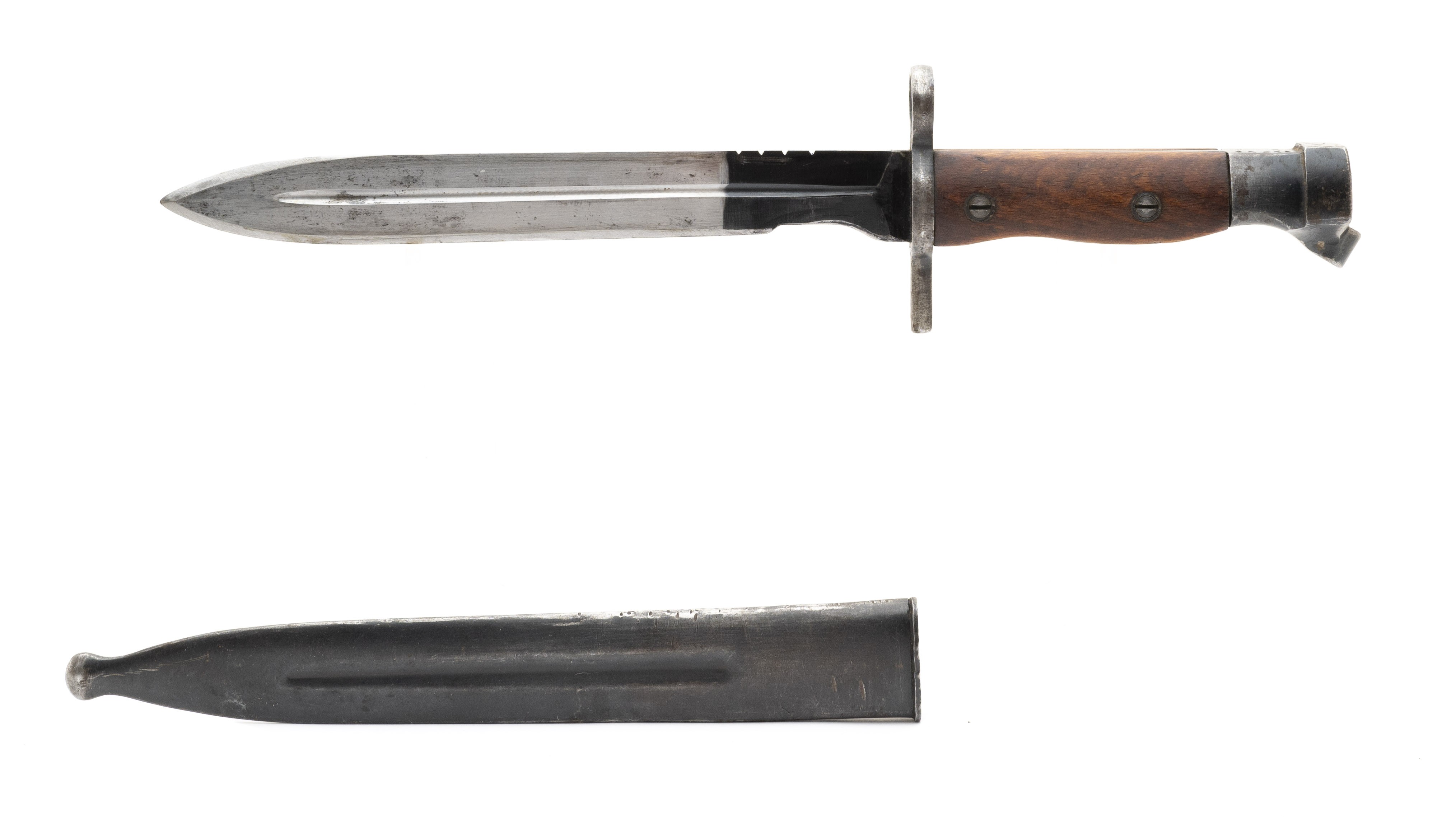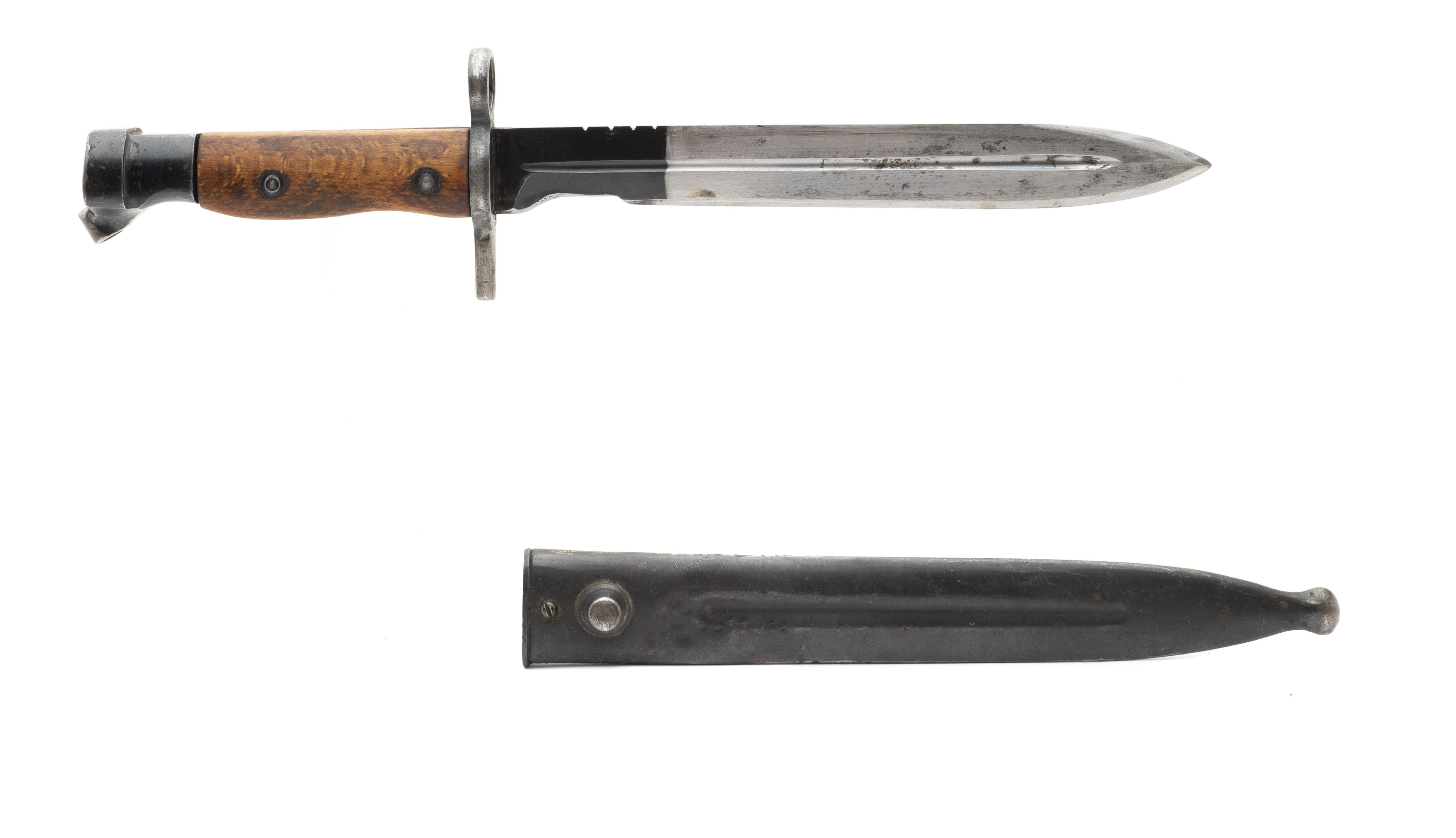 Fits the Hakim rifles. Blade has been customized with some milling by the guard and some notches added on spine. Very good overall condition.