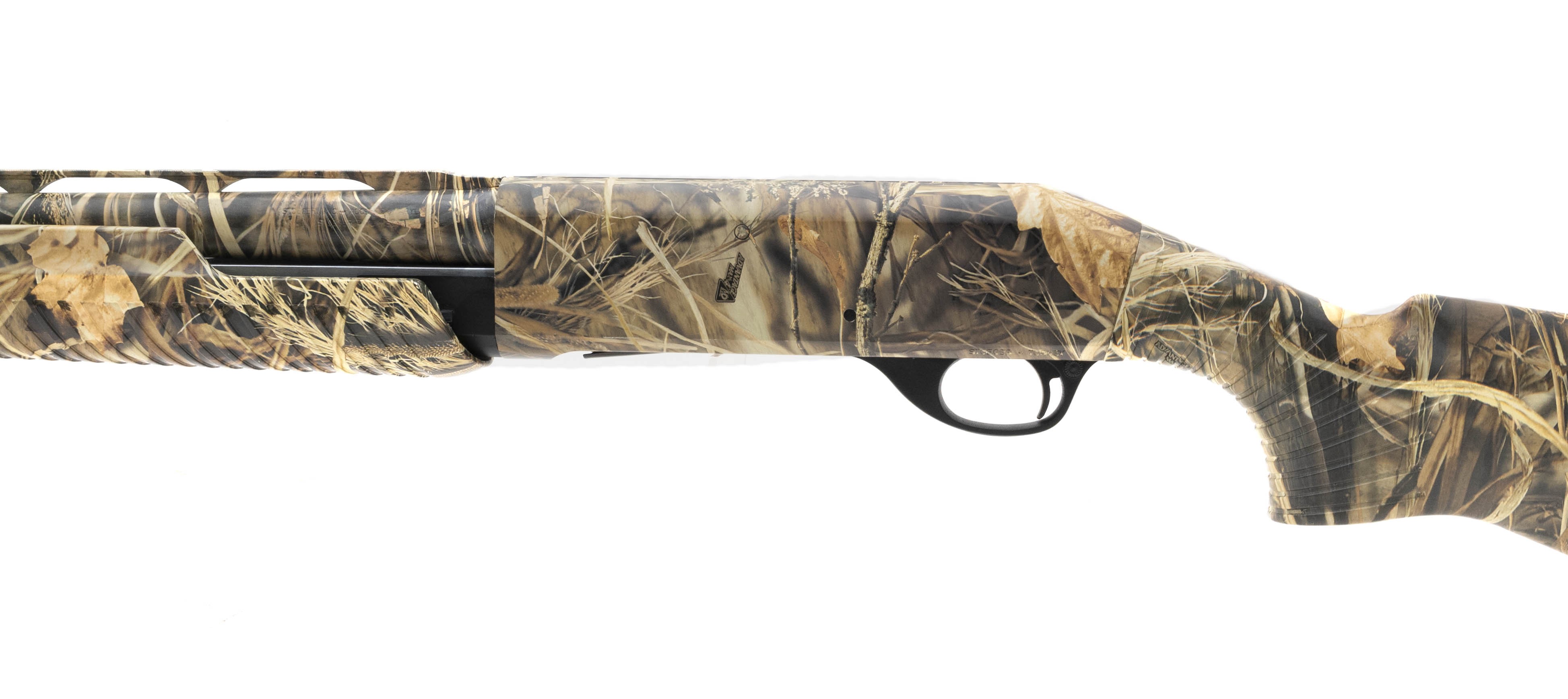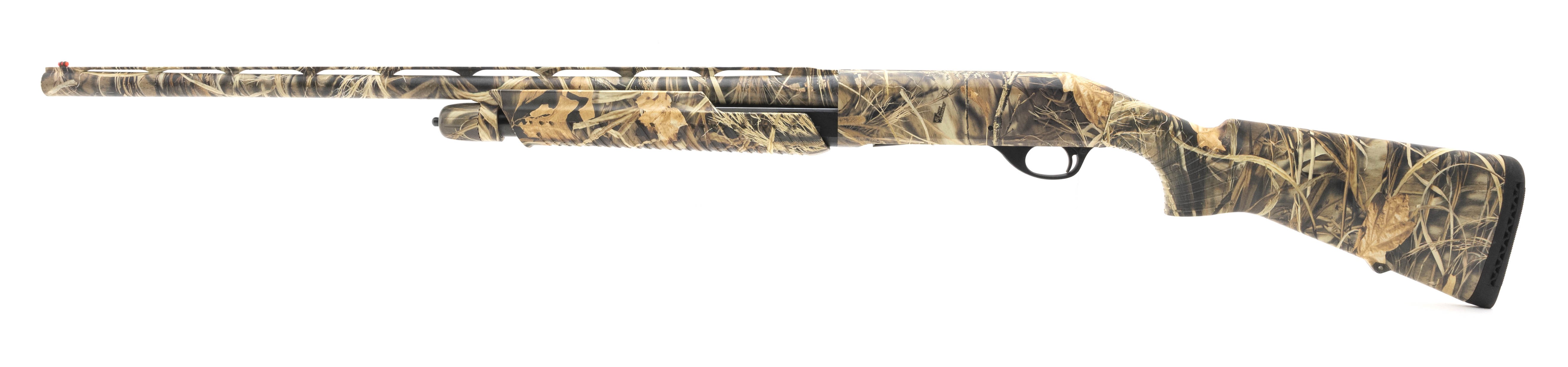 Pump action field gun with 28" barrel and camo stock. Very good overall condition.