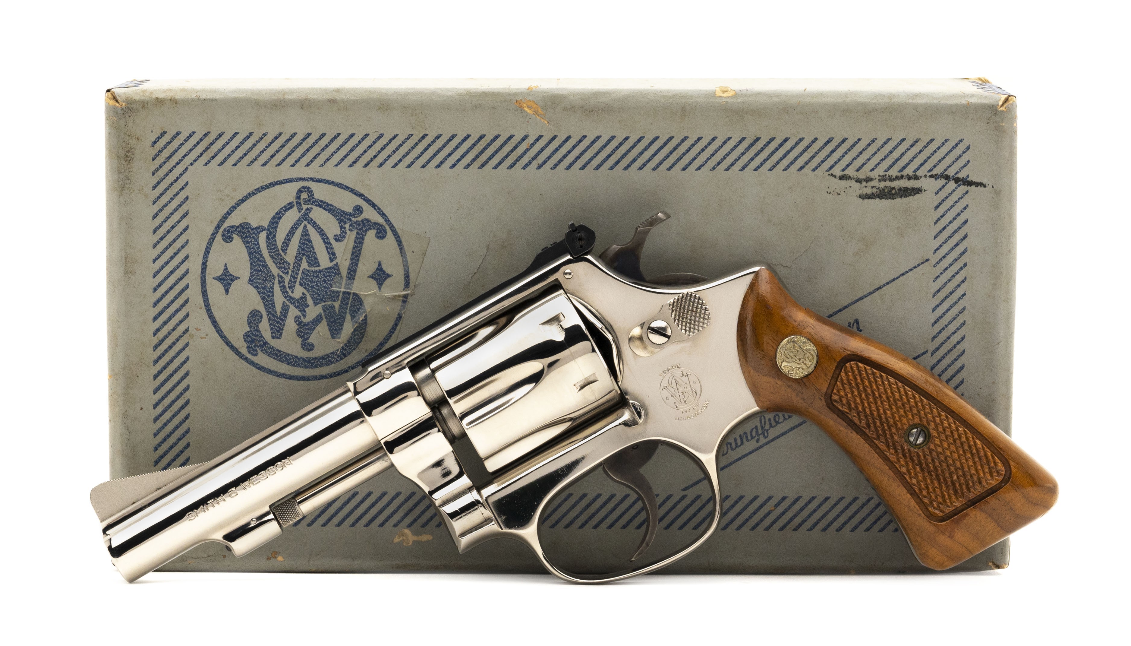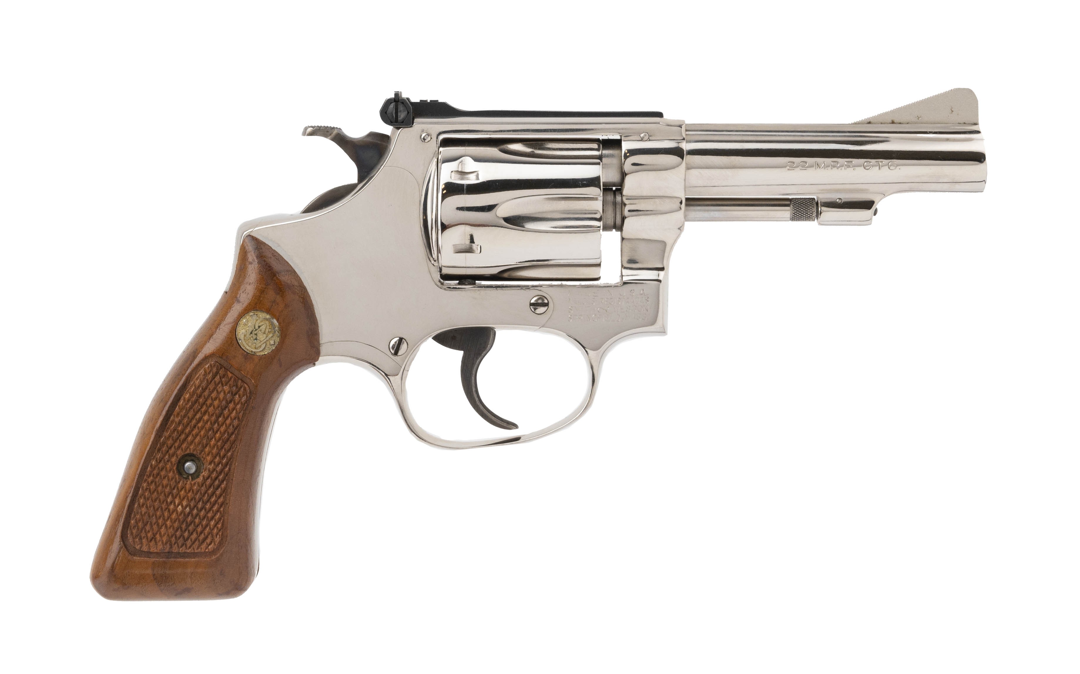 Rare 4" nickel .22 Magnum Kit gun. Made in the early 1970's, hard to find in nickel finish. Excellent condition. Comes in a period silver box, but without a label.