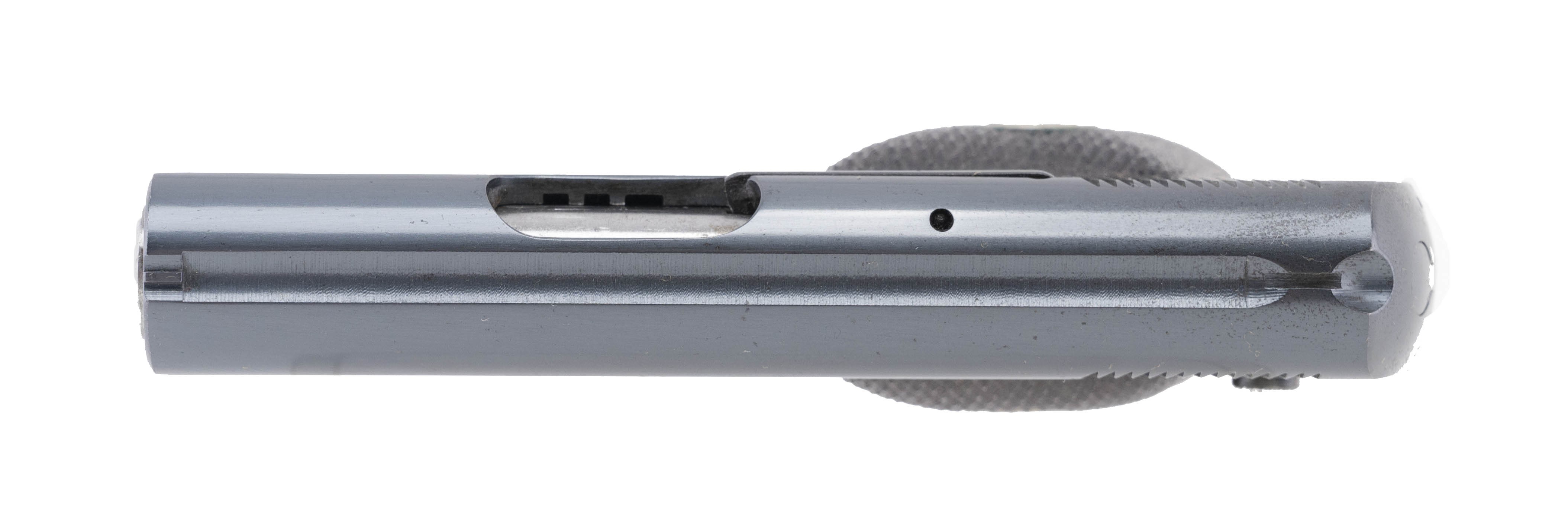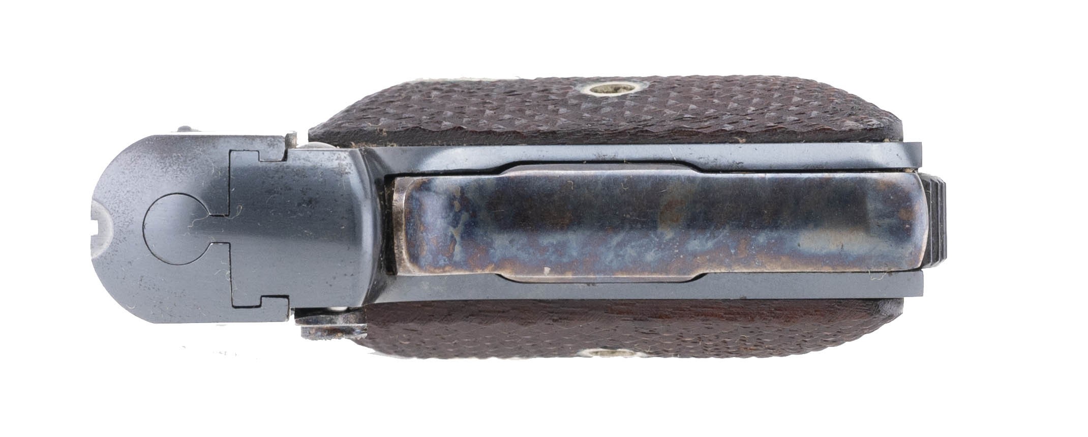 Manufactured in 1930. Bore is mint. Metal has approximately 95% original blue with an area of light patina on right side of slide. Small parts have all of their original case colors. Very good plus overall condition.