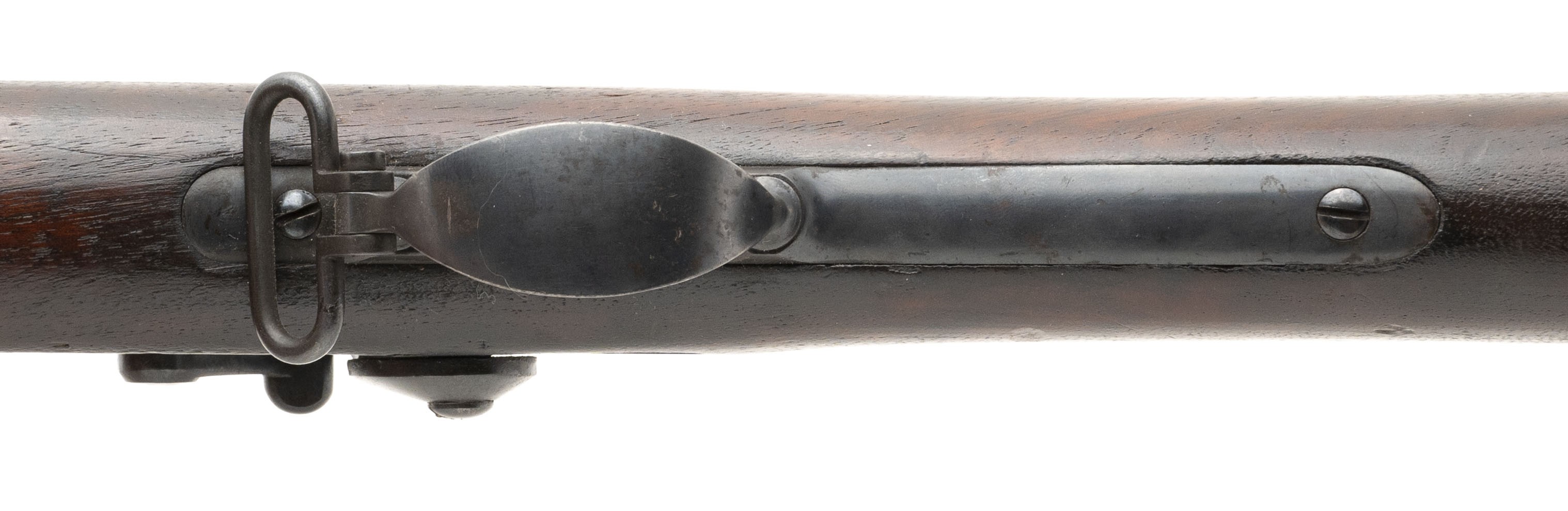 US military rifle manufactured in the early 1880s. Metal has been refinished long ago and looks good. Bore is very good with strong rifling and some very minor pitting. Very good overall condition.