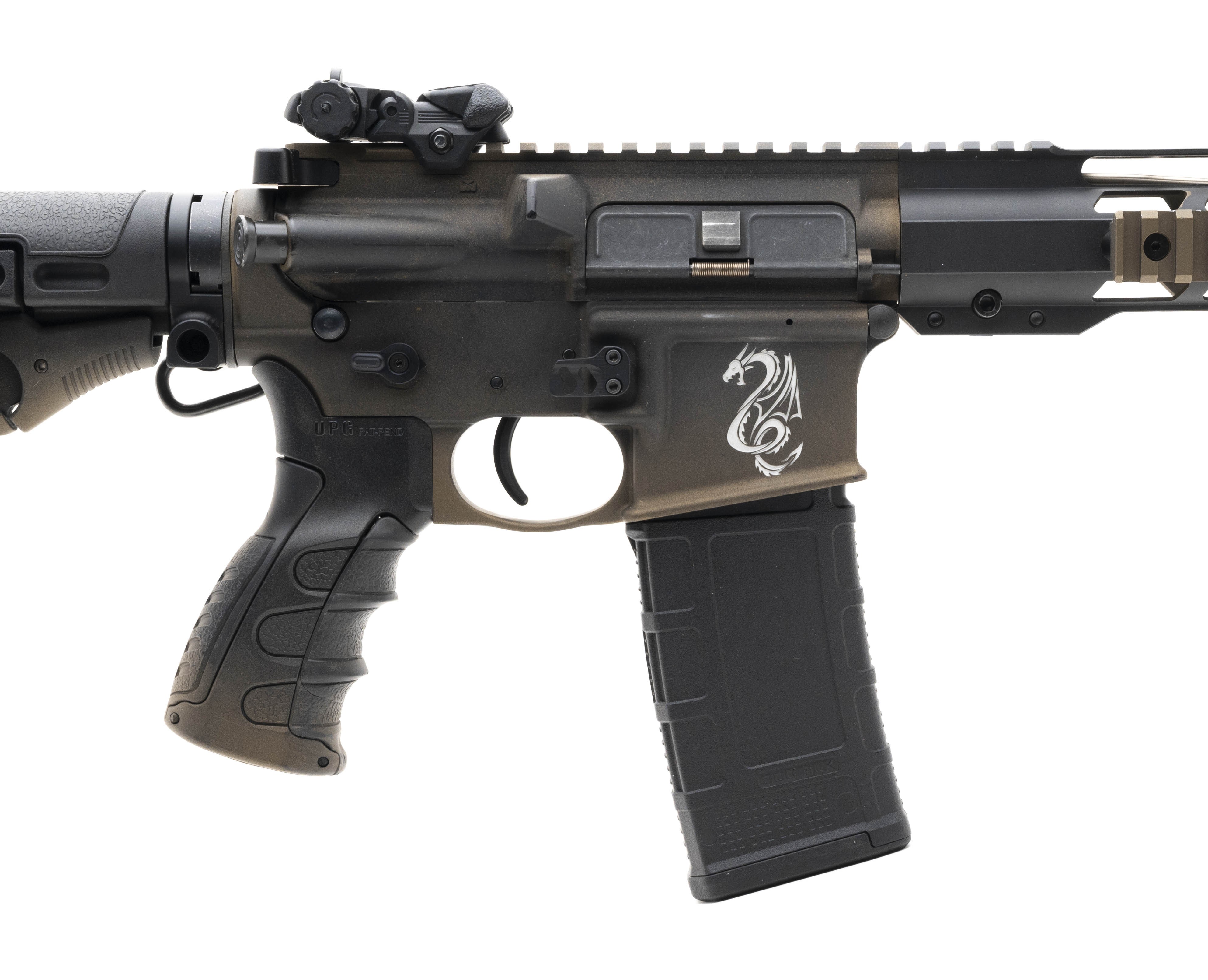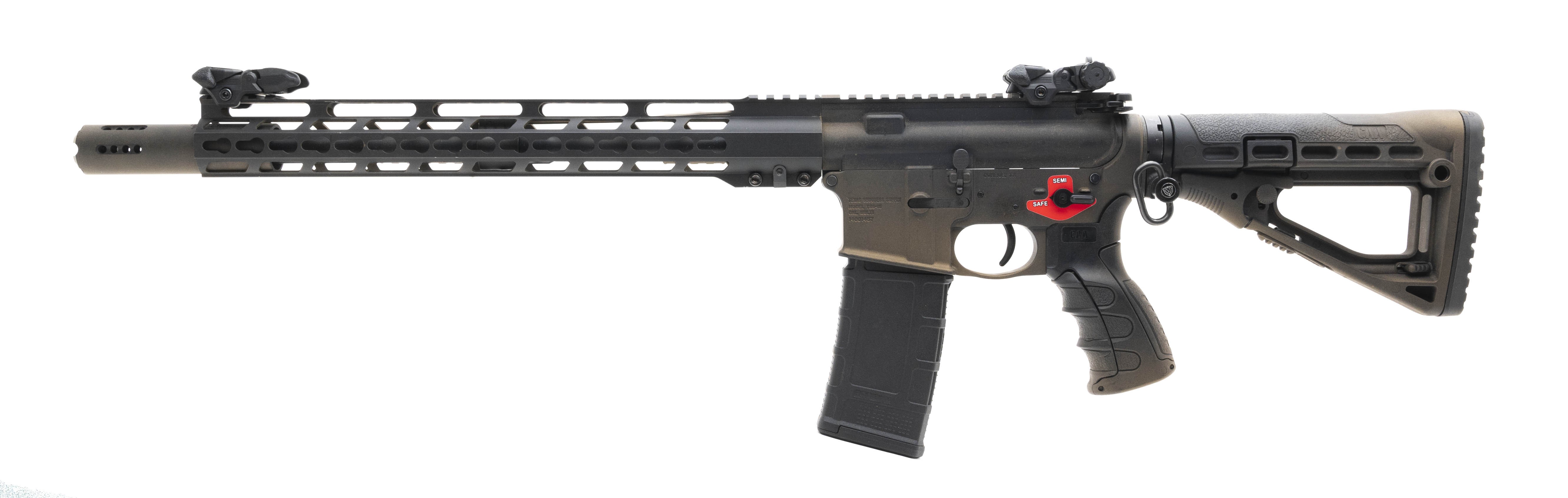 AR-15 with distressed bronze finish, forward blast can, freefloat rail, and Franklin Armory binary trigger. Very good condition.