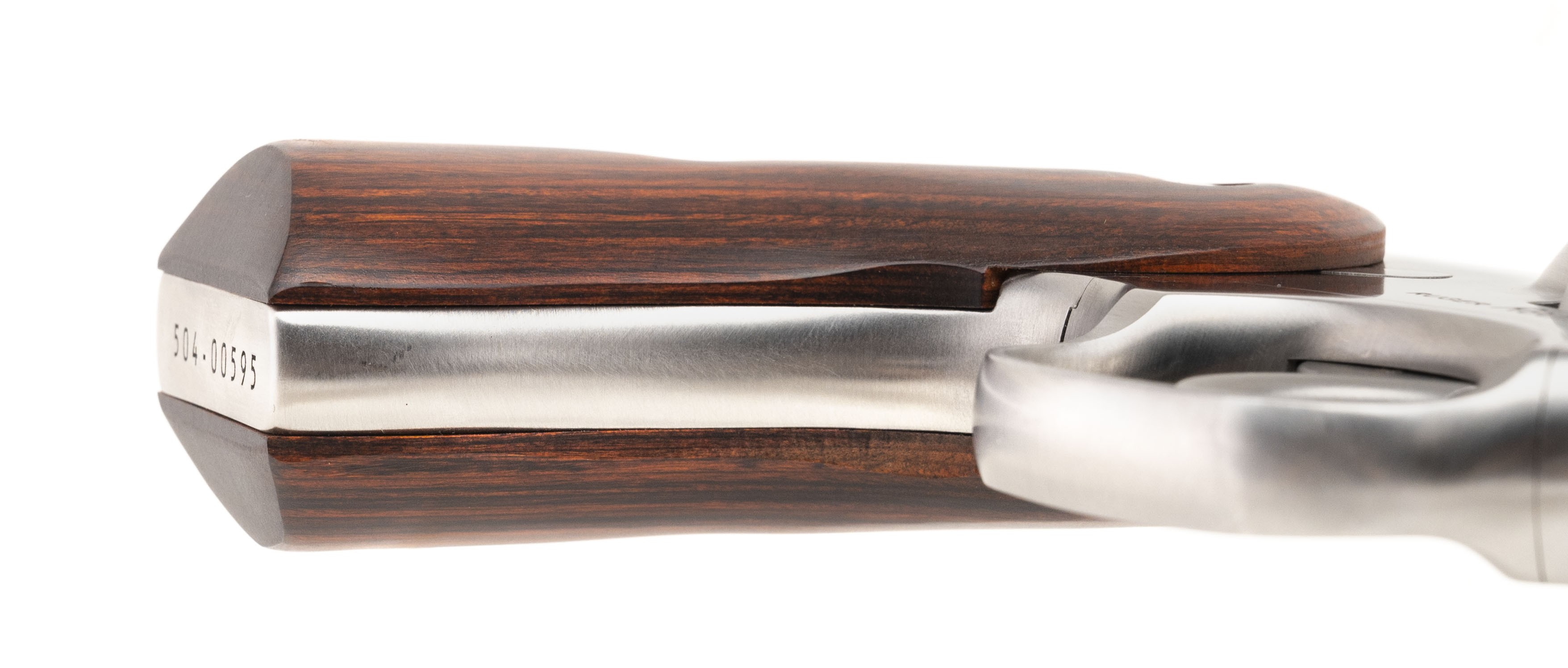 Stainless steel snubnose revolver with 8-shot cylinder. Excellent condition with box.