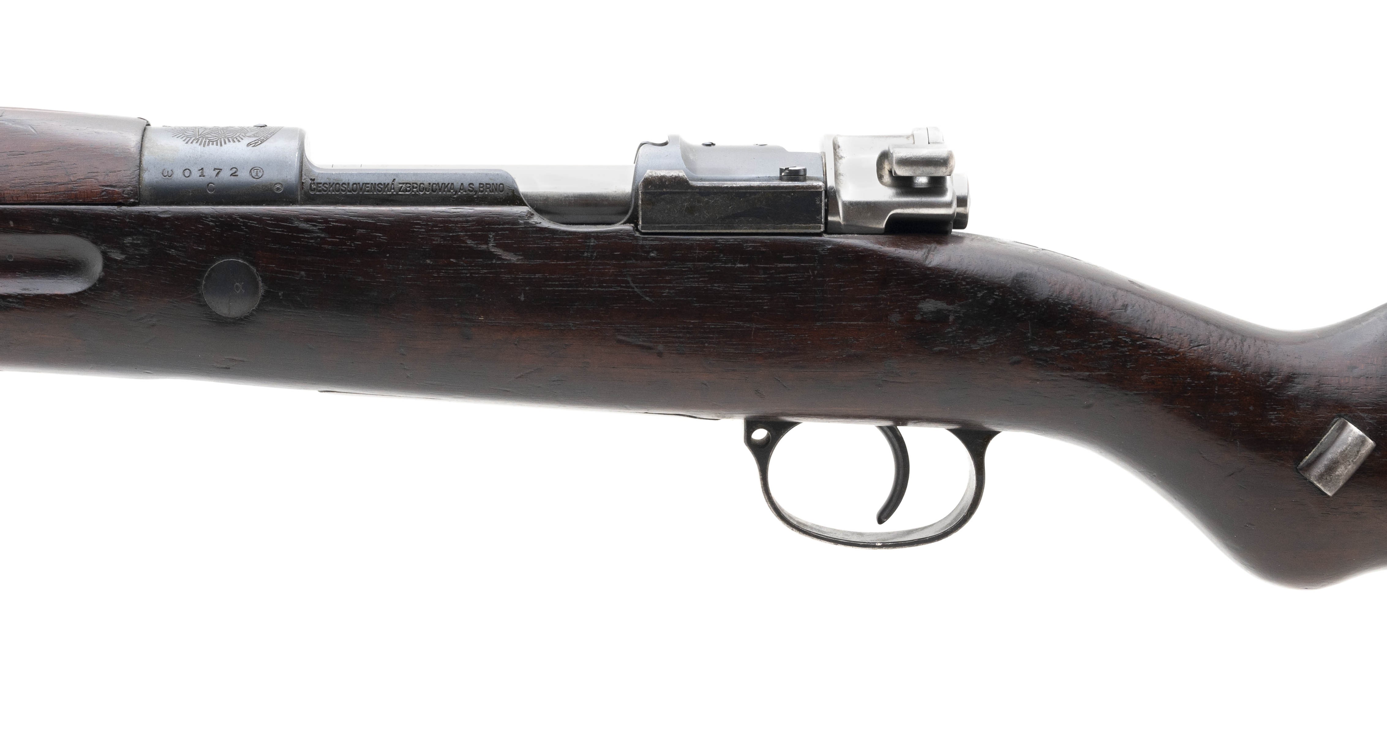 Czech-made bolt-action Mauser made for Brazil. The bore is excellent. The metal is in very good condition. The rifle has been drilled and tapped. The stock is in very good condition with a rack number on the left side and their are cartouche on the right hand side. Overall very good condition. Comes with cleaning rod.
