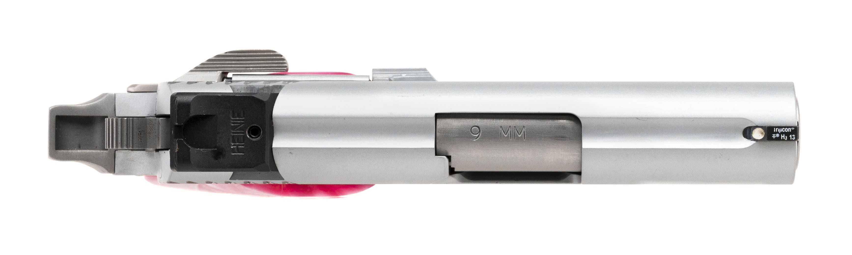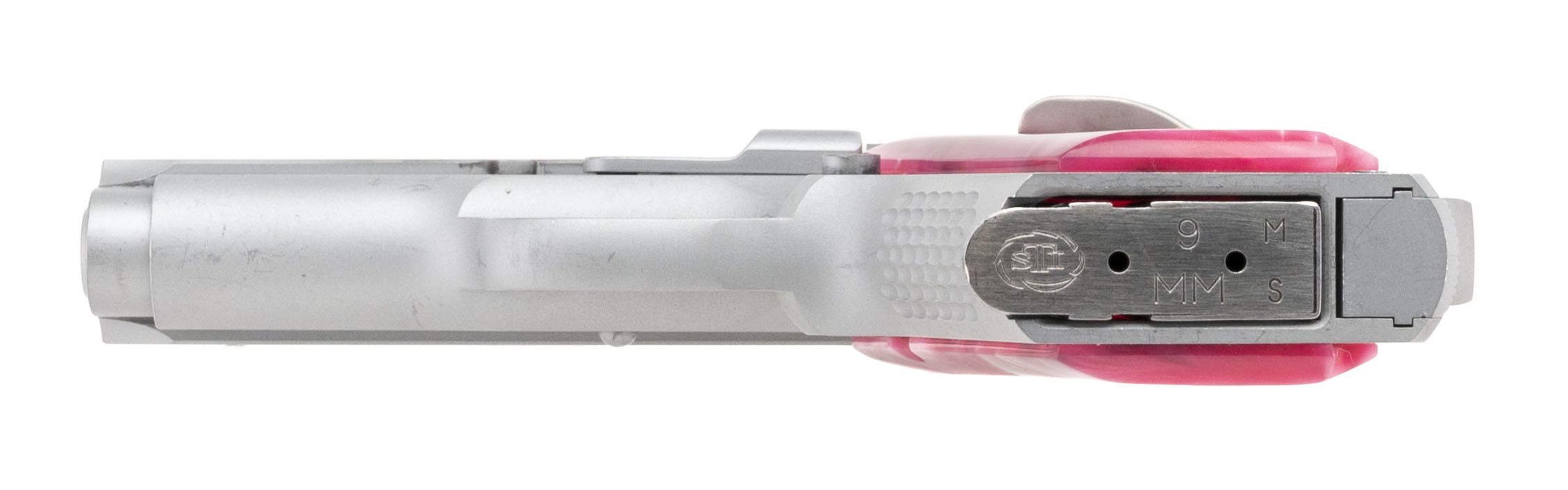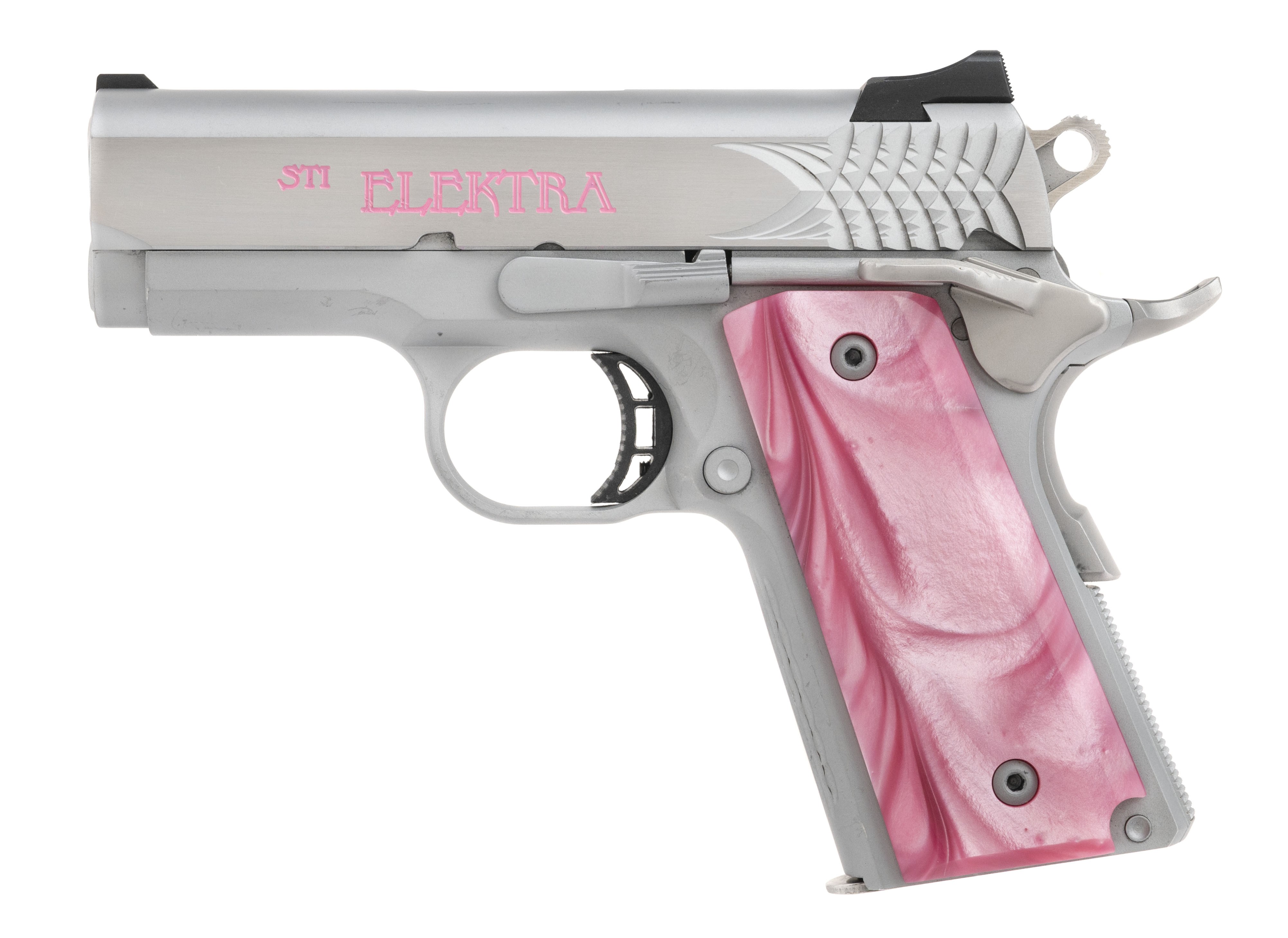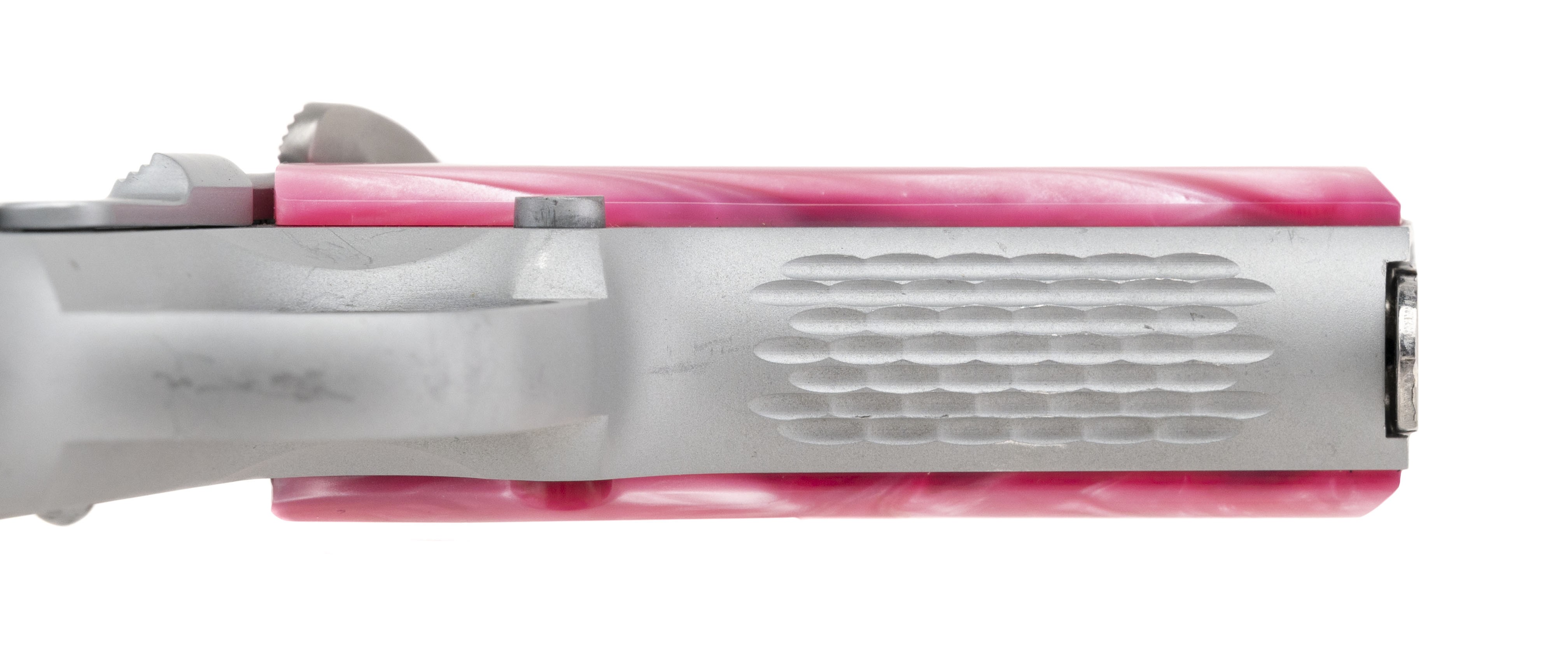 3” subcompact alloy frame carry model with night sights and fancy pink grips. Excellent condition with box and extra magazine.