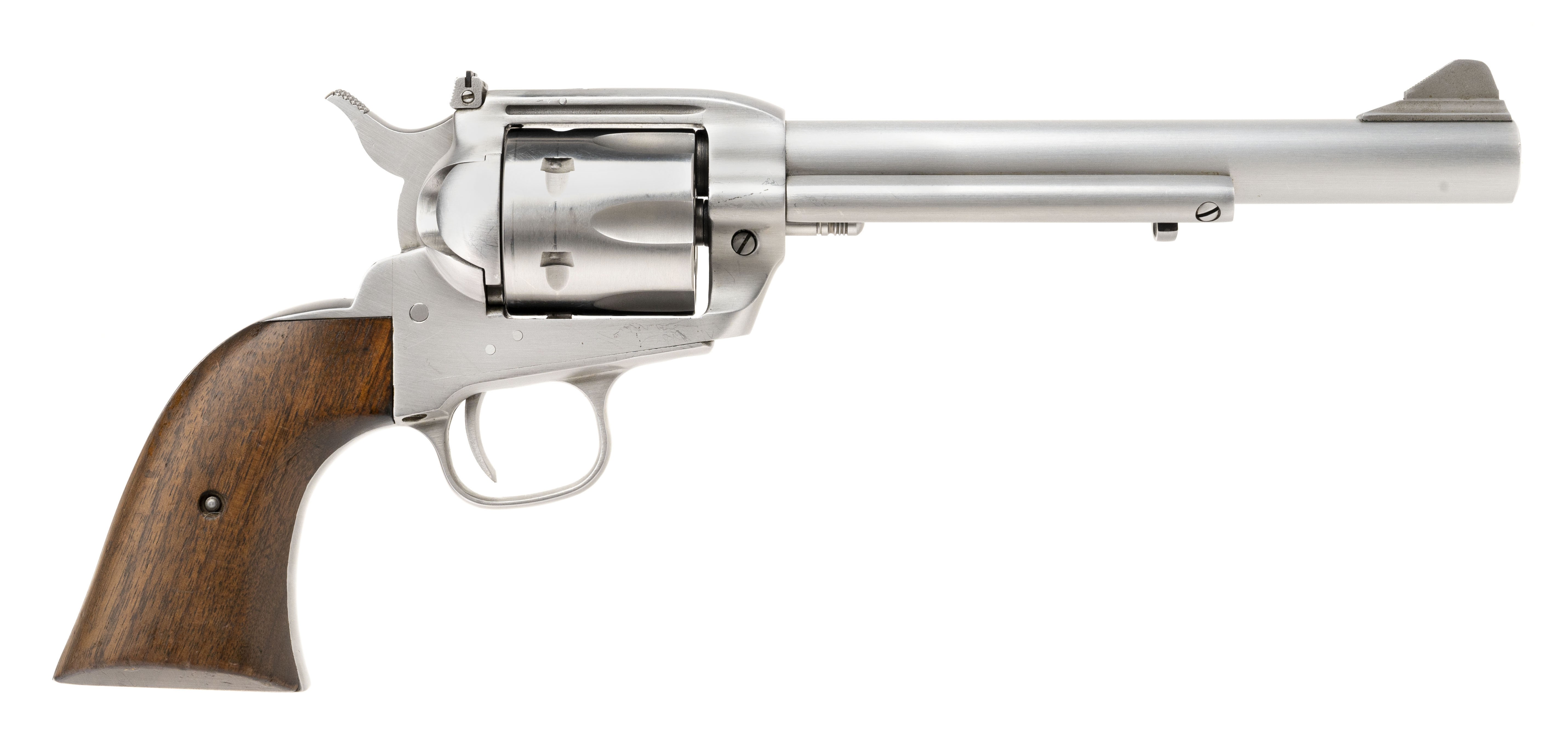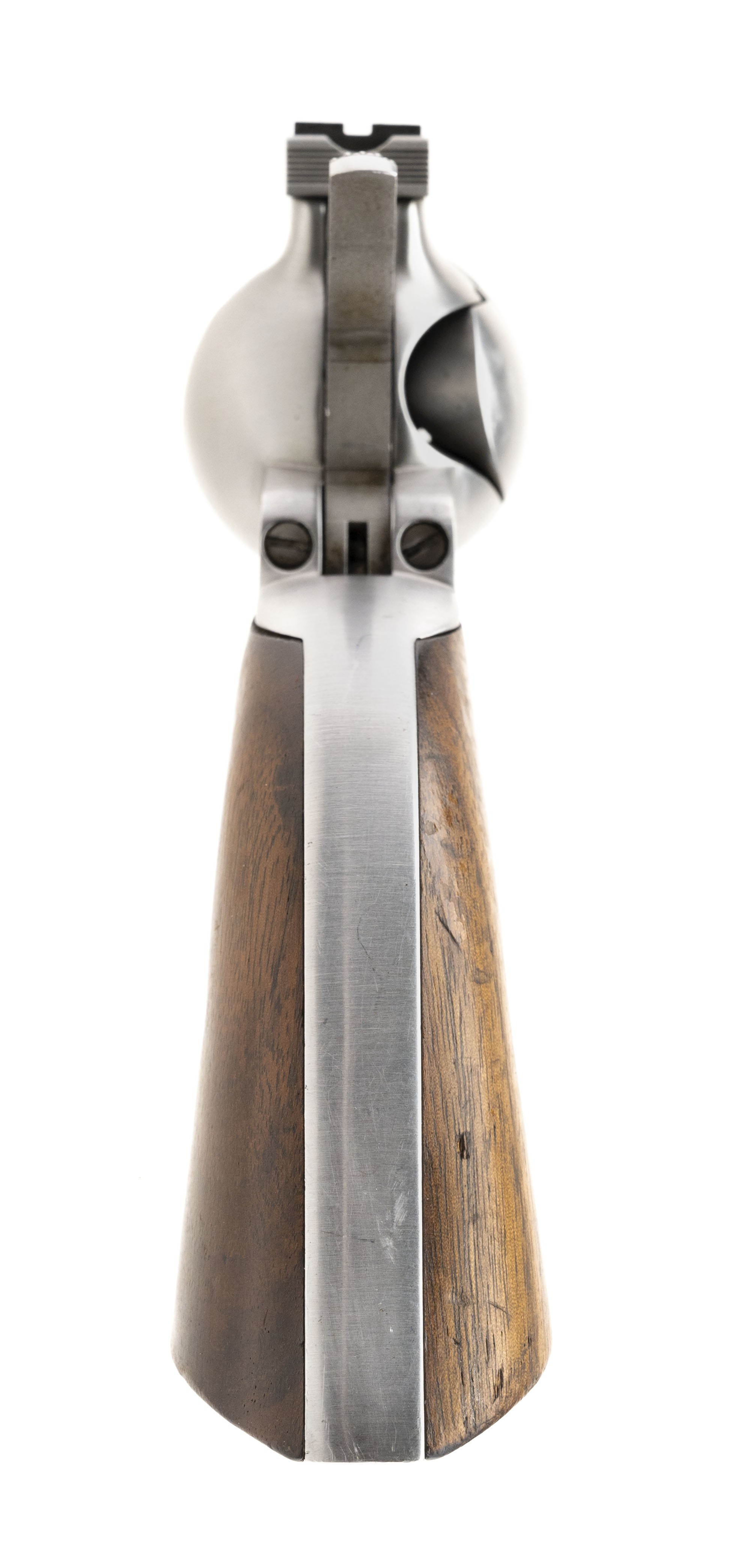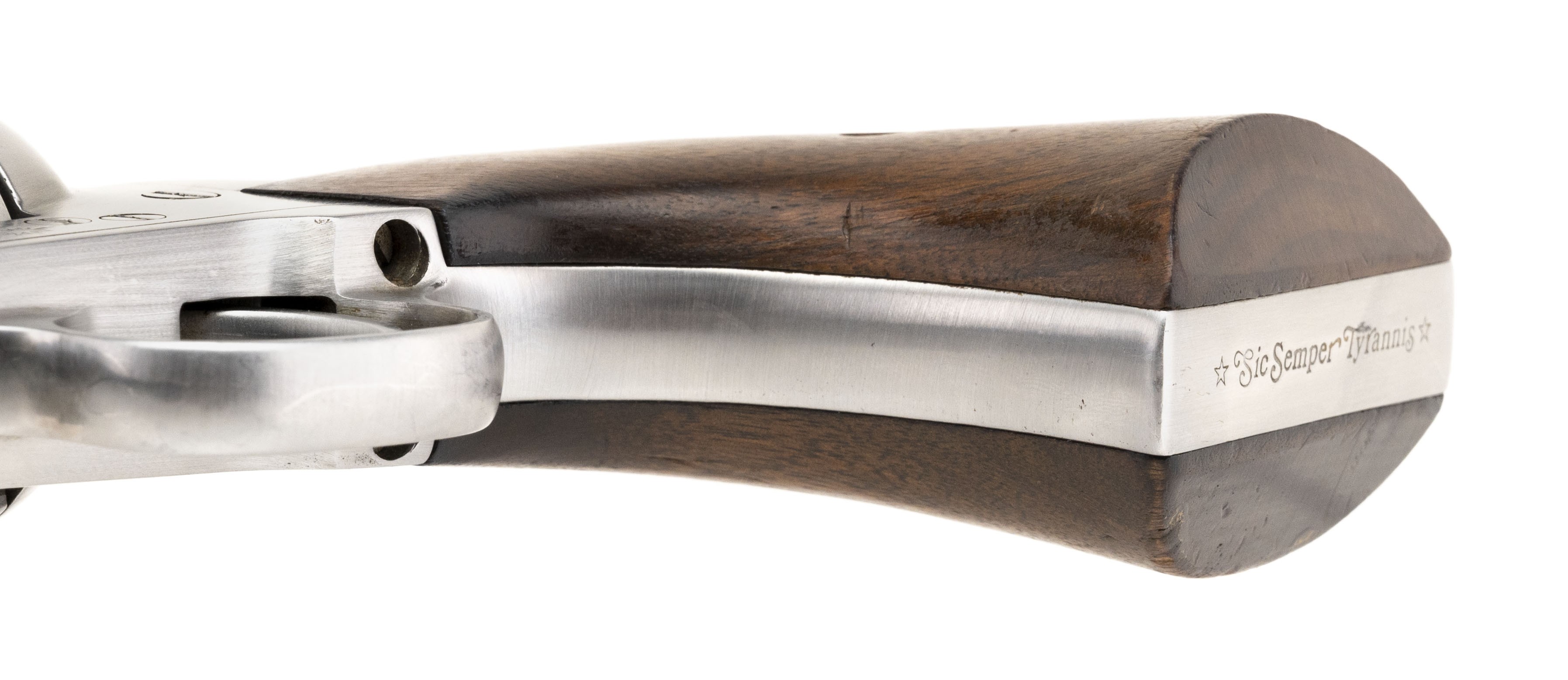 Stainless steel single action revolver with 7.5" barrel. The butt is marked "Sic Semper Tyrannis". Very good overall condition.