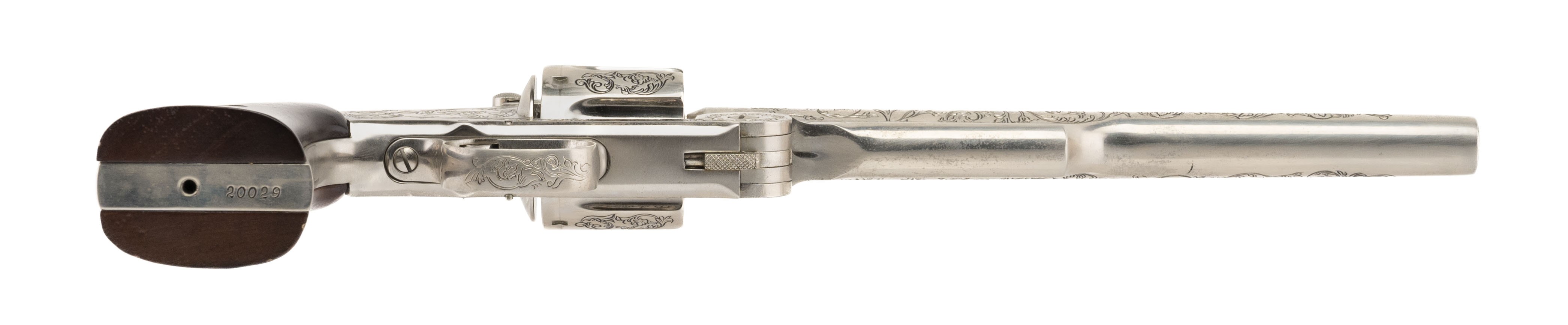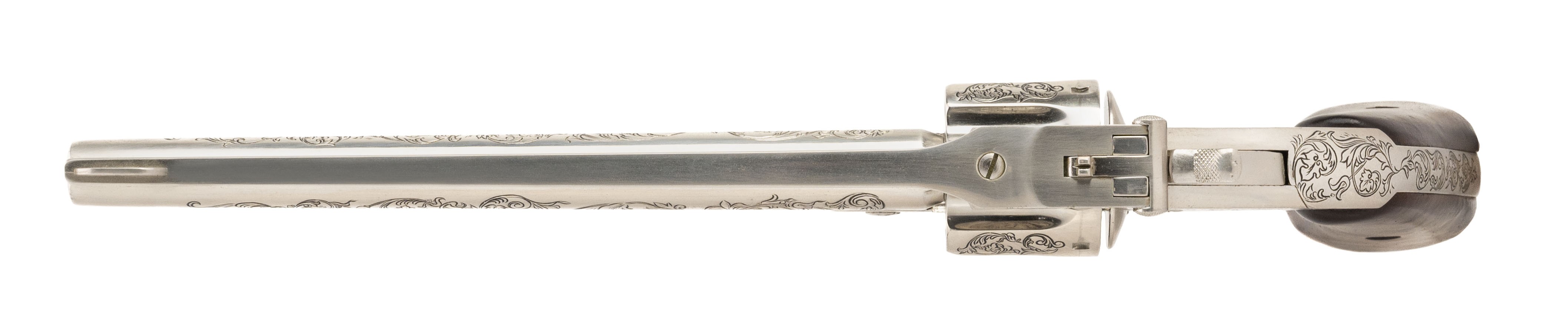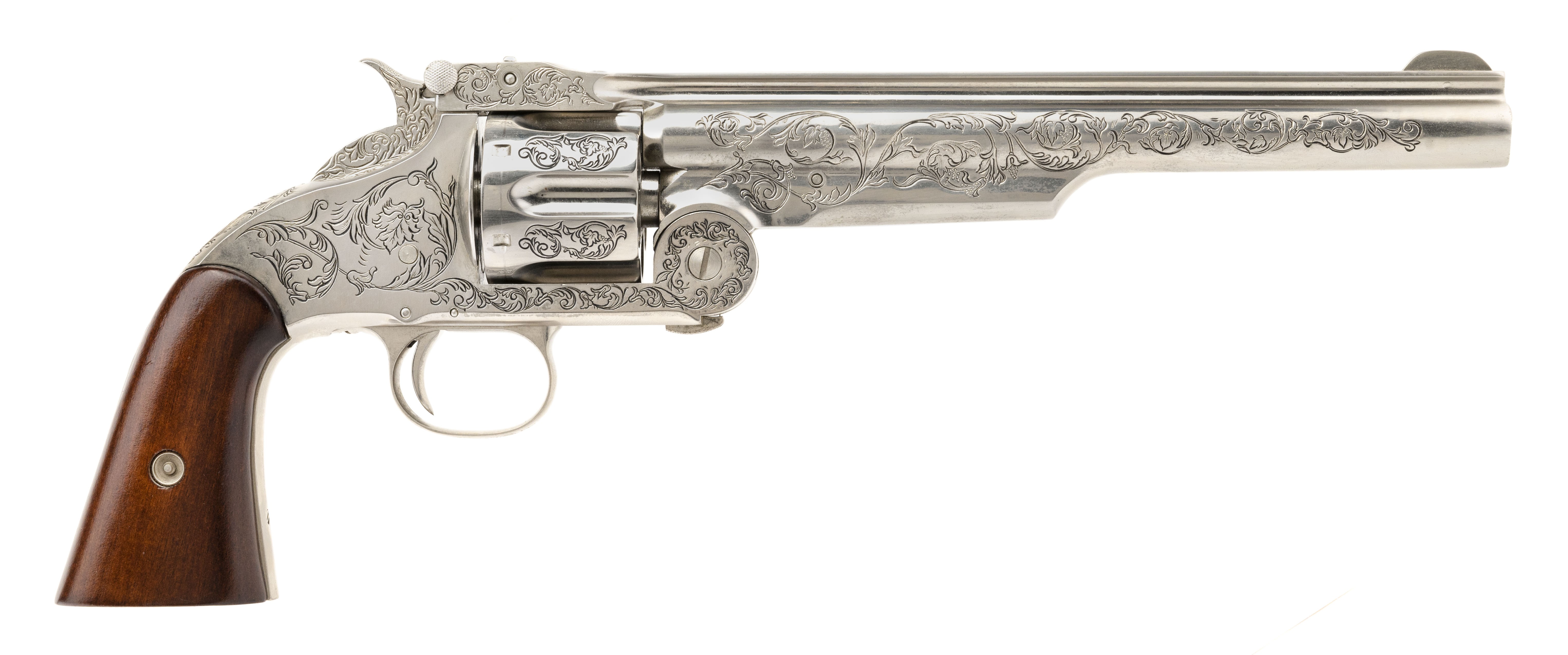 NON-FIRING Wyatt Earp replica S&W Schofield revolver with 8" barrel. Comes with wall mount frame and plaque.
