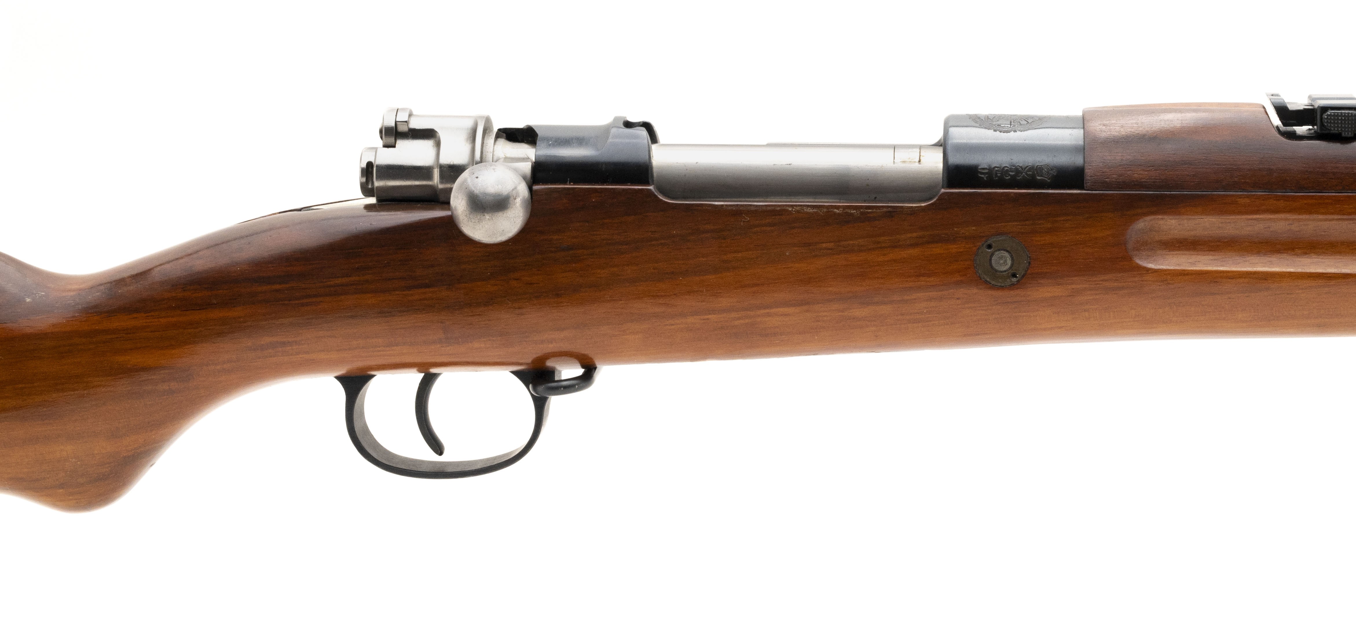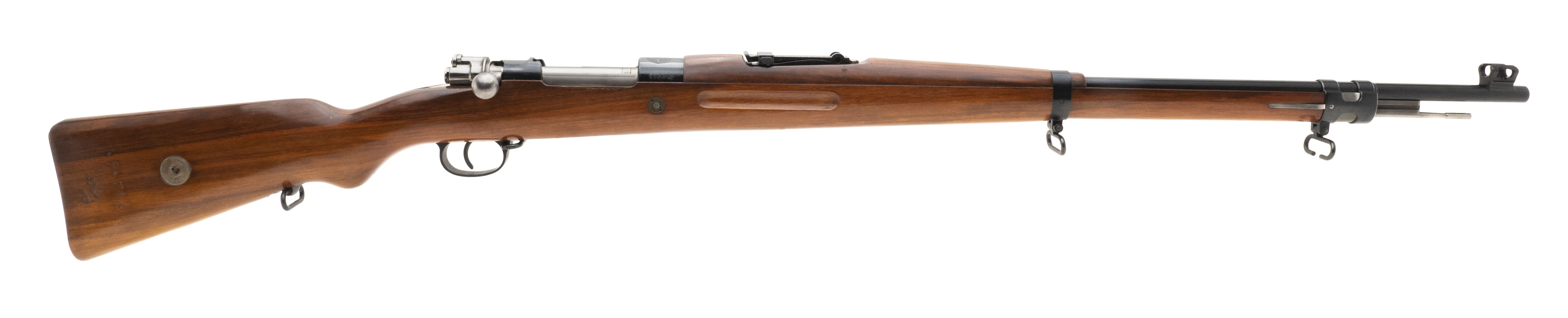 About 180,000 7.92X57mm (8mm Mauser) Persian Model 98/29 Mauser Rifle were manufactured by Brno in Czechslovakia between 1931 and 1938. The 29.1" barrel has an excellent bore with bright, strong rifling. The metah has approx. 99% blue. The Persian crest is on the top of the chamber and all markings are in Farsi. The stock, with matching serial number, is excellent with a blank disc on the right butt. The cleaning rod, swivels, and stacking swivel are present. The action functins correctly. This is a like new example of the Model 98/29 Persian Mauser. You won't be able to improve on it!