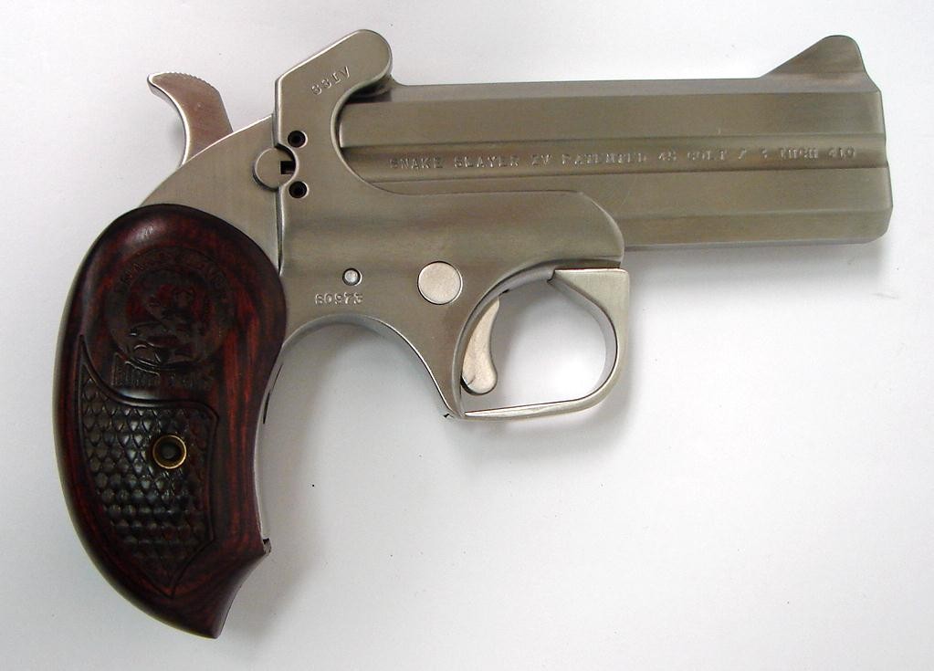 Bond Arms Snake Slayer IV .45Colt/410 gauge derringer. 4" derringer with fancy grips. Excellent condition.