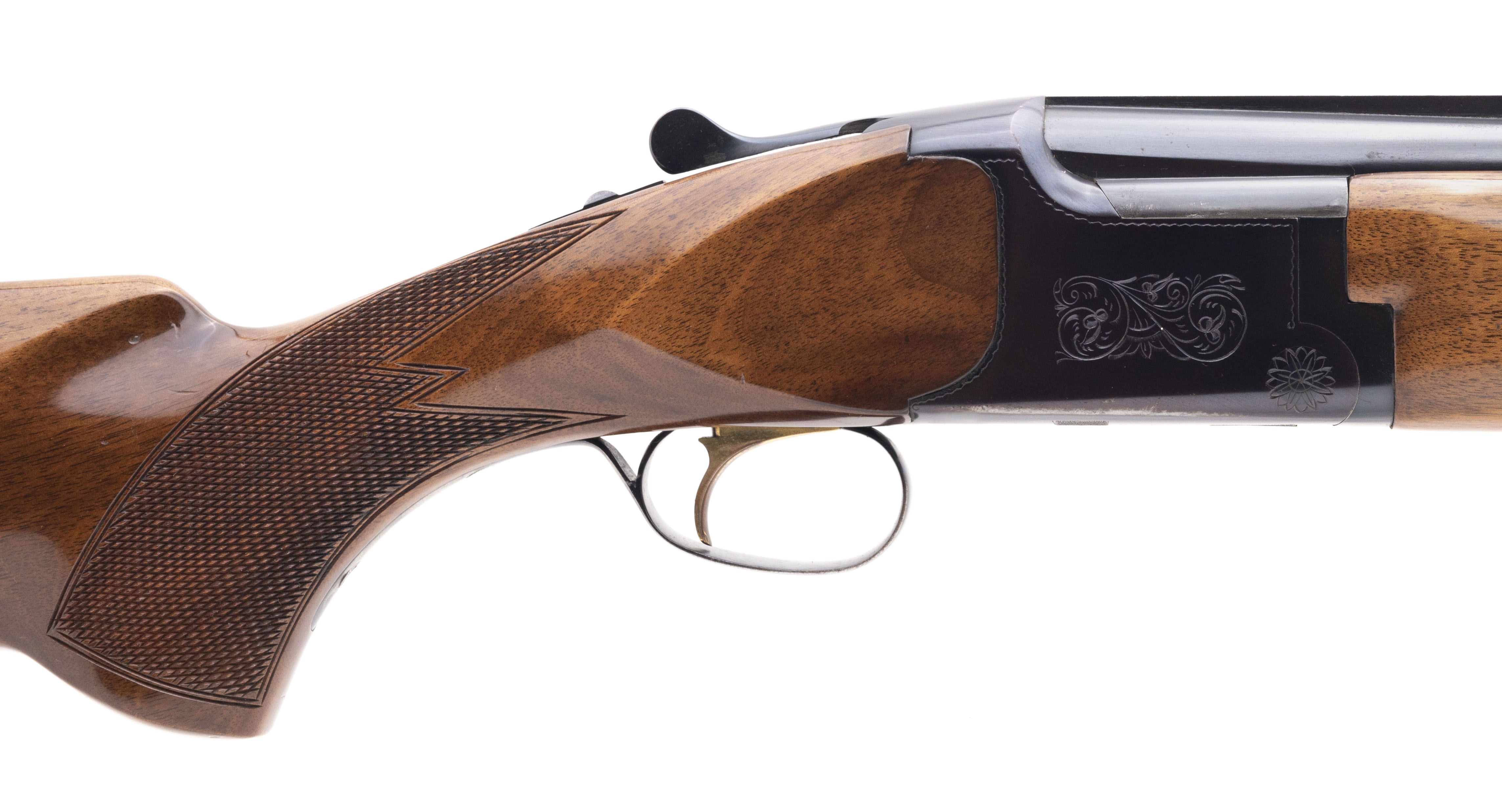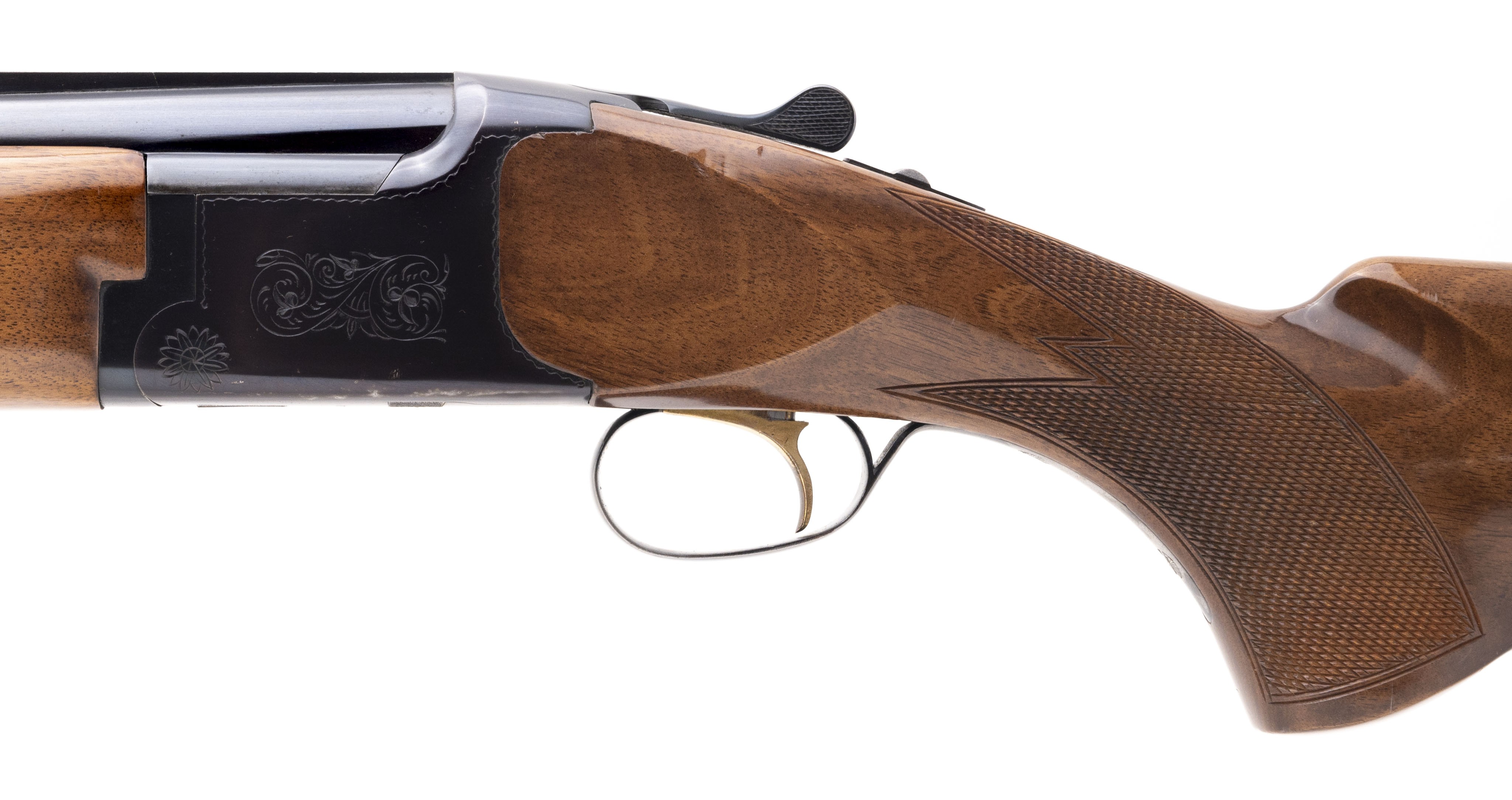 Over/under skeet gun with 26" barrels. LOP is 14 1/4". Made by Miroku for Charles Daly. Very good condition with light wear.