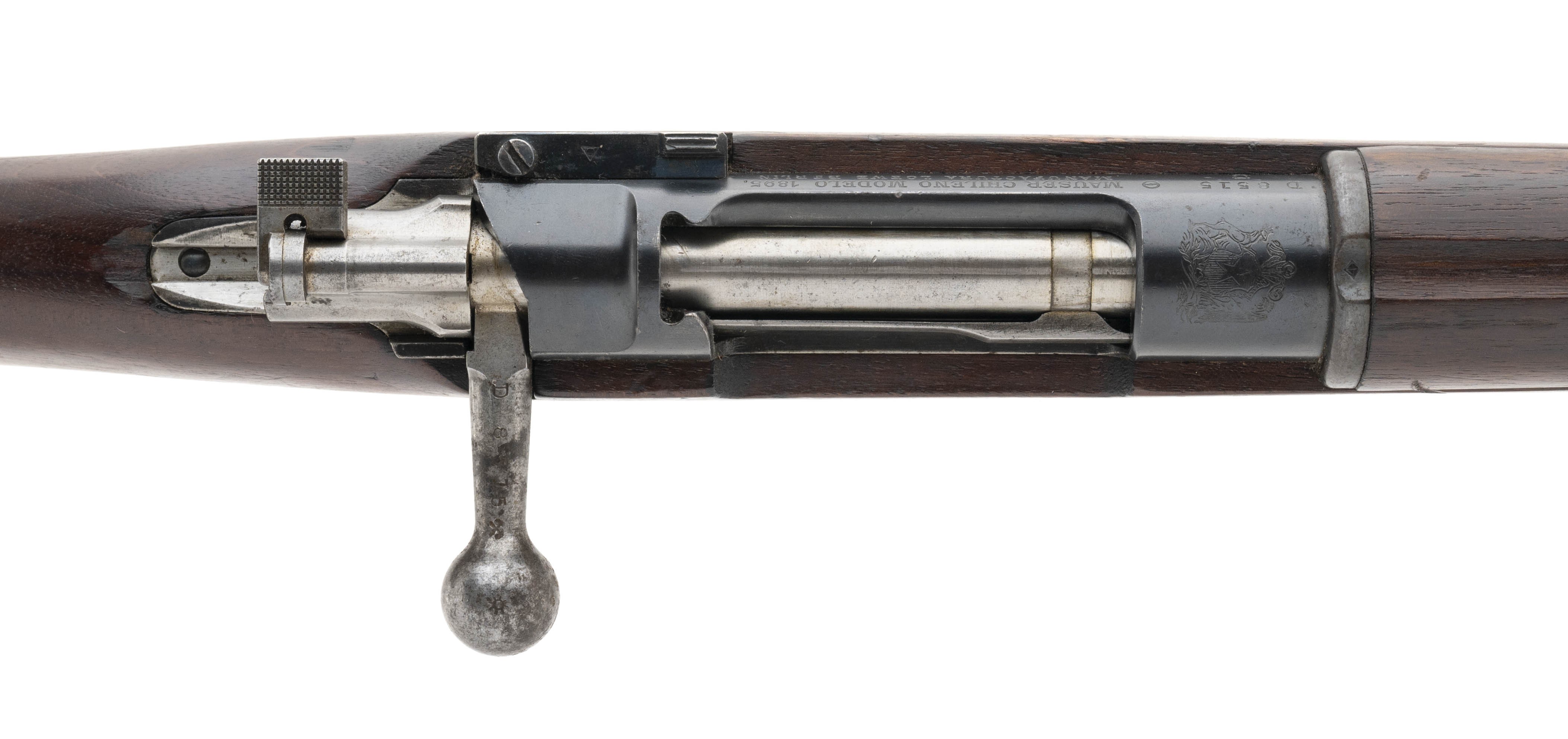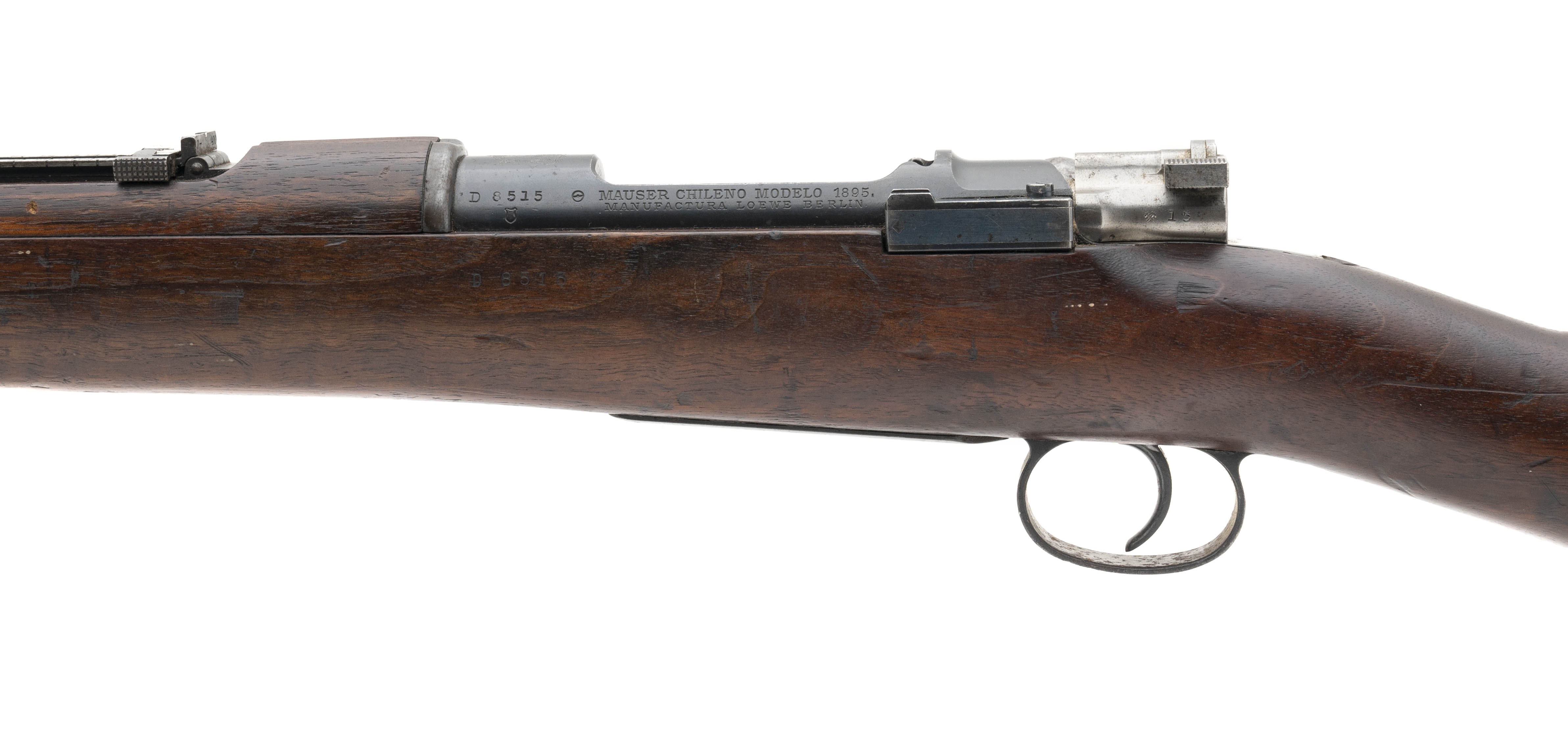 All matching Chilean Model 1895 chambered in 7x57 caliber. Rifle is in overall good condition with some areas of oxidation on the rear sling swivel. Wood shows dings and handling marks. Bore is good with strong rifling visible. Action functions correctly.