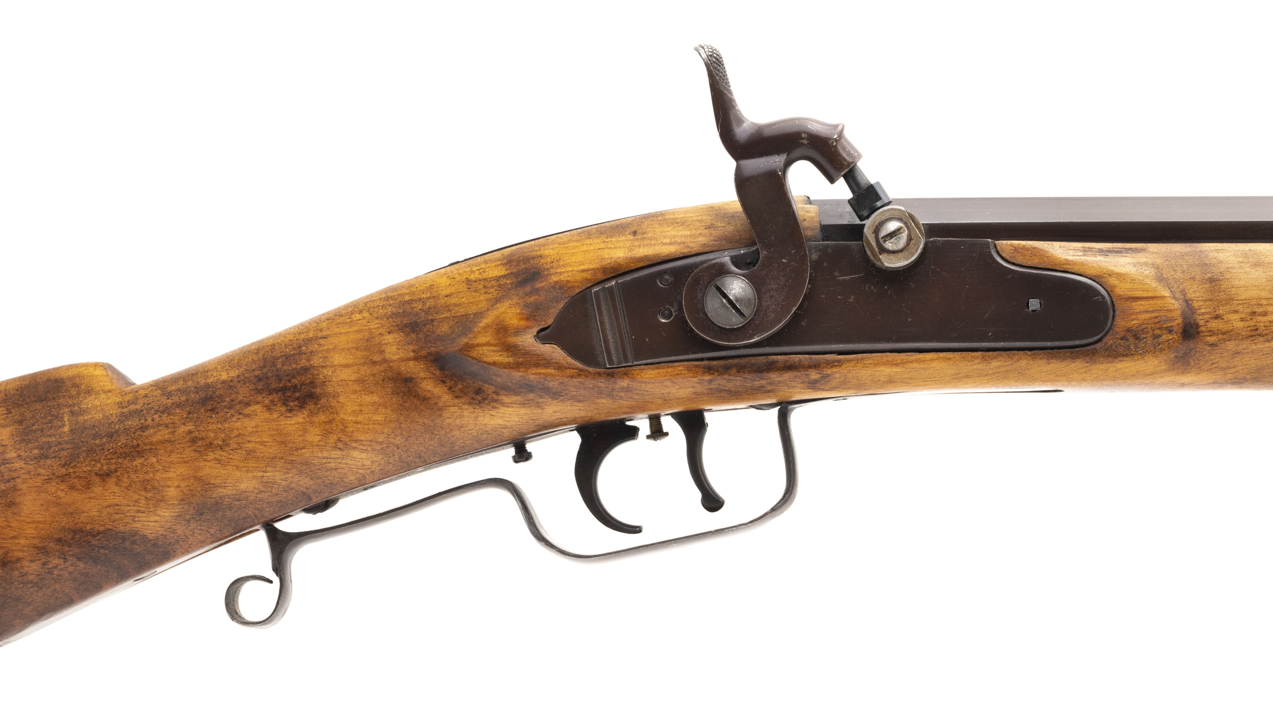 Dixie Gun Works .32 caliber percussion rifled musket. Barrel is marked "made in Japan" and is 41" in length. Rifle is in overall good condition with light handling marks visible. Overall length is 57". Set trigger functions correctly.