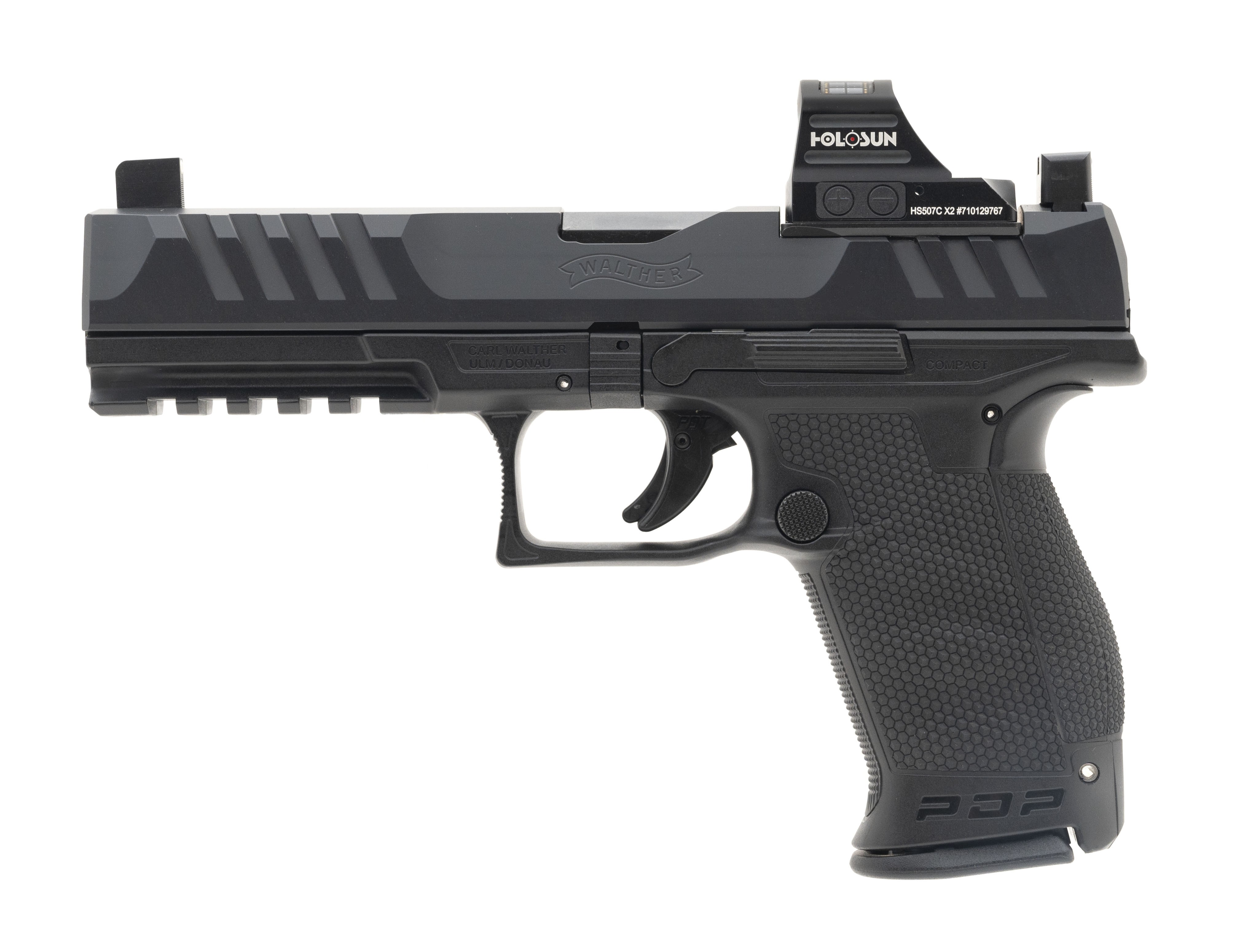 SN:FDG3405. Polymer frame pistol with a 5" barrel and suppressor height iron sights. Overall in excellent condition, with box and a Holosun 507c red dot.