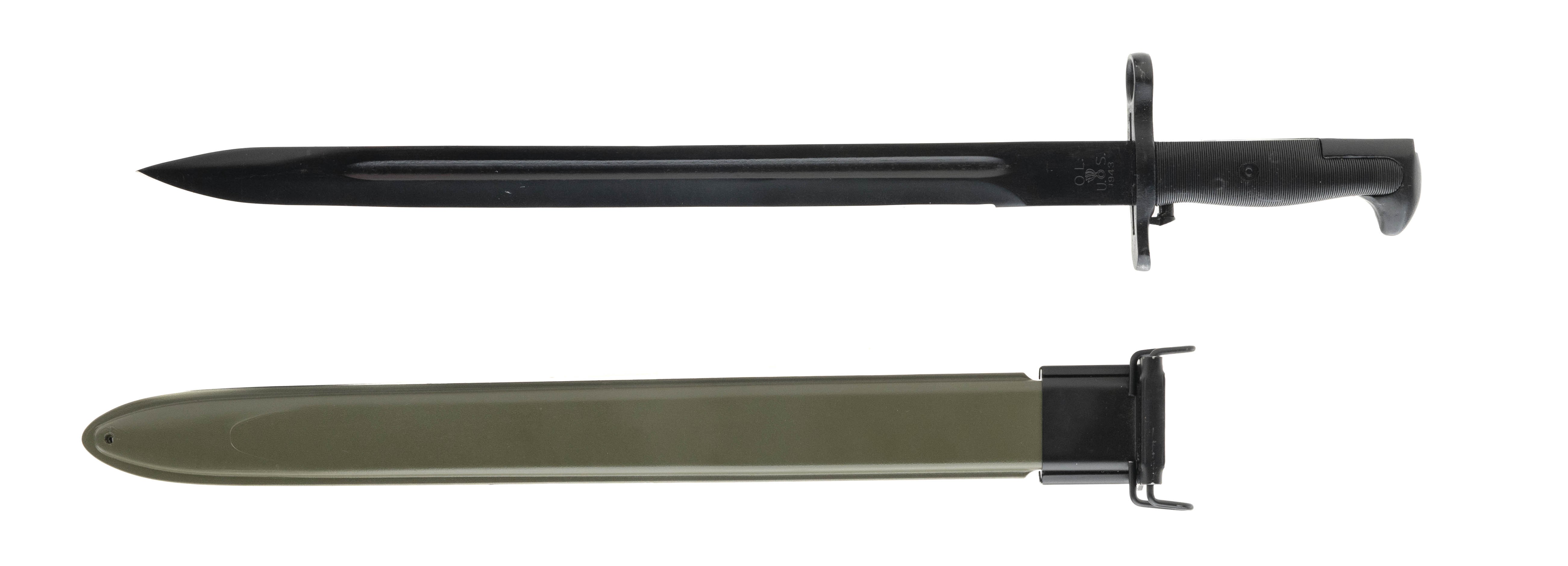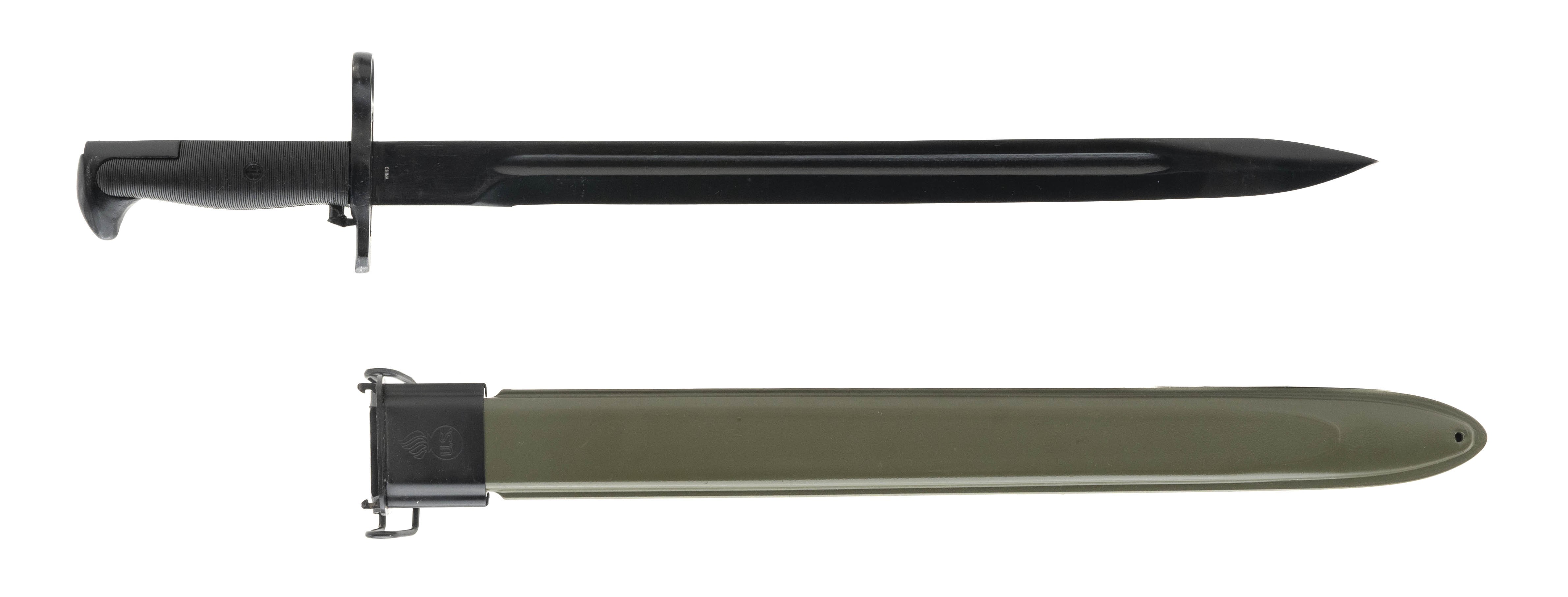 Reproduction U.S. M1905 16-inch bayonet with reproduction scabbard. Will fit M1903, M1903A3 & M1 Garand rifles. Made in China.
