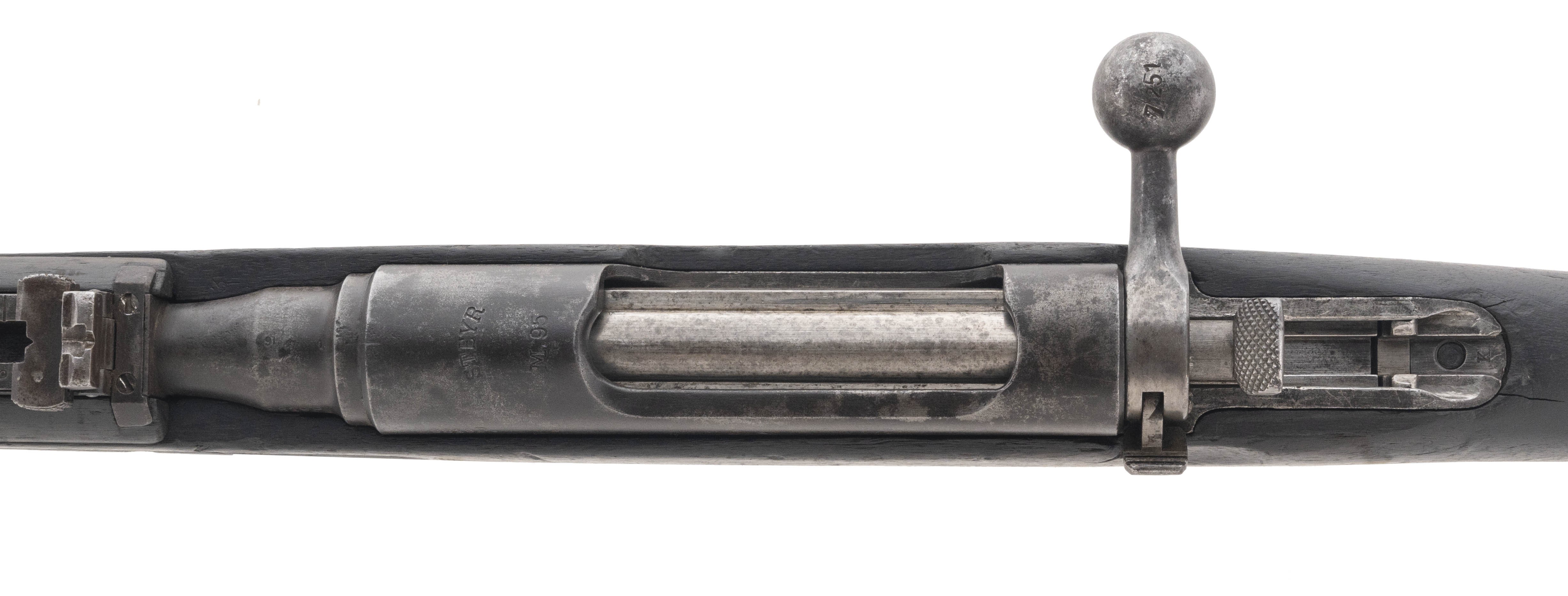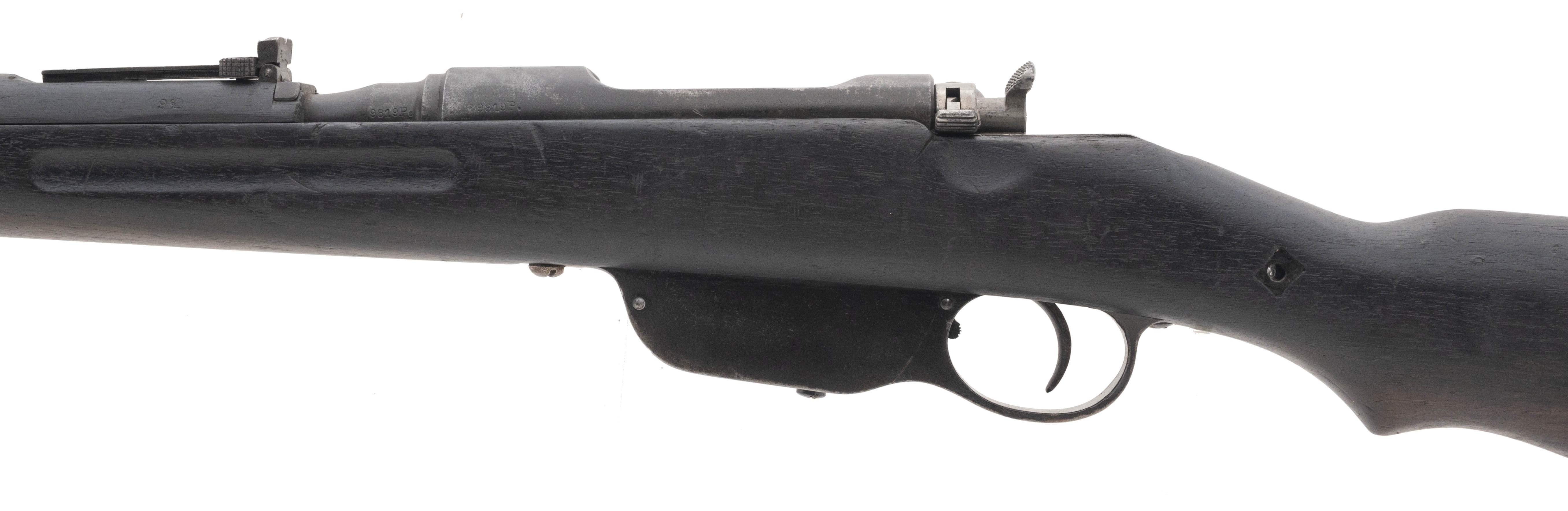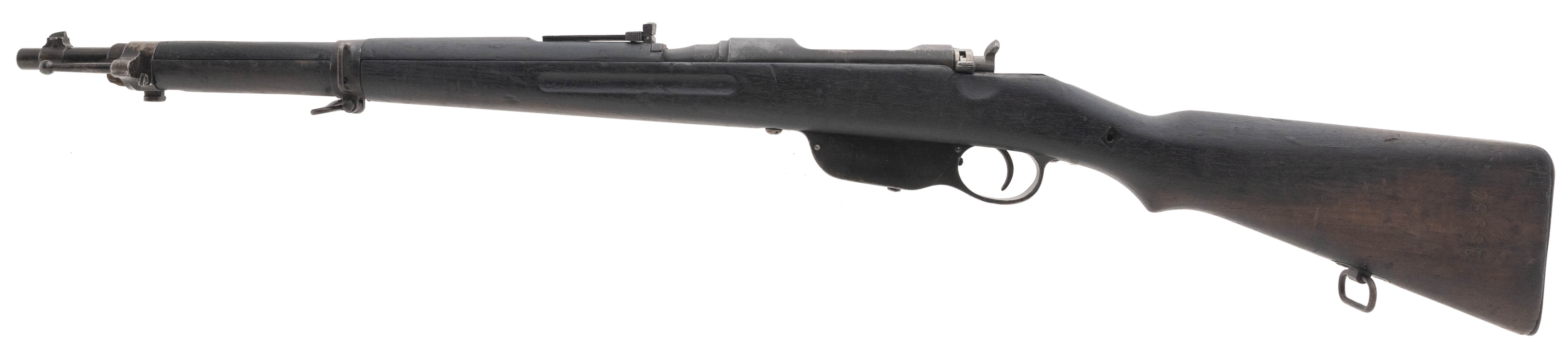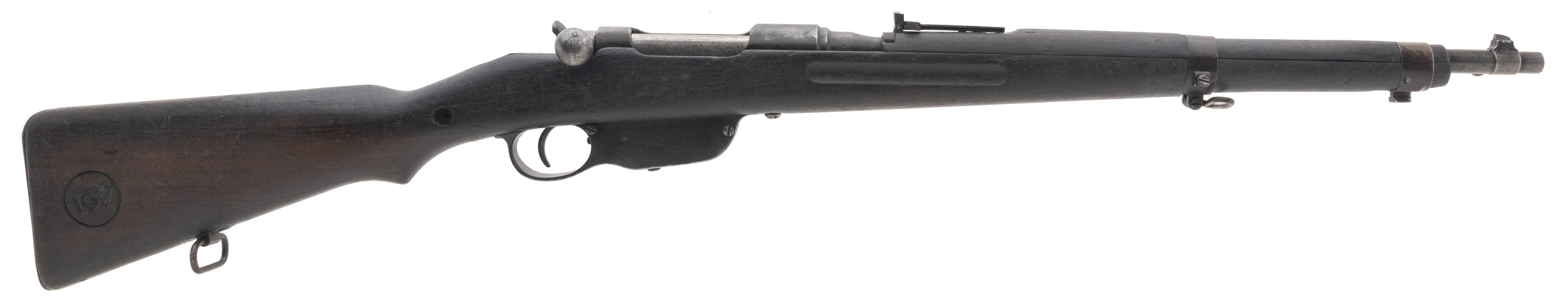 SN: 9819P. WWI Austro-Hungarian military straight pull carbine. The serials are non-matching. The bore has strong rifling and dark in the grooves. The stock has darkened from age and is in very good condition with combat wear. There is a cartouche on the left side of the stock. Overall good to very good condition.