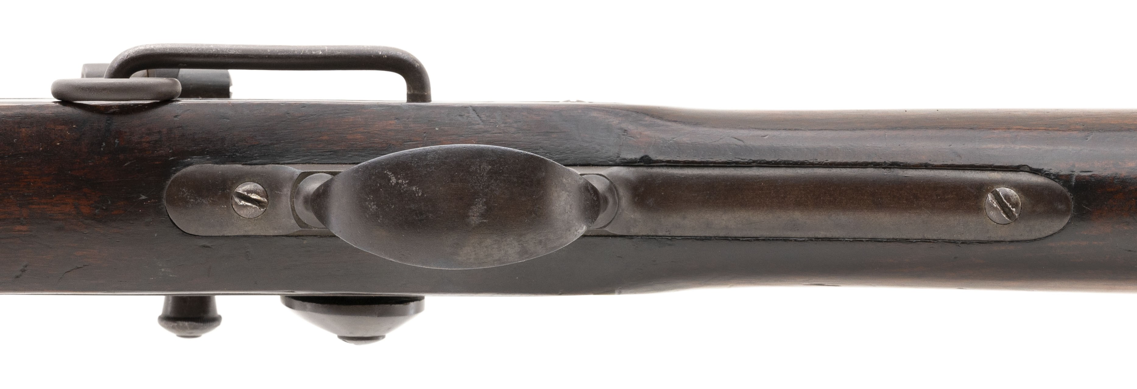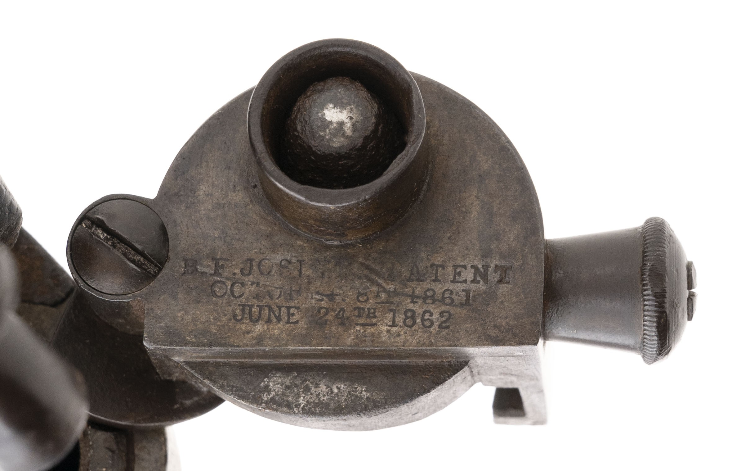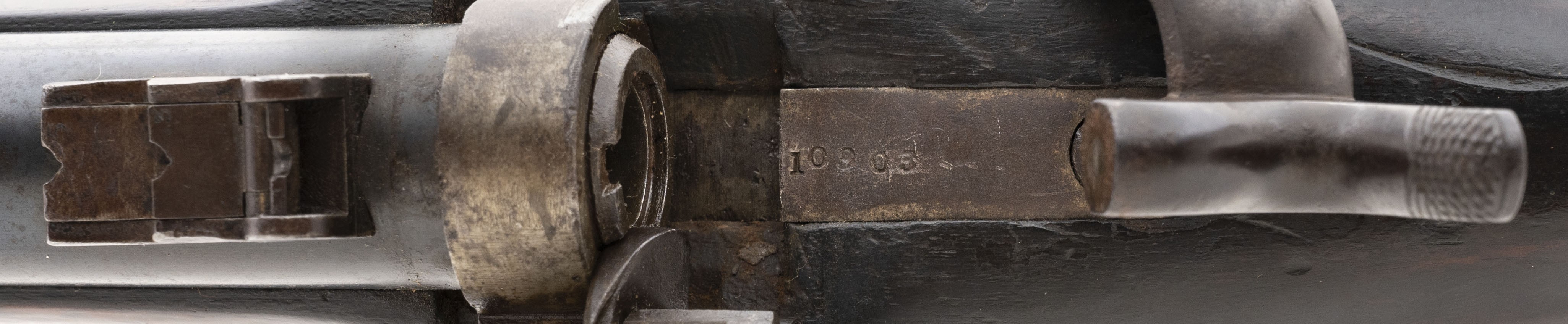 Serial number 10903 .52 caliber with a 22" barrel manufactured in 1864 Joslyn Saddle ring carbine in very good overall condition. Finish is a smooth dark grey patina, bore has light scattered pitting in the grooves. Wood shows handling and usage wear present, very attractive carbine!