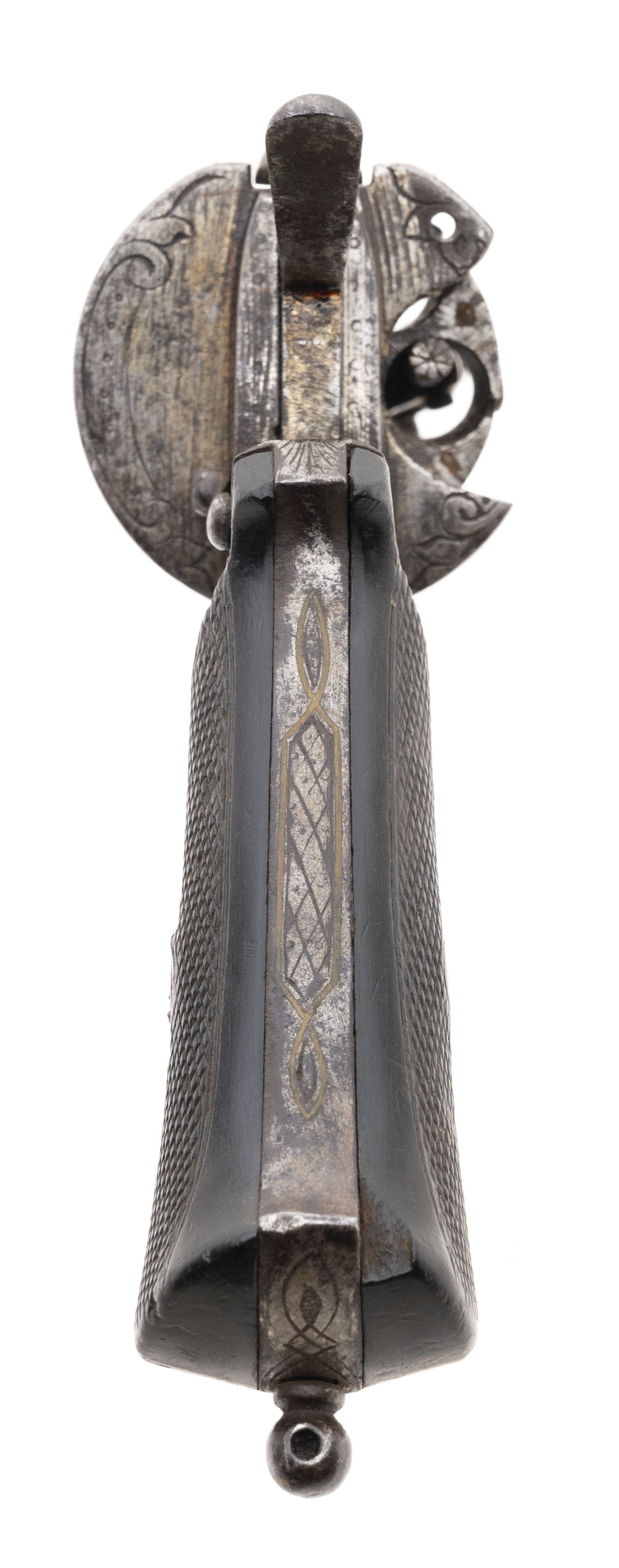 Revolver has been decomissioned. Barrel is 6". Metal has a grey patina. This would look great on the wall or in a shadow box.