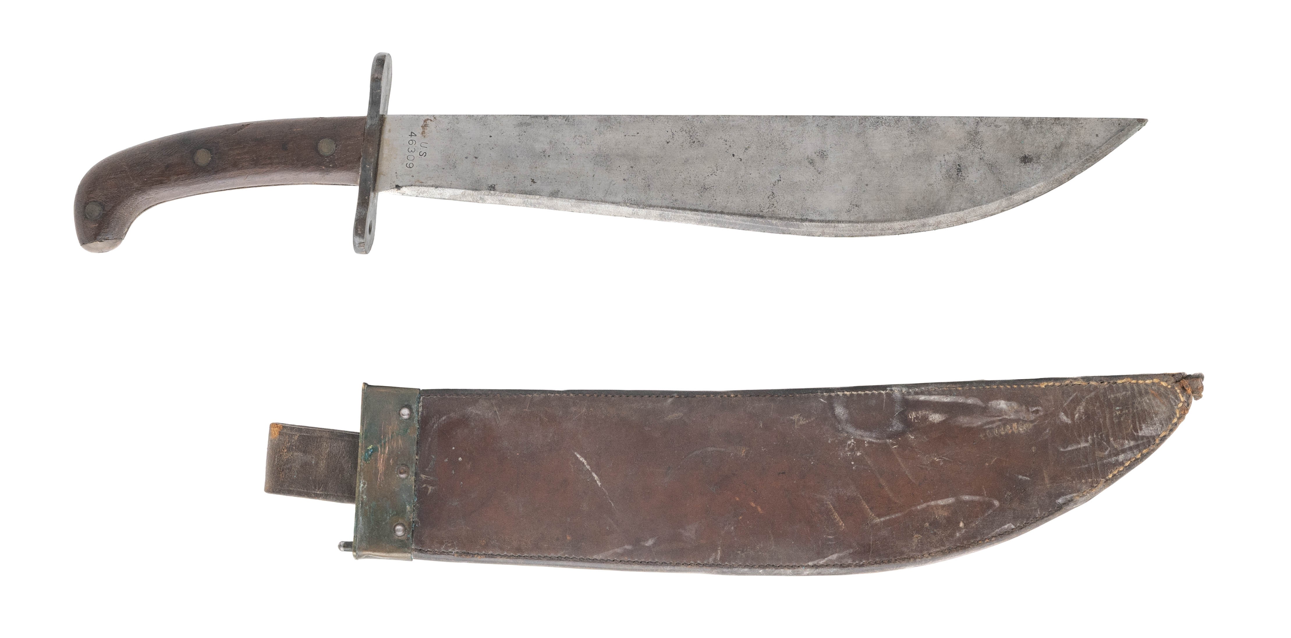 US 1909 Bolo knife\machete and scabbard in very good condition.Bright blade is marked Plumb Phila.1917.Scabbardis stamped Rock Island Arsenal 1911 H.E.K.