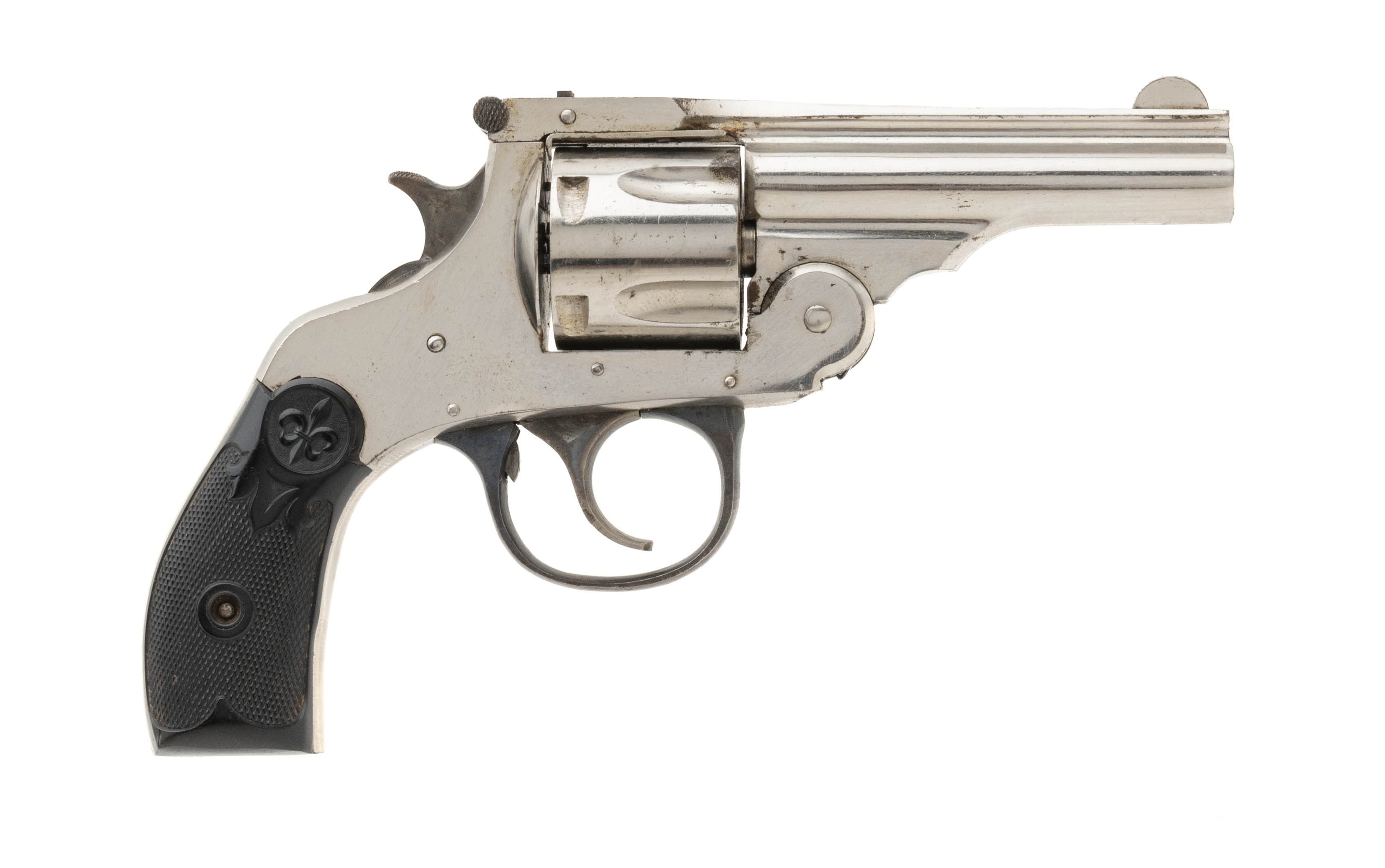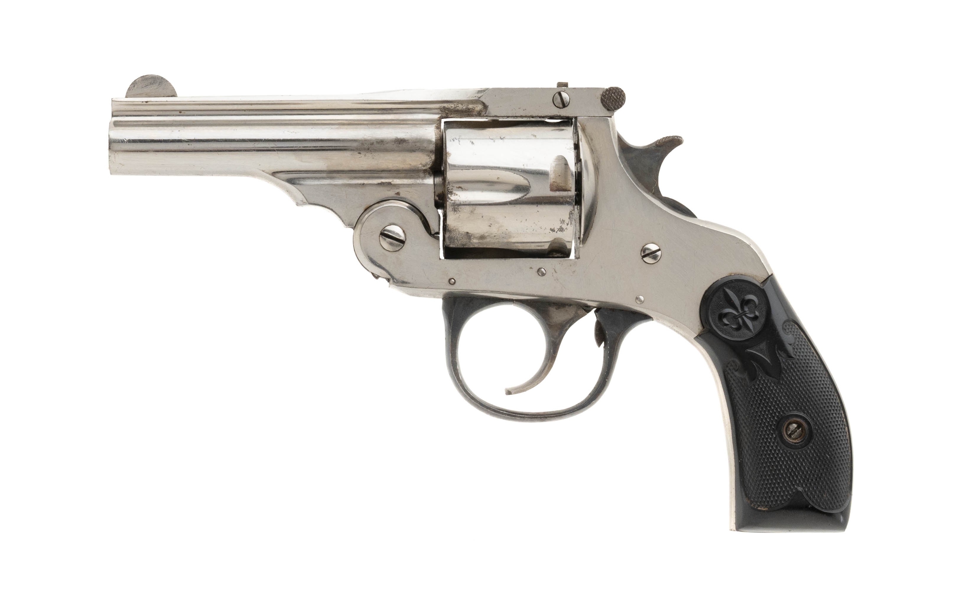 Top break carry revolver with 3.25" barrel. Original nickel plating is bright with approximately 94% coverage. Action works properly. Very good plus overall condition.