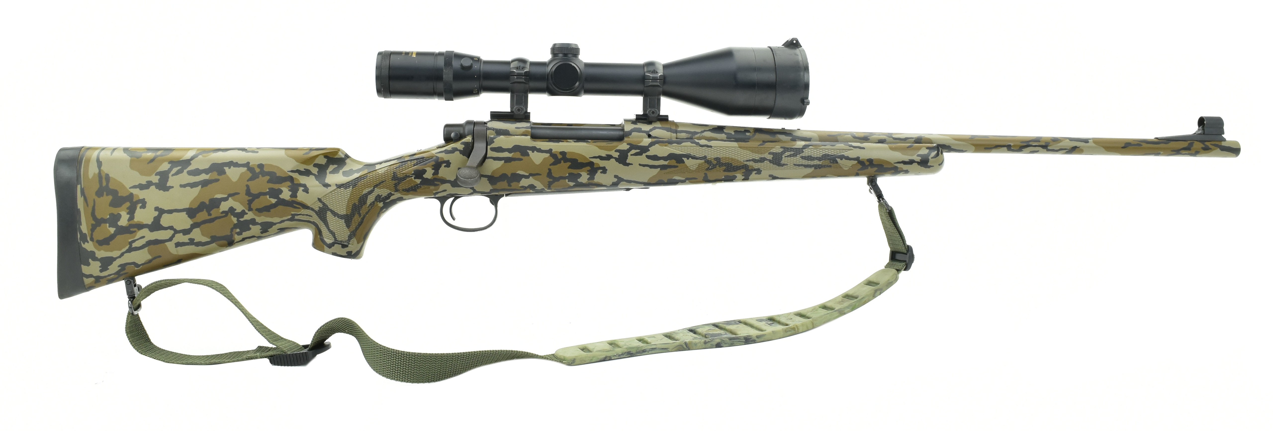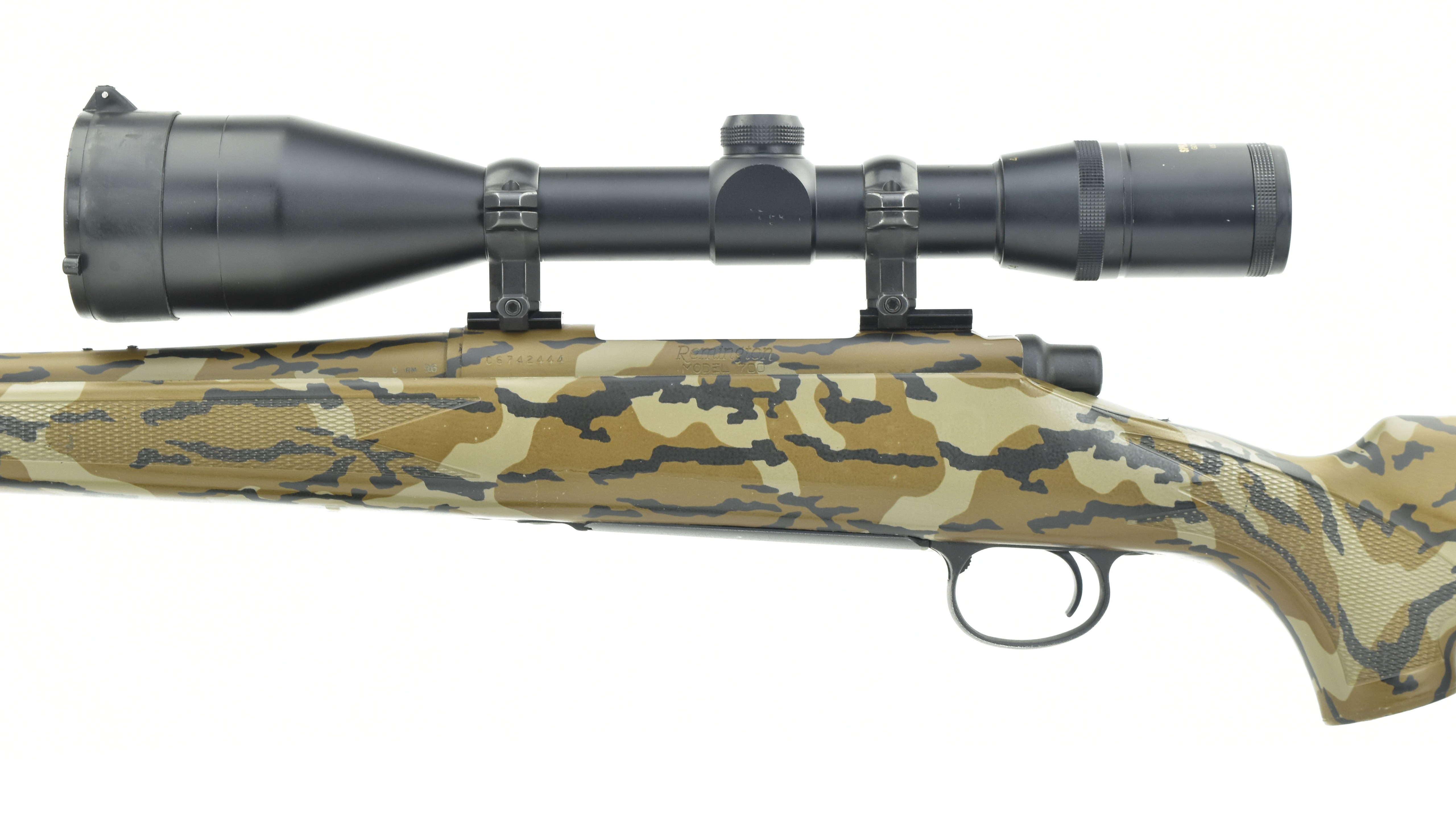 Remington 700 .30-06 caliber rifle. With camo finish. Has a Springfield 4-14X scope. Excellent condition.