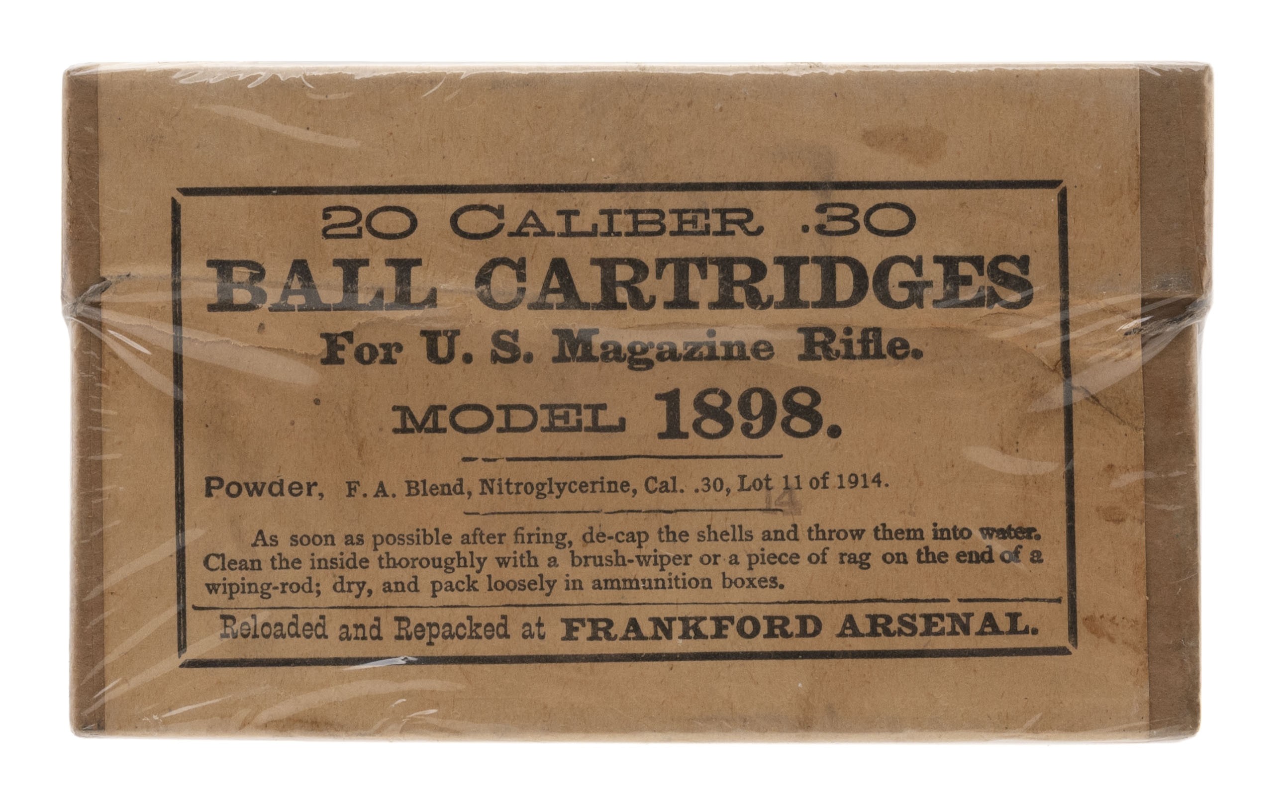 Model 1898 Caliber 30 Ball Cartridges For US Magazine Rifle. Unopened Box 20rds.