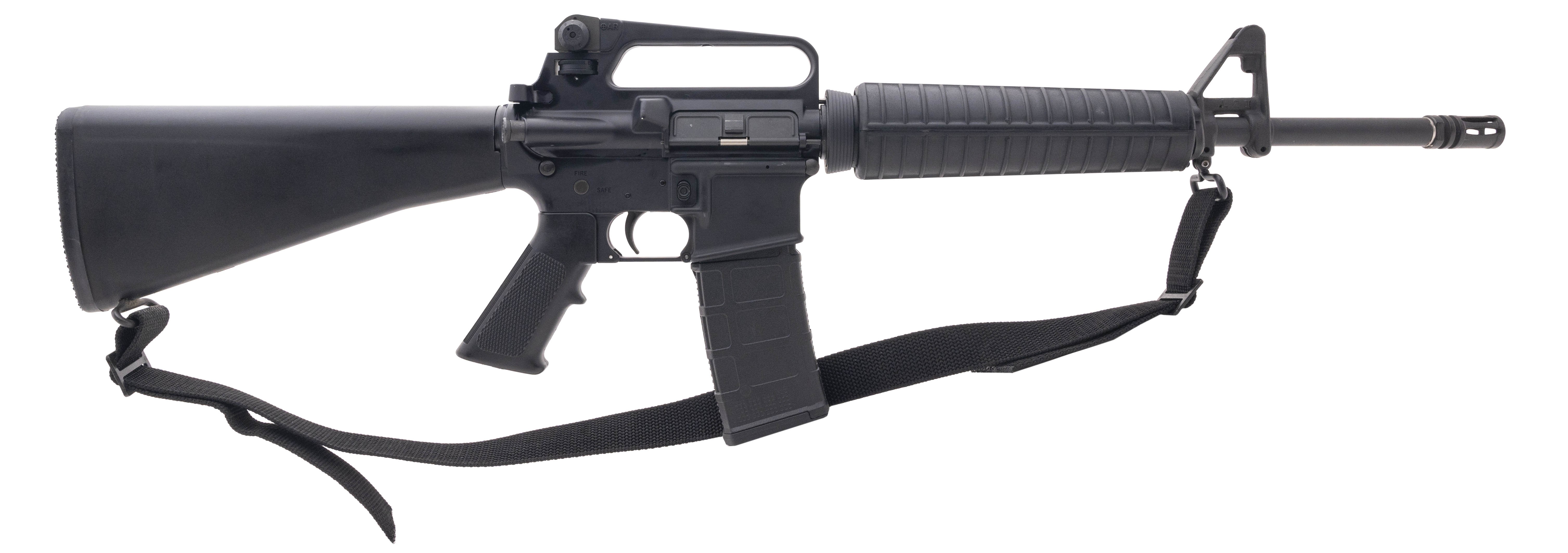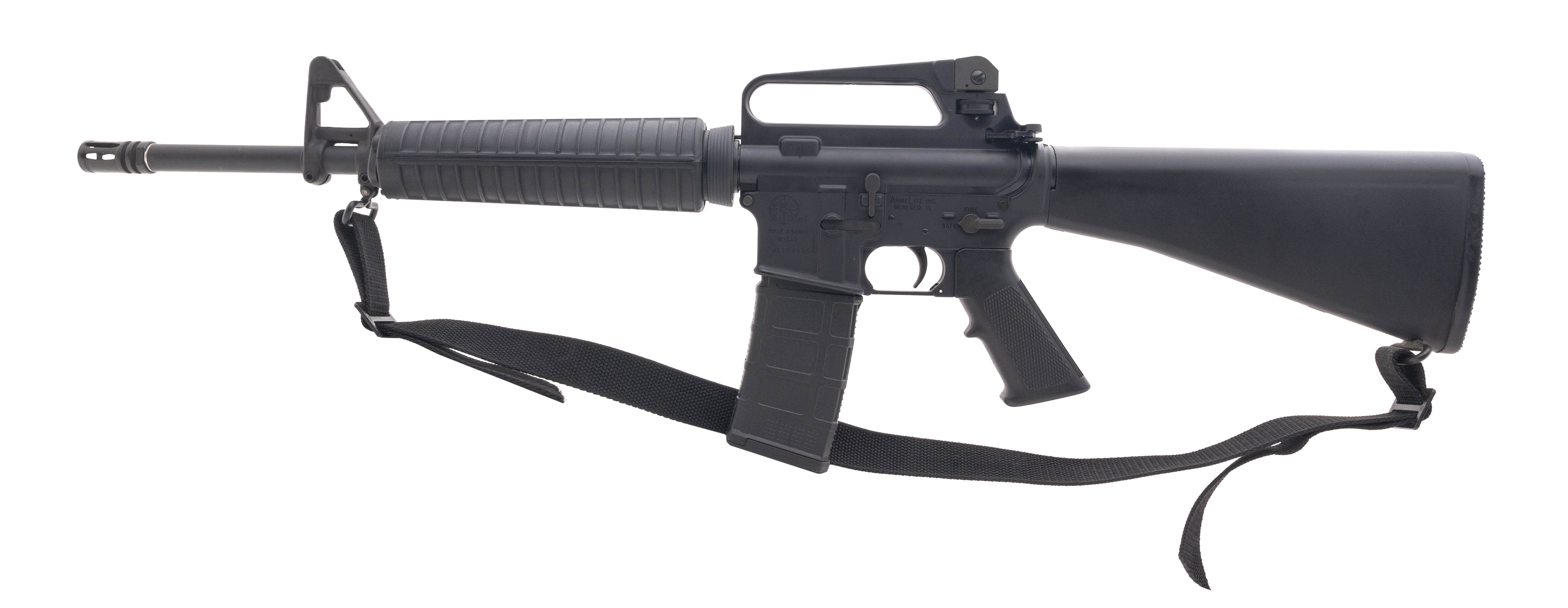 SN: US114006. Tactical carbine with 16" heavy barrel. Has A2 Furniture, A2 front sight post and carry handle optic. Overall excellent condition.