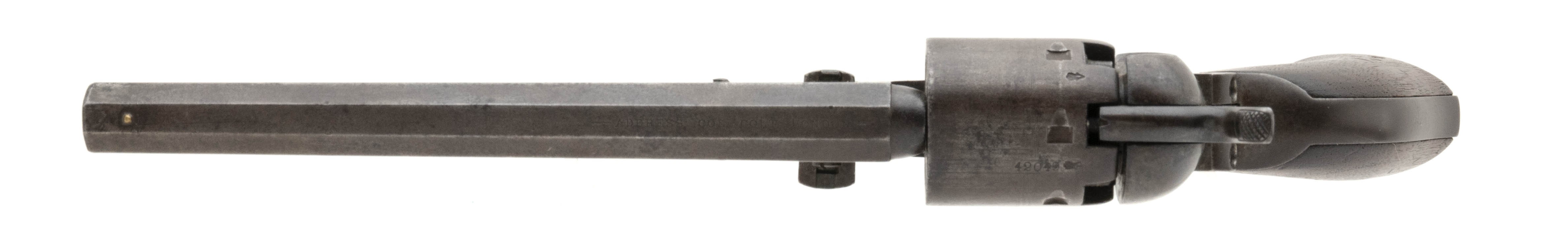 Serial number 42049. Made in 1855. 36 caliber with a 7 ½” barrel. This is a London Colt 1851 Navy with London barrel markings and small proof marks. The metal has an even brown patina. Grips have been lightly refinished. This gun has both iron trigger guard and back strap.